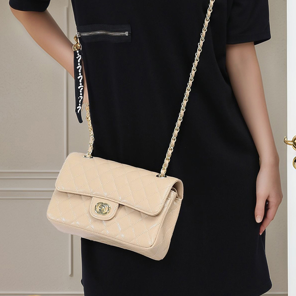Chiếc túi xách này mang kiểu dáng thời trang được nhiều người yêu thích. Túi có mặt ngoài với những đường vân hình viên nhỏ tạo cảm giác mềm mại. Điểm nhấn là các ô lưới hình thoi kinh điển kết hợp cùng dây đeo chuỗi xích có thể điều chỉnh. Bạn có thể đeo làm túi đeo chéo hoặc xách tay một cách linh hoạt. Sản phẩm dễ dàng tự ráp hoàn chỉnh theo hướng dẫn có sẵn, phù hợp để sử dụng hàng ngày. | Tên sản phẩm: Túi Xách Nữ Kẻ Caro Kẻ Caro - Túi Ví Nữ | Mã sản phẩm: A3061 - Giá: 770.000đ | Mã nhà sản xuất: GUDTH-G02Hình ảnh sản phẩm