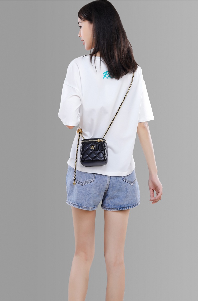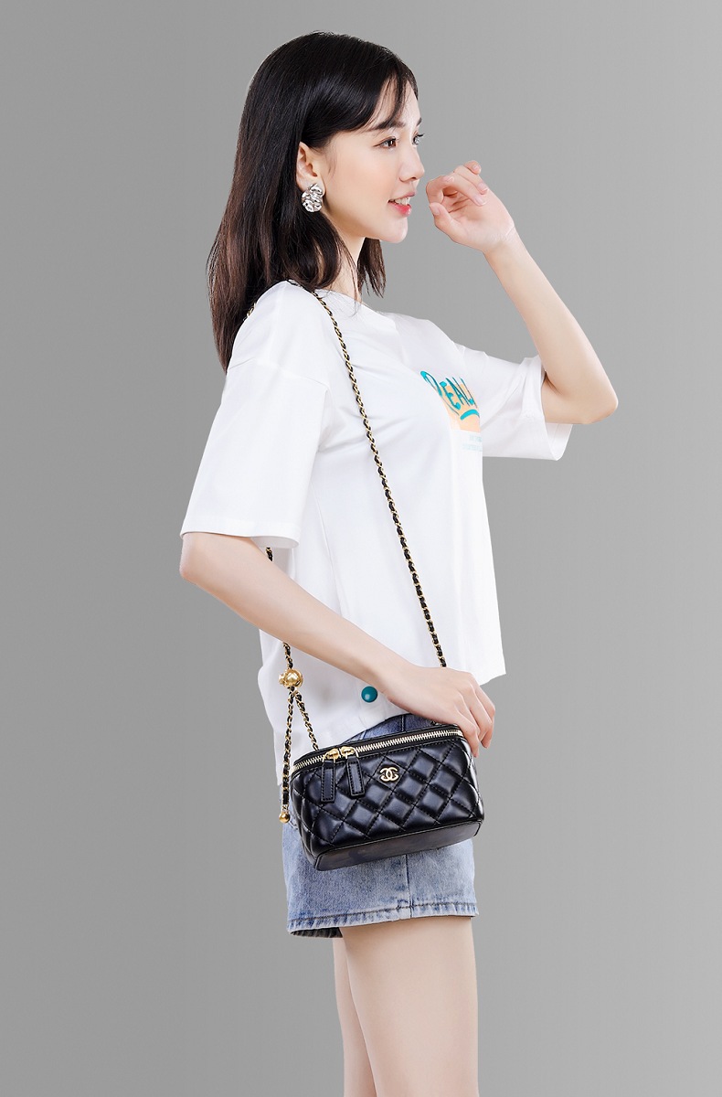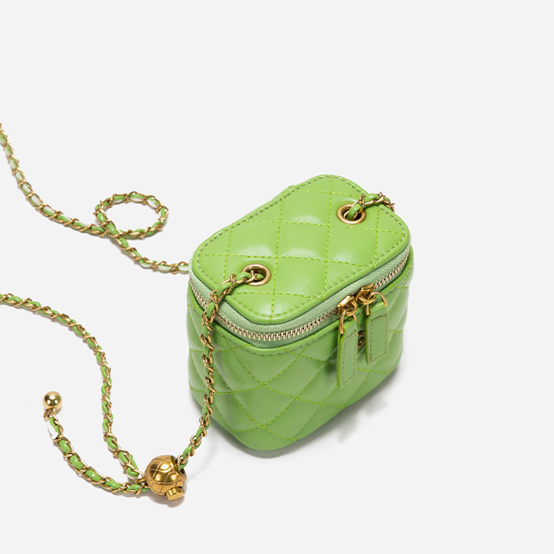 Chiếc túi nhỏ xinh này có kiểu dáng vuông vức đáng yêu, điểm nhấn là quả cầu kim loại và dây đeo dạng xích có thể điều chỉnh. Bạn có thể đeo nó như túi đeo chéo, khoác v hoặc dùng làm túi đeo hông một cách linh hoạt. Thiết kế nhỏ gọn nhưng vẫn đủ để đựng các vật dụng cần thiết hằng ngày như tiền, thẻ, cùng một vài thỏi son. Chất liệu cứng cáp giúp túi giữ được dáng đẹp theo thời gian. | Tên sản phẩm: Ví Bóp Nữ - Túi Ví Nữ | Mã sản phẩm: A3076 - Giá: 500.000đ | Mã nhà sản xuất: GUDTH-G01Hình ảnh sản phẩm
