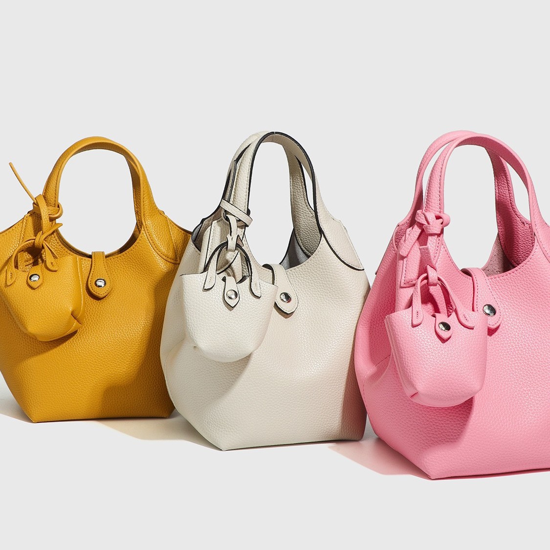 Túi xách mẫu mới, mang phong cách giỏ đi chợ với nhiều màu sắc tươi sáng như kẹo ngọt. Thiết kế dạng thùng đựng nước, có qu xách và qu đeo chéo linh hoạt. Điểm nhấn là kiểu túi lớn nhỏ kết hợp, tạo thêm ngăn riêng tiện lợi. Rất dễ phối đồ và phù hợp cho việc di chuyển hằng ngày. Có thể dùng làm túi đi làm hoặc túi đi chơi. Sử dụng đơn giản, mang theo được nhiều món đồ cần thiết. | Tên sản phẩm: Túi Xách Nữ Hàng Mùa Hè - Túi Ví Nữ | Mã sản phẩm: A3105 - Giá: 990.000đ | Mã nhà sản xuất: GUDTH-G03Hình ảnh sản phẩm