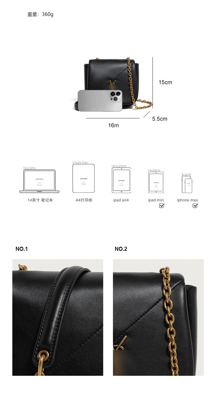 Chiếc túi nhỏ dành cho nữ, thiết kế dáng đeo chéo hoặc khoác v thời trang với dây xích. Điểm nhấn là những đường chần nổi tinh tế trên thân túi. Kiểu dáng nhỏ gọn, phù hợp cho những buổi tiệc tối hoặc dạo phố. Bạn có thể dễ dàng điều chỉnh dây xích để mang theo nhiều cách khác nhau, tiện lợi khi sử dụng. Mẫu mã mới nhất cho mùa thu đông năm nay. | Tên sản phẩm: Túi Xách Nữ Hàng Mùa Xuân Thu Đông - Túi Ví Nữ | Mã sản phẩm: A3191 - Giá: 560.000đ | Mã nhà sản xuất: GUDTH-G01Hình ảnh sản phẩm