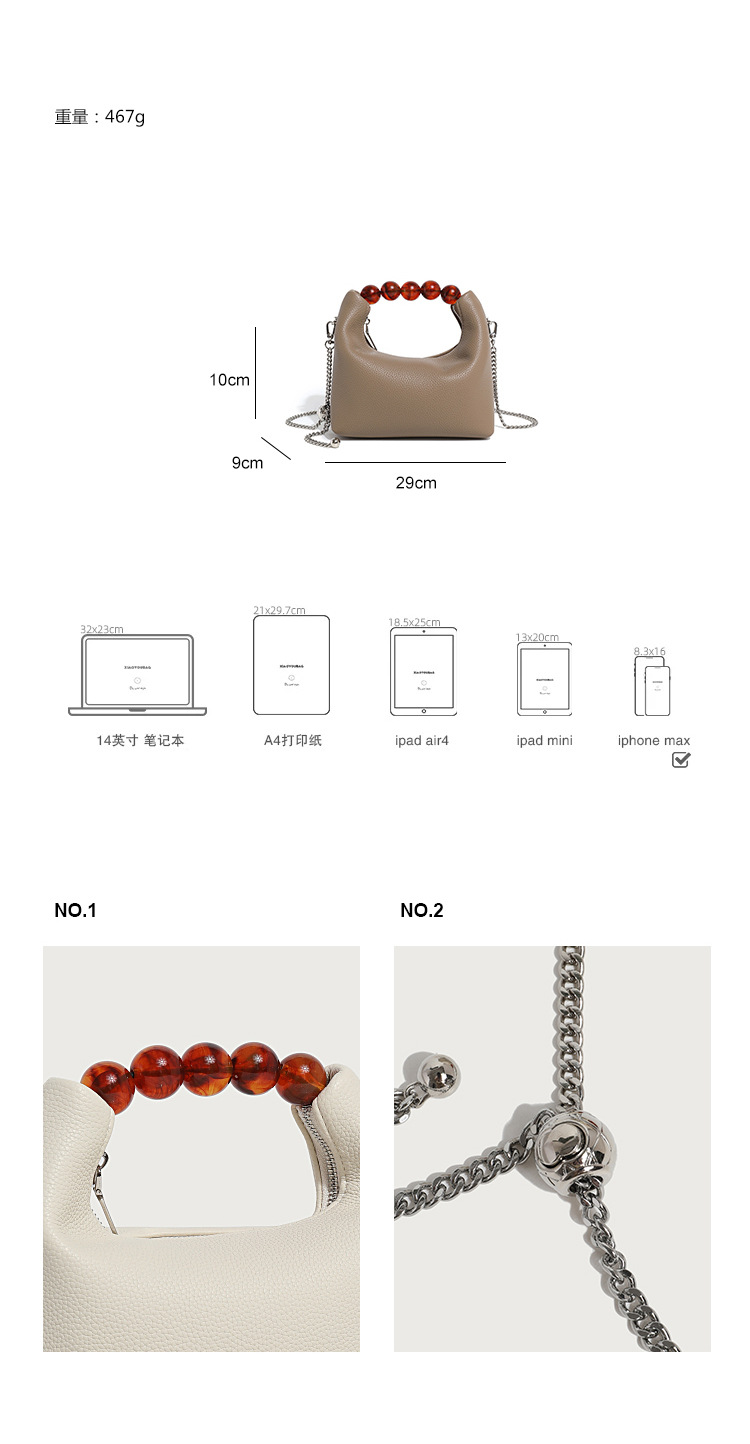 Chiếc túi này có kiểu dáng nhỏ gọn như một chiếc bánh bao, rất dễ phối đồ. Dây đeo làm từ các hạt chuỗi kết hợp cùng dây xích tạo điểm nhấn. Chất liệu da mềm mại giúp bạn mang thoải mái. Thiết kế vừa có qu xách lại đổi được thành dây chéo, tiện lợi cho nhiều dịp sử dụng. Đây là mẫu túi phù hợp cho tiết trời ấm áp, mang đến vẻ ngoài tinh tế và hợp thời. | Tên sản phẩm: Túi Xách Nữ Hàng Mùa Xuân Thu Đông - Túi Ví Nữ | Mã sản phẩm: A3209 - Giá: 720.000đ | Mã nhà sản xuất: GUDTH-G02Hình ảnh sản phẩm