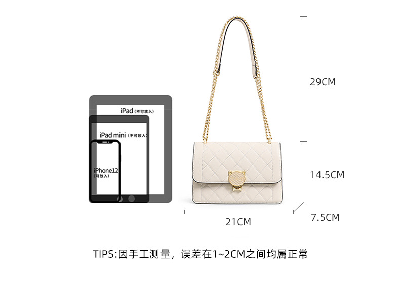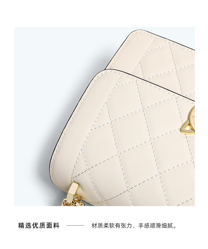 Túi xách dành cho nữ, được làm từ chất liệu da thật, mang đến cảm giác mềm mại và bền bỉ. Kiểu dáng đeo chéo hoặc xách tay linh hoạt, phù hợp cho nhiều dịp sử dụng. Thiết kế nổi bật với họa tiết hình thoi đan xen cùng dây đeo chuỗi vòng, tạo điểm nhấn thanh lịch. Đây là mẫu túi dễ dàng phối hợp với các trang phục thường ngày, từ đi làm đến dạo phố. Bạn có thể điều chỉnh độ dài của dây đeo để sử dụng theo cách mình thích. | Tên sản phẩm: Túi Đeo Vai Nữ Chất Liệu Da Bò Kẻ Caro Kẻ Caro - Túi Ví Nữ | Mã sản phẩm: A3320 - Giá: 1.220.000đ | Mã nhà sản xuất: GUDEA-G04Hình ảnh sản phẩm