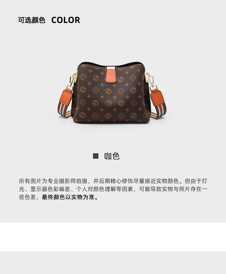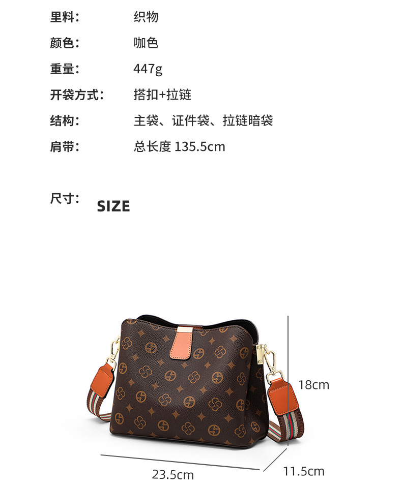 Chiếc túi xách này có kiểu dáng tròn như chiếc xô nhỏ, trông rất điệu đà. Túi rộng rãi bên trong, đựng vừa nhiều món đồ cần dùng mỗi ngày. Bạn có thể đeo chéo người một cách thoải mái, hoặc tháo dây để xách tay cho tiện. Chất liệu bền chắc với họa tiết trang trí tinh tế, dễ dàng phối cùng nhiều loại trang phục. Rất thích hợp để dùng khi đi chơi, đi làm hay đi mua sắm. | Tên sản phẩm: Túi Đeo Vai Nữ Họa Tiết Hoa Hàng Mùa Hè Trung Niên - Túi Ví Nữ | Mã sản phẩm: A3392 - Giá: 1.060.000đ | Mã nhà sản xuất: GUDEA-G03Hình ảnh sản phẩm