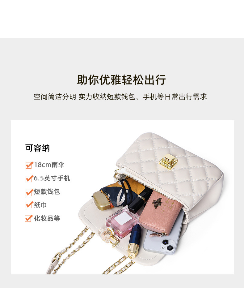 Túi xách nữ thiết kế nhỏ gọn, dây đeo chuỗi mắt xích có thể điều chỉnh, mang trên v tiện lợi. Chất liệu da mềm mại, bền đẹp theo thời gian. Kiểu dáng thanh lịch, dễ phối hợp với nhiều trang phục khác nhau như váy hay quần áo thường ngày. Ngăn đựng vừa đủ cho các vật dụng cần thiết như điện thoại, ví và một ít mỹ phẩm. Sử dụng đơn giản, chỉ cần đeo chéo qua người và điều chỉnh dây cho vừa vặn. | Tên sản phẩm: Túi Xách Nữ Chất Liệu Da Bò Hàng Mùa Hè - Túi Ví Nữ | Mã sản phẩm: A3401 - Giá: 1.230.000đ | Mã nhà sản xuất: GUDEA-G04Hình ảnh sản phẩm