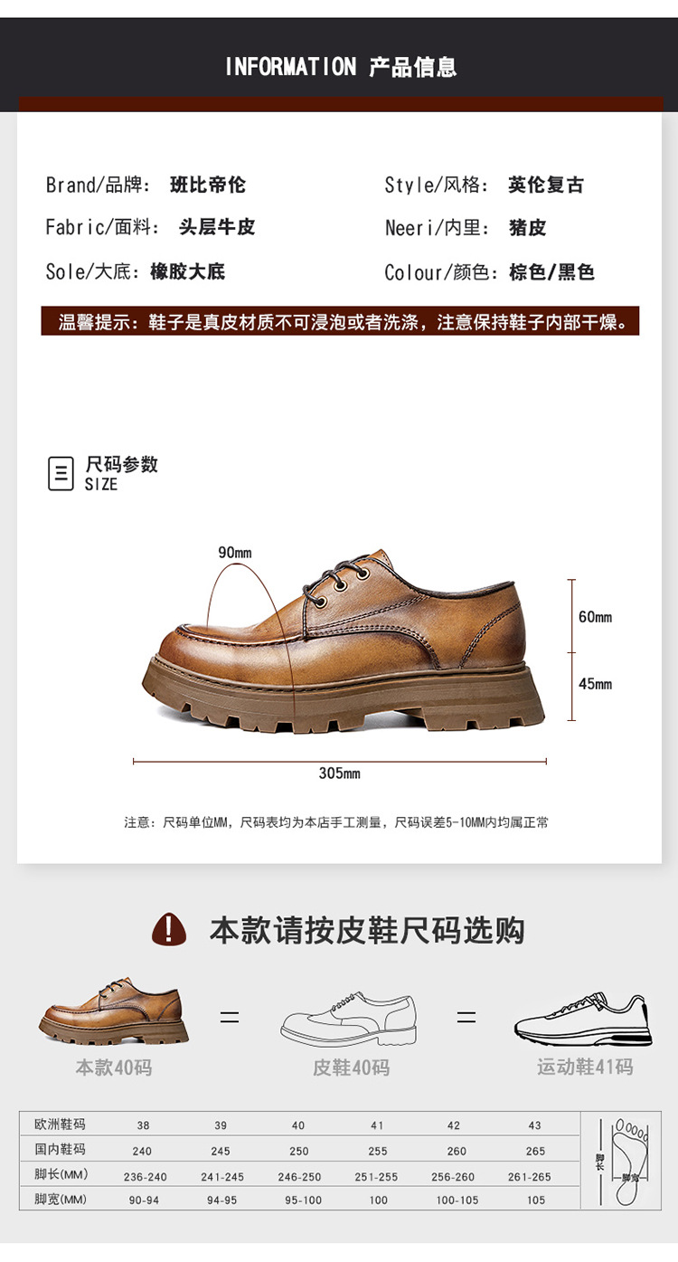 Giày da dành cho nam, được làm từ chất liệu da thật tự nhiên, bền đẹp theo thời gian. Kiểu dáng kết hợp giữa đi làm và dạo phố, với phần mũi tròn và đế dày mang đến vẻ ngoại hình lịch sự nhưng vẫn thoải mái. Sản phẩm phù hợp để đi làm, gặp đối tác hoặc dùng trong các dịp giao lưu thường ngày. Chỉ cần vệ sinh nhẹ bằng khăn mềm là giày luôn giữ được dáng vẻ tươm tất. | Tên sản phẩm: Giày Da Nam Chất Liệu Da Bò Mũi Tròn Đế Cao - Giày Dép Nam | Mã sản phẩm: a3404 - Giá: 2.680.000đ | Mã nhà sản xuất: SHDT-G06Hình ảnh sản phẩm