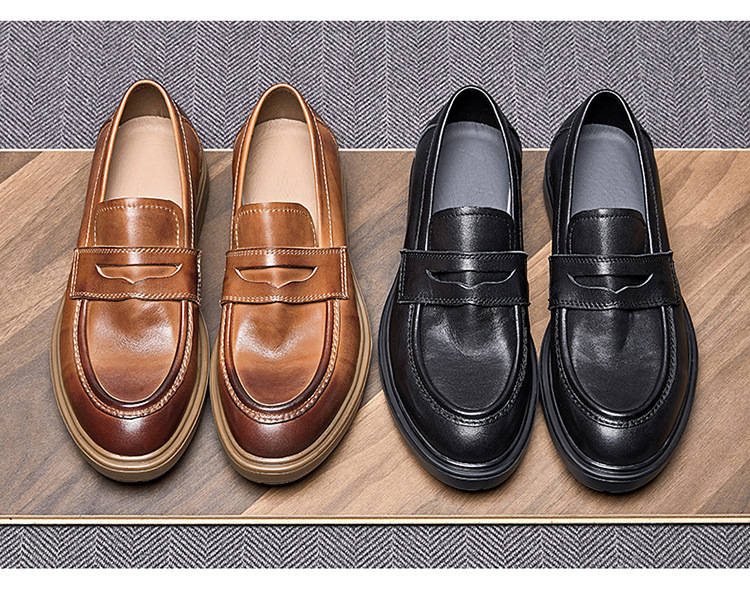 Giày da thật dành cho nam, phong cách Anh cổ điển với thiết kế đế dày vừa phải. Màu sắc chủ đạo là đen, kết hợp kỹ thuật đánh bóng tạo hiệu ứng màu đậm nhạt đầy ấn tượng. Kiểu dáng giày không cần buộc dây, mang phong cách lịch sự và dễ phối đồ. Sản phẩm làm từ chất liệu da thật, êm chân và bền đẹp. Có thể dùng đi làm, đi chơi hoặc trong các dịp gặp mặt thông thường. | Tên sản phẩm: Giày Da Nam Chất Liệu Da Bò Đế Cao Phục Cổ Cổ Điển - Giày Dép Nam | Mã sản phẩm: a3481 - Giá: 2.490.000đ | Mã nhà sản xuất: SHDT-G05Hình ảnh sản phẩm