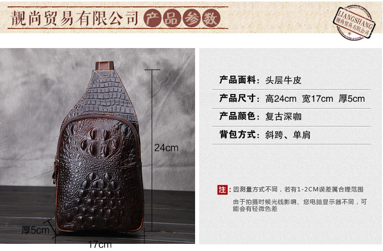 Túi đeo trước ngực dành cho nam, được làm từ chất liệu da bò mềm mại với họa tiết vảy cá sấu sinh động. Kiểu dáng thể thao năng động, phù hợp cho các hoạt động ngoài trời hoặc dạo phố. Ngăn chứa rộng rãi giúp đựng vừa điện thoại, ví và các vật dụng cá nhân cần thiết. Dây đeo có thể điều chỉnh linh hoạt, ôm sát cơ thể để mang lại cảm giác thoải mái khi sử dụng. | Tên sản phẩm: Túi Xách Nam Chất Liệu Da Bò Vân Da Cá Sấu - Túi Xách Ví Nam | Mã sản phẩm: A3621 - Giá: 940.000đ | Mã nhà sản xuất: GUDNG-G03Hình ảnh sản phẩm