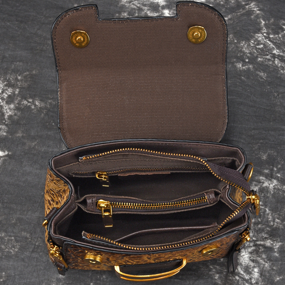 Túi xách nữ được làm từ chất da bò tự nhiên, bền đẹp theo thời gian. Kiểu dáng mang phong cách hoài cổ nhẹ nhàng, phù hợp cho những dịp dạo phố hoặc gặp gỡ bạn bè. Bề mặt túi có họa tiết chạm nổi cùng hiệu ứng màu đánh bóng tạo điểm nhấn tinh tế. Bạn có thể xách tay hoặc đeo chéo một cách thoải mái. Sản phẩm tiện lợi, dễ phối đồ với nhiều trang phục thường ngày. | Tên sản phẩm: Túi Xách Nữ Chất Liệu Da Bò Họa Tiết Hoa Phục Cổ Cổ Điển - Túi Ví Nữ | Mã sản phẩm: A3687 - Giá: 1.280.000đ | Mã nhà sản xuất: GUDNG-G04Hình ảnh sản phẩm