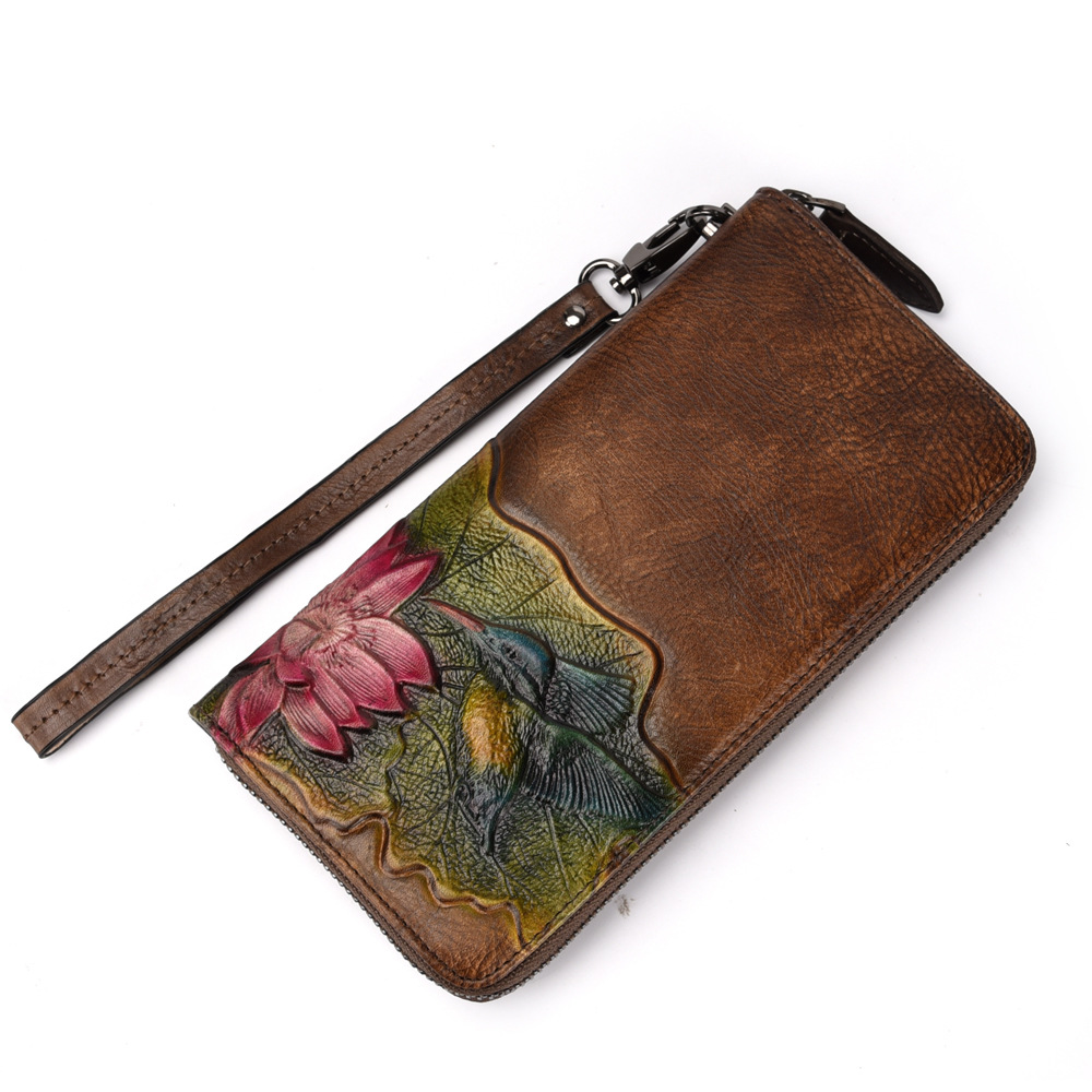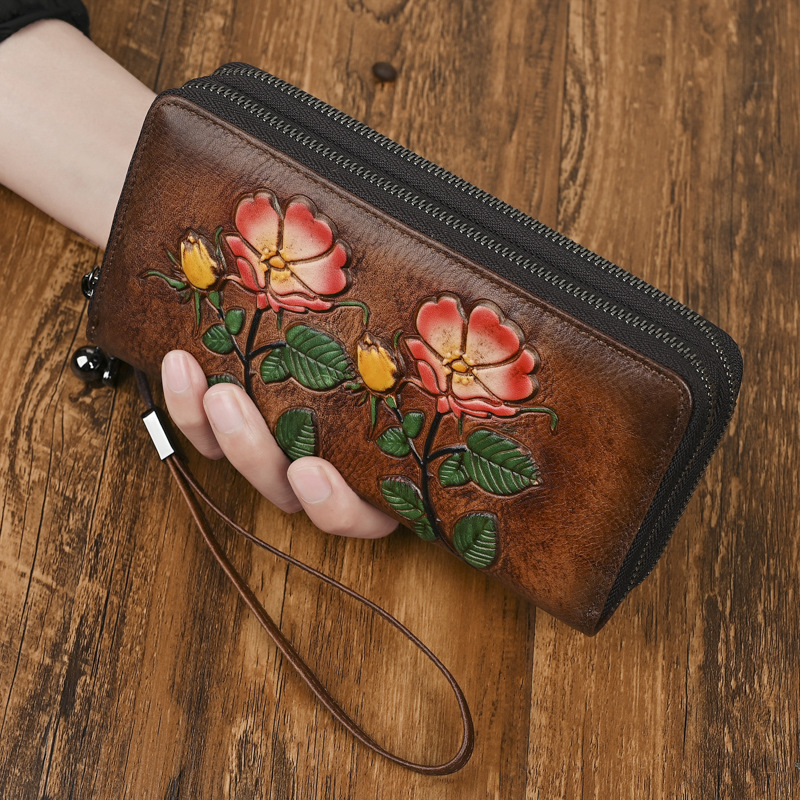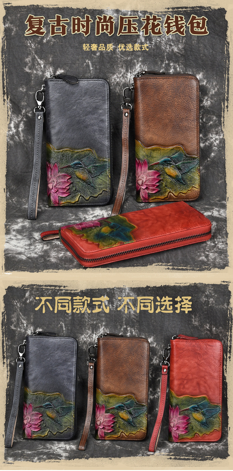 Chiếc bóp ví nữ này được làm từ chất liệu da bò mềm mại, tạo cảm giác cầm chắc tay. Kiểu dáng dài kèm khóa kéo tiện lợi, giúp bạn sắp xếp tiền và các vật dụng nhỏ gọn gàng. Bề mặt được dập nổi hoa văn tinh tế, phong cách cổ điển nhẹ nhàng. Bạn có thể dùng để cầm tay hoặc cho vào túi xách. Sản phẩm phù hợp cho việc sử dụng hàng ngày hoặc khi đi làm. | Tên sản phẩm: Ví Bóp Cầm Tay Nữ Chất Liệu Da Bò Họa Tiết Hoa Phong Cách Âu Mỹ - Túi Ví Nữ | Mã sản phẩm: A3724 - Giá: 720.000đ | Mã nhà sản xuất: GUDNG-G02Hình ảnh sản phẩm