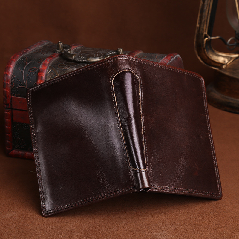 Ví da nam kiểu dáng ngắn gọn, làm từ chất da mềm có lớp phủ bóng nhẹ, mang phong cách hoài cổ. Thiết kế này có nhiều ngăn đựng thẻ, giúp bạn sắp xếp tiền mặt và các loại thẻ dễ dàng. Sản phẩm phù hợp để cất giữ tiền giấy, thẻ thành viên và một số giấy tờ cá nhân. Bạn chỉ cần cho tiền và thẻ vào các ngăn được thiết kế riêng, rất tiện lợi cho việc sử dụng hằng ngày. | Tên sản phẩm: Ví Bóp Nam Phong Cách Âu Mỹ - Túi Xách Ví Nam | Mã sản phẩm: A3736 - Giá: 500.000đ | Mã nhà sản xuất: GUDNG-G01Hình ảnh sản phẩm