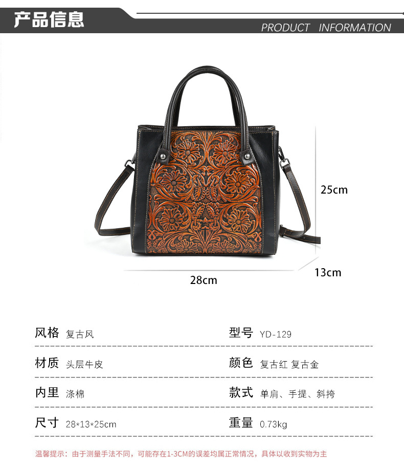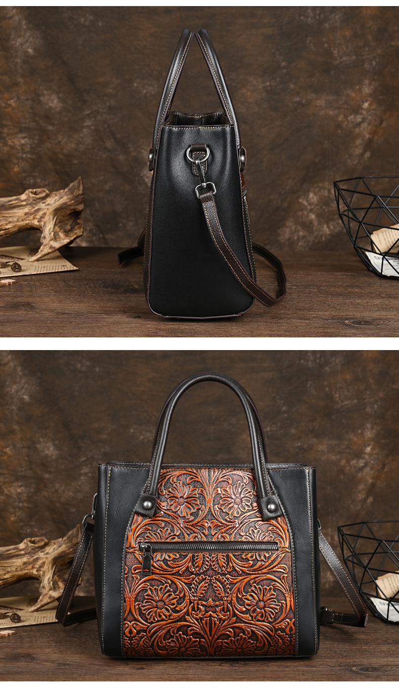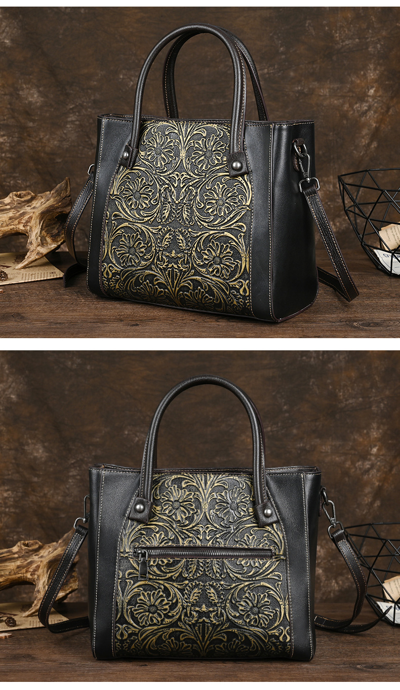 Túi xách dành cho nữ được làm hoàn toàn từ chất liệu da thật tự nhiên. Kiểu dáng mang hơi hướng hoài cổ, phù hợp cho nhiều dịp. Sản phẩm có qu đeo tay và dây dài để bạn có thể mang trên tay, khoác v hoặc đeo chéo người một cách linh hoạt. Bề mặt túi được tạo hoa văn thủ công tinh xảo, tôn lên vẻ đẹp độc đáo. Sử dụng túi hàng ngày và lau chùi nhẹ nhàng bằng vải mềm để giữ vẻ ngoài luôn như mới. | Tên sản phẩm: Túi Xách Nữ Chất Liệu Da Bò Phục Cổ Cổ Điển - Túi Ví Nữ | Mã sản phẩm: A3766 - Giá: 1.220.000đ | Mã nhà sản xuất: GUDNG-G04Hình ảnh sản phẩm