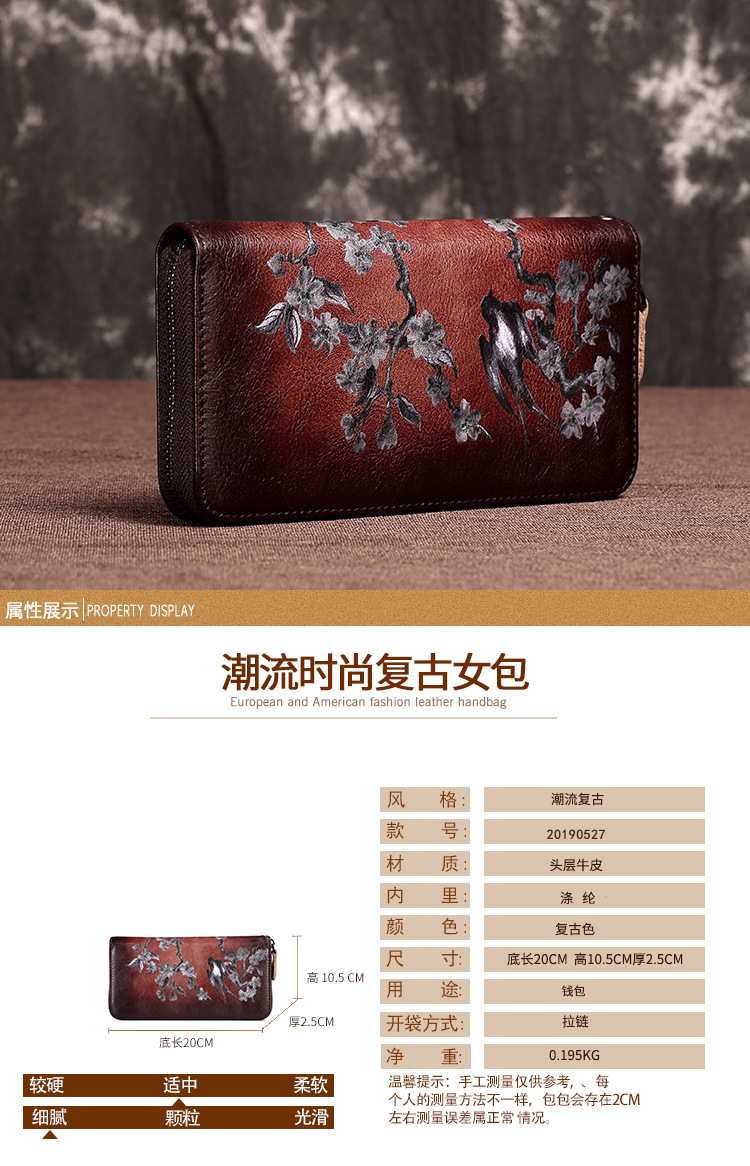 Ví da nữ kiểu dáng dài, mang phong cách hoài cổ với thiết kế nhiều ngăn tiện dụng. Sản phẩm được làm từ chất liệu da bò mềm mại và bền chắc, có khóa kéo toàn bộ giúp bảo vệ các vật dụng bên trong một cách an toàn. Bạn có thể dễ dàng đựng tiền mặt, thẻ tín dụng và các vật dụng cá nhân nhỏ gọn. Sử dụng bằng cách mở khóa kéo để lấy đồ, rất đơn giản và thuận tiện cho việc mang theo hàng ngày. | Tên sản phẩm: Ví Bóp Cầm Tay Nữ Chất Liệu Da Bò Phong Cách Âu Mỹ - Túi Ví Nữ | Mã sản phẩm: A3806 - Giá: 720.000đ | Mã nhà sản xuất: GUDNG-G02Hình ảnh sản phẩm