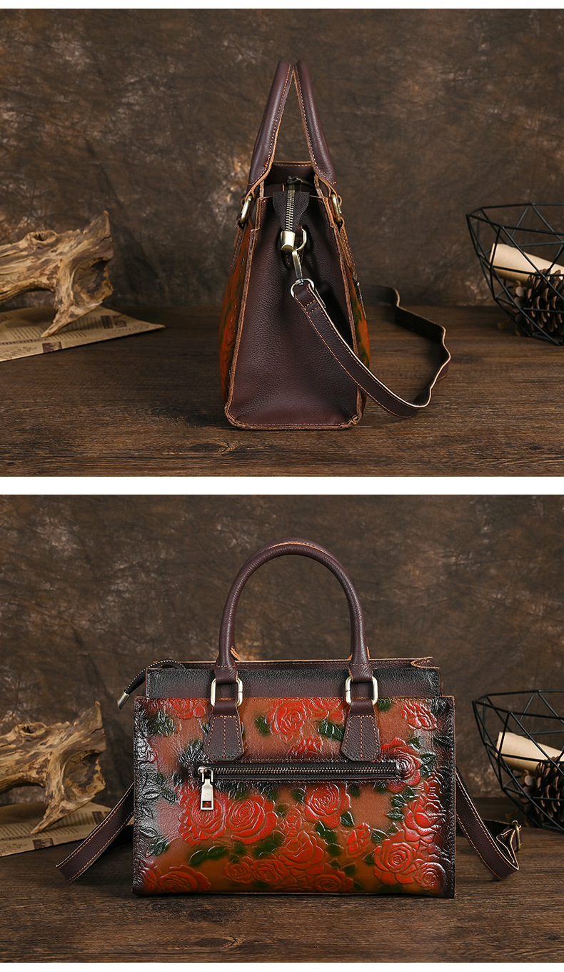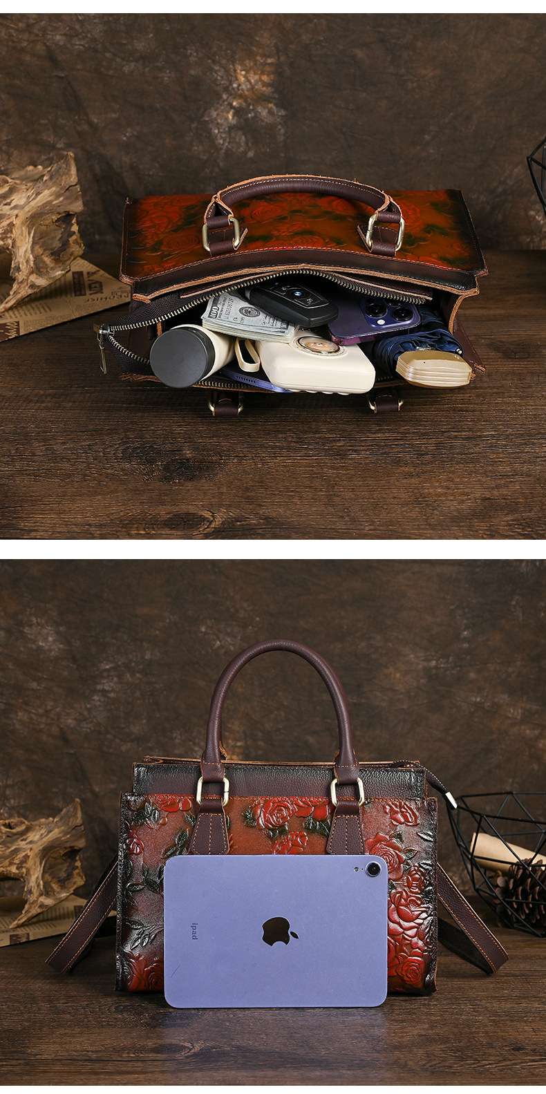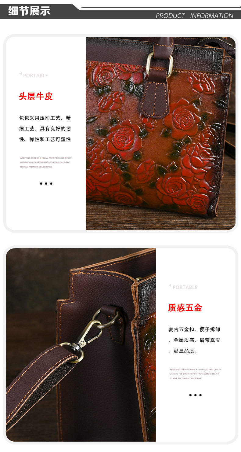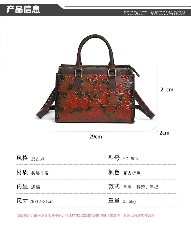 Túi xách nữ thiết kế dáng xách chéo và cầm tay tiện lợi. Sản phẩm được làm từ chất liệu da thật bền đẹp, bề mặt có họa tiết dập nổi tinh tế. Ngăn chứa rộng rãi giúp đựng vừa nhiều vật dụng cá nhân như ví, điện thoại và các vật dụng cần thiết khác. Kiểu dáng đơn giản dễ phối hợp với nhiều trang phục. Dây đeo có thể điều chỉnh linh hoạt, phù hợp cho nhiều hoàn cảnh sử dụng hàng ngày. | Tên sản phẩm: Túi Xách Nữ Chất Liệu Da Bò Họa Tiết Hoa - Túi Ví Nữ | Mã sản phẩm: A3840 - Giá: 1.520.000đ | Mã nhà sản xuất: GUDNG-G04Hình ảnh sản phẩm