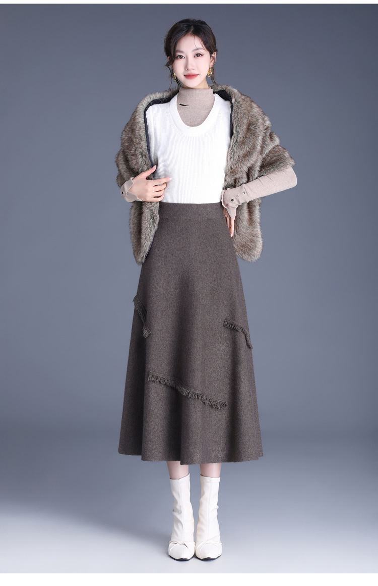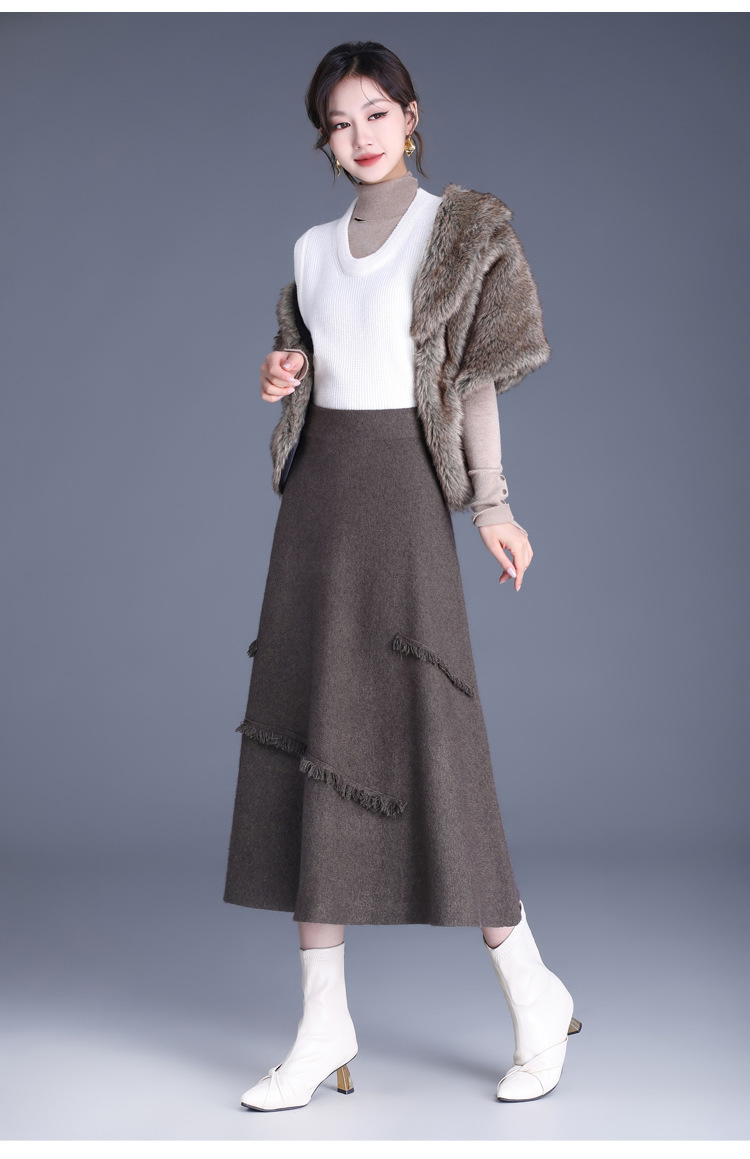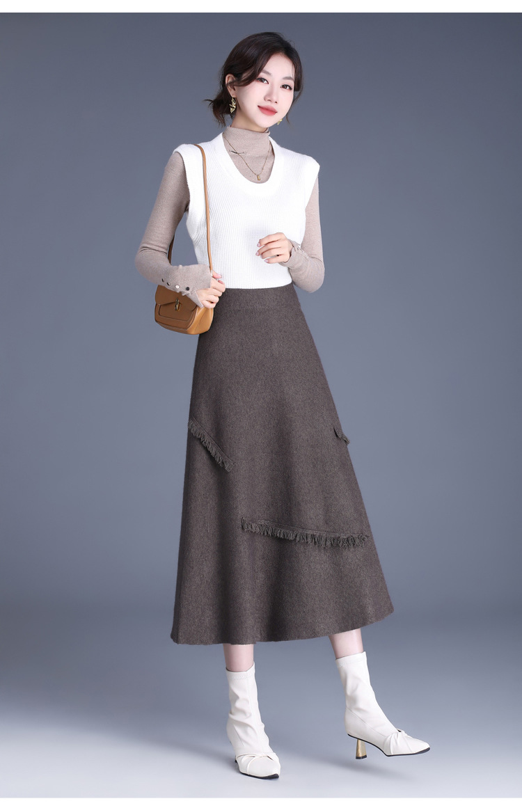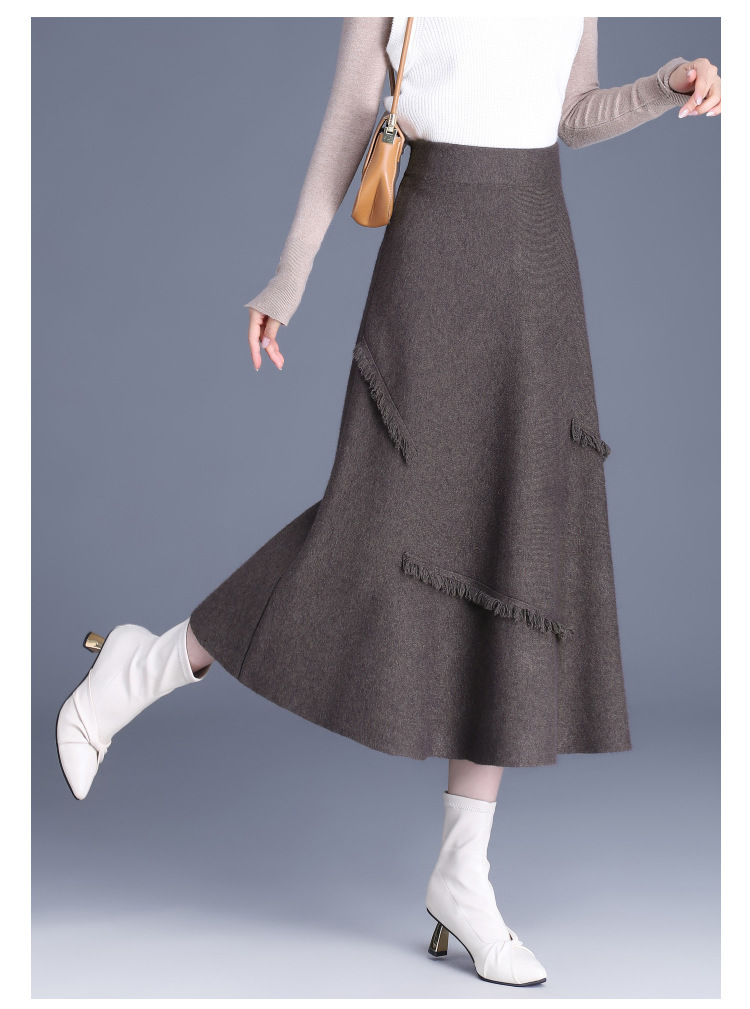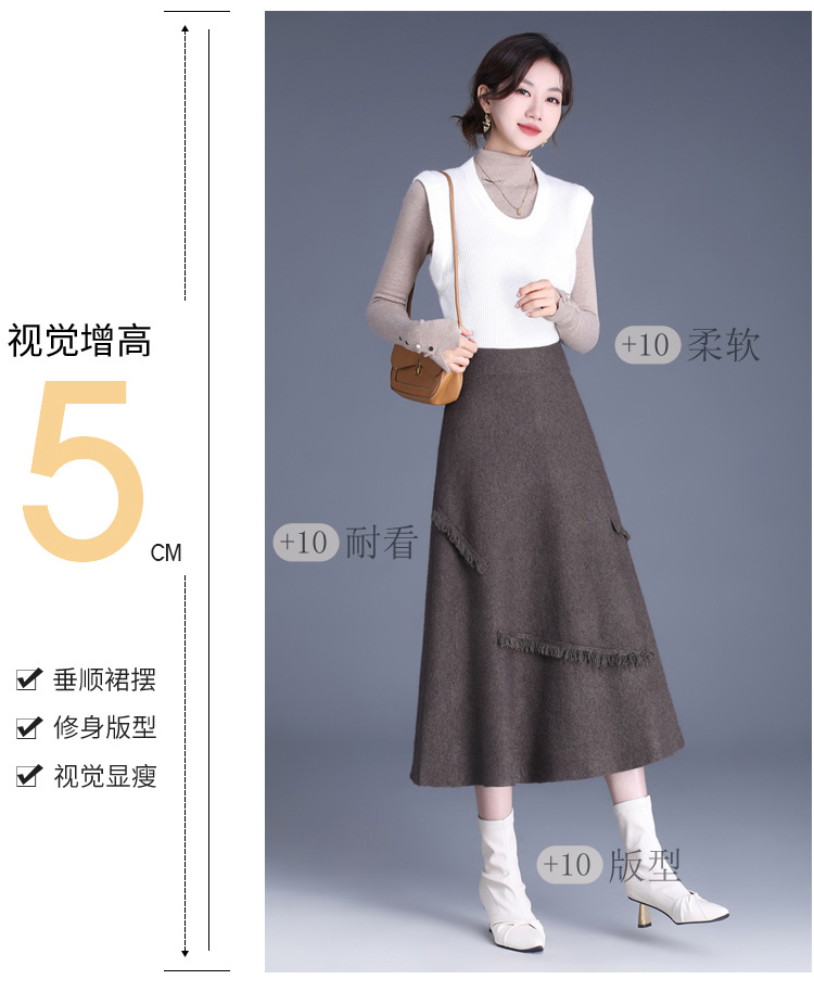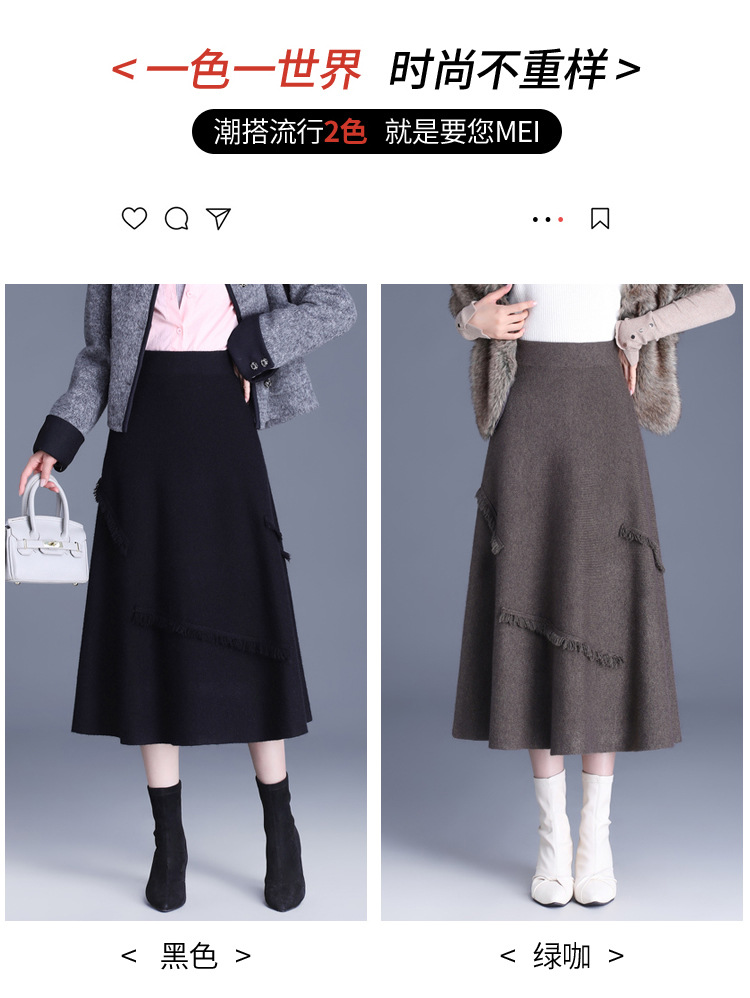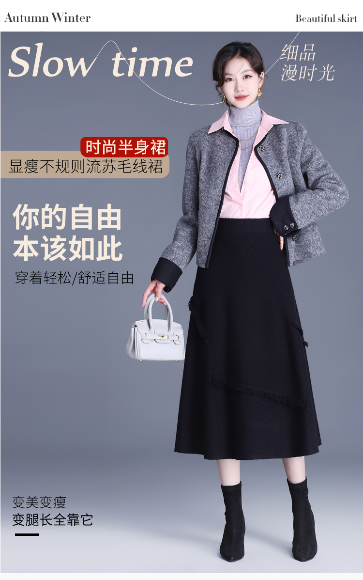 Chiếc váy dệt kim này có kiểu dáng chữ A thanh thoát, dáng dài vừa phải dễ mặc. Chất liệu len mềm mại giữ ấm nhẹ nhàng, phù hợp cho thời tiết mát mẻ. Phần thắt lưng có dây co giãn ôm vừa vặn cơ thể, tạo cảm giác dễ chịu. Bạn có thể phối cùng áo thun hoặc áo sơ mi để đi làm hoặc dạo phố. Kiểu thiết kế đơn giản, dễ dàng kết hợp với nhiều loại trang phục khác nhau. | Tên sản phẩm: Chân Váy Đầm Nữ Áo Len Dáng Chữ A Hàng Mùa Xuân Thu Đông - Thời Trang Nữ | Mã sản phẩm: a3899 - Giá: 690.000đ | Mã nhà sản xuất: METYQ-G02Hình ảnh sản phẩm