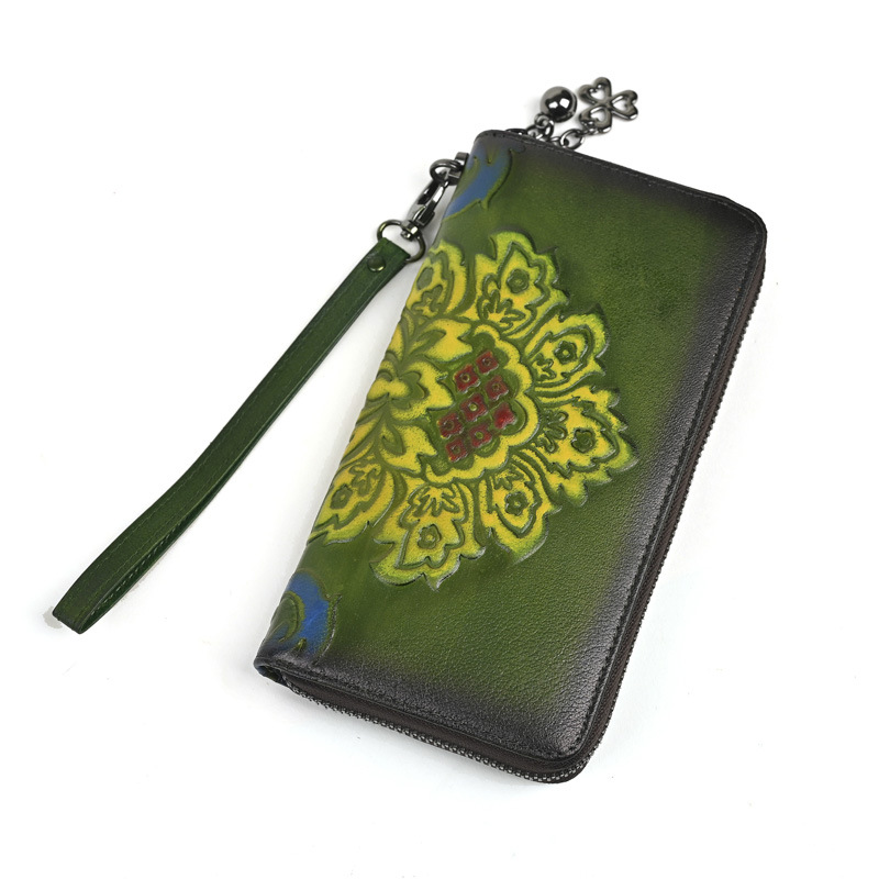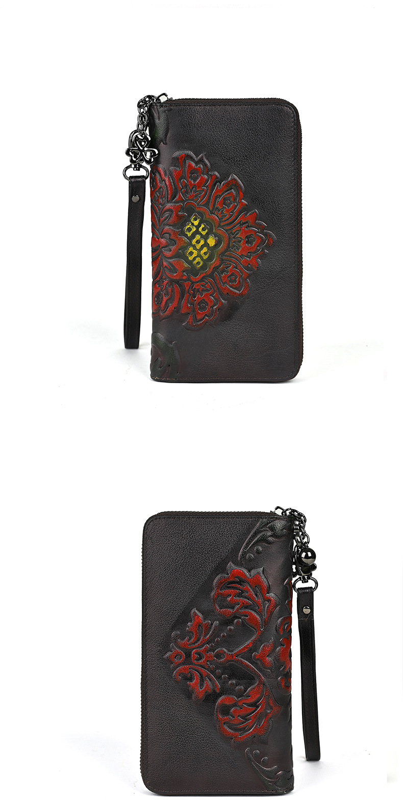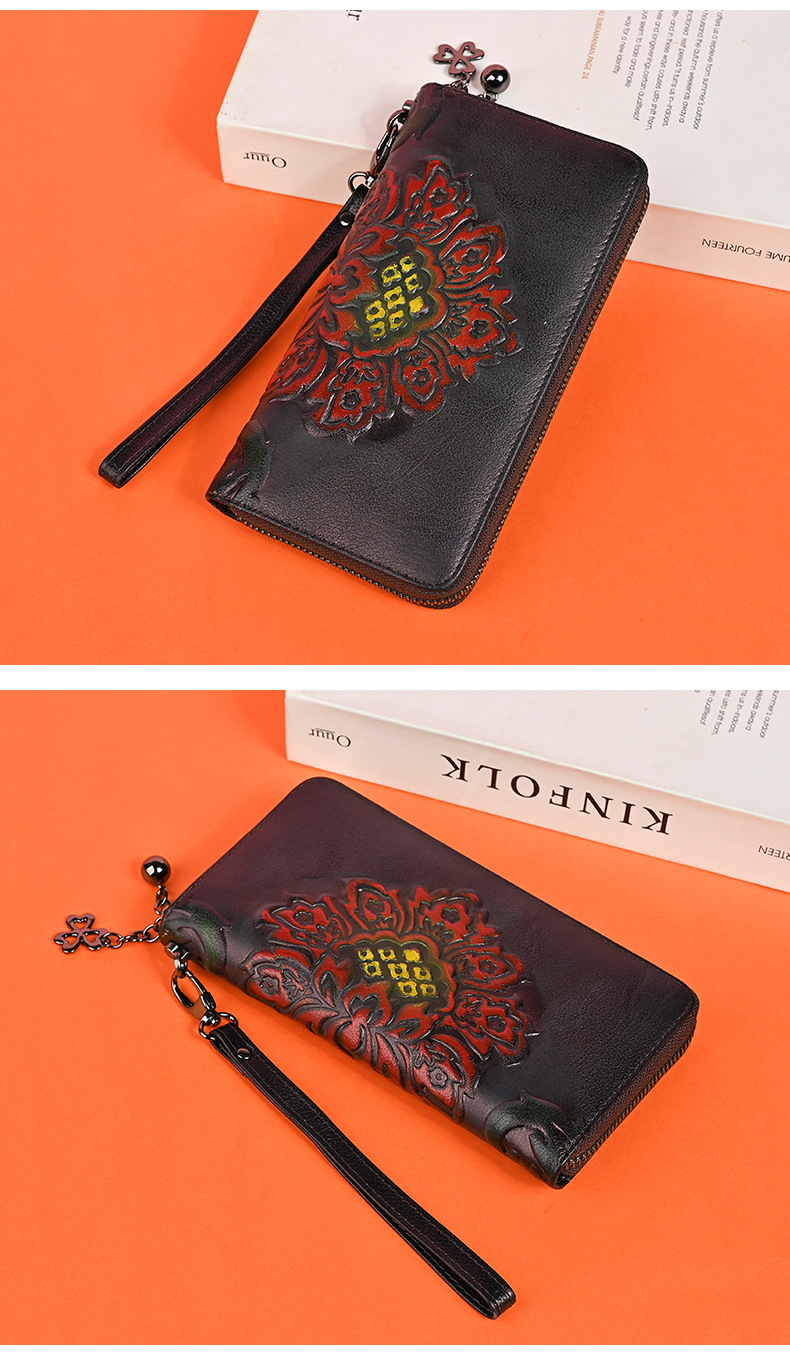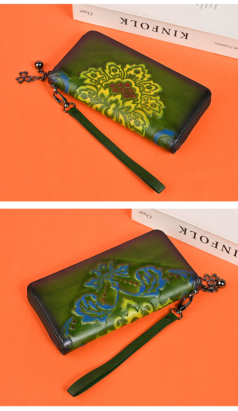 Chiếc ví dài dành cho nữ này được làm từ chất liệu da thật, mang đến cảm giác mềm mại và bền bỉ. Thiết kế dáng dài có in họa tiết vẽ tay độc đáo, kèm theo khóa kéo tiện lợi. Sản phẩm có nhiều ngăn rộng rãi, giúp bạn đựng được tiền, thẻ, và cả điện thoại một cách gọn gàng. Bạn có thể cầm tay hoặc mang theo bên mình một cách dễ dàng. Rất thích hợp để sử dụng hàng ngày. | Tên sản phẩm: Ví Bóp Cầm Tay Nữ Chất Liệu Da Bò Họa Tiết Hoa - Túi Ví Nữ | Mã sản phẩm: A3949 - Giá: 670.000đ | Mã nhà sản xuất: GUDNG-G02Hình ảnh sản phẩm