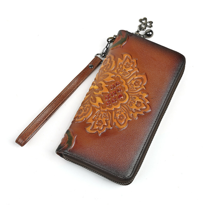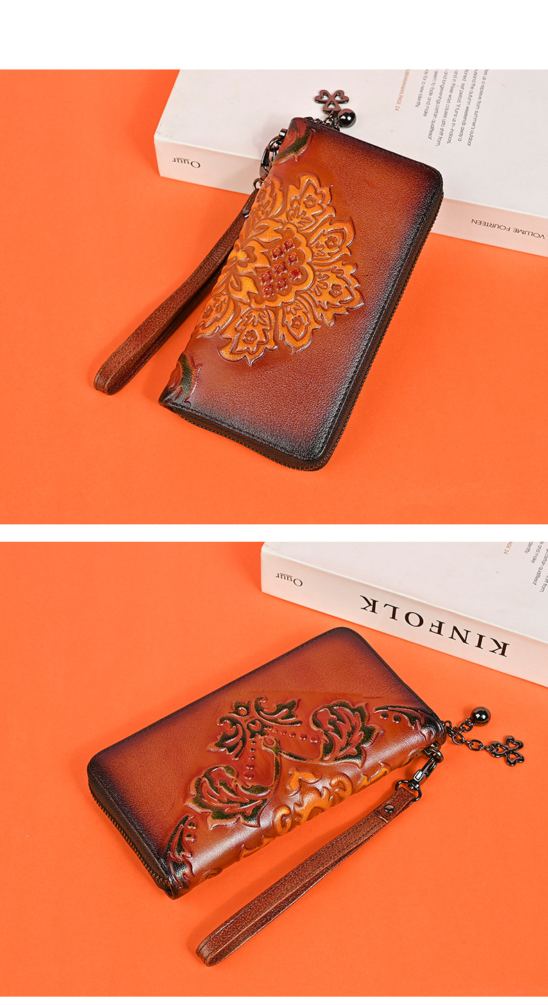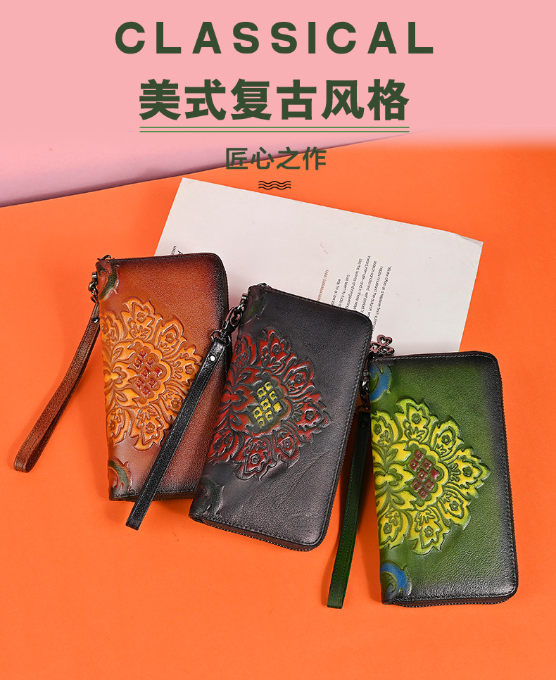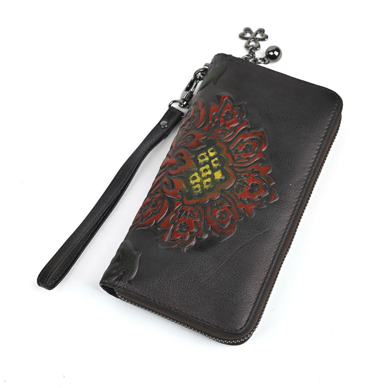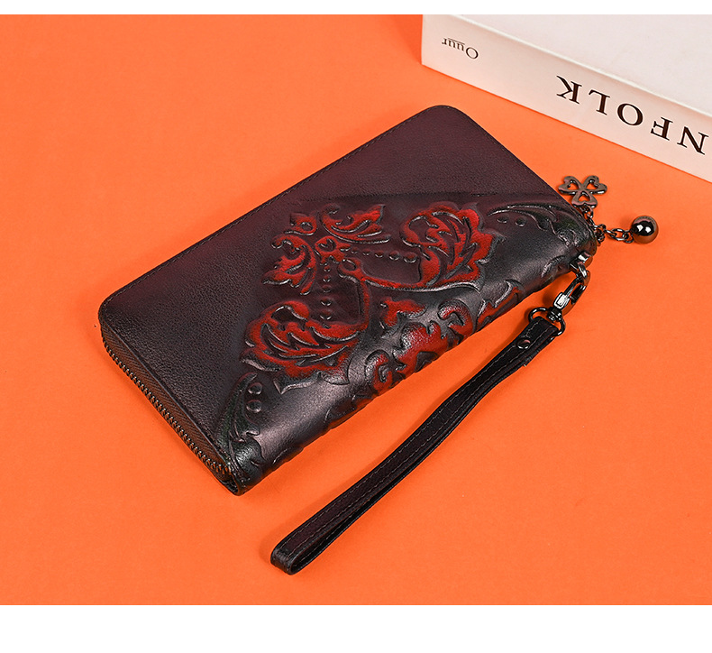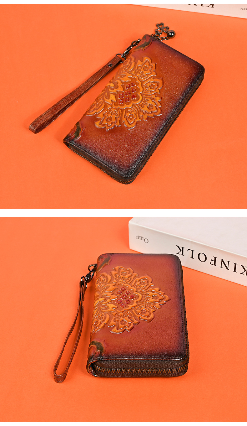 Chiếc ví dài dành cho nữ này được làm từ chất liệu da thật, mang đến cảm giác mềm mại và bền bỉ. Thiết kế dáng dài có in họa tiết vẽ tay độc đáo, kèm theo khóa kéo tiện lợi. Sản phẩm có nhiều ngăn rộng rãi, giúp bạn đựng được tiền, thẻ, và cả điện thoại một cách gọn gàng. Bạn có thể cầm tay hoặc mang theo bên mình một cách dễ dàng. Rất thích hợp để sử dụng hàng ngày. | Tên sản phẩm: Ví Bóp Cầm Tay Nữ Chất Liệu Da Bò Họa Tiết Hoa - Túi Ví Nữ | Mã sản phẩm: A3949 - Giá: 670.000đ | Mã nhà sản xuất: GUDNG-G02Hình ảnh sản phẩm