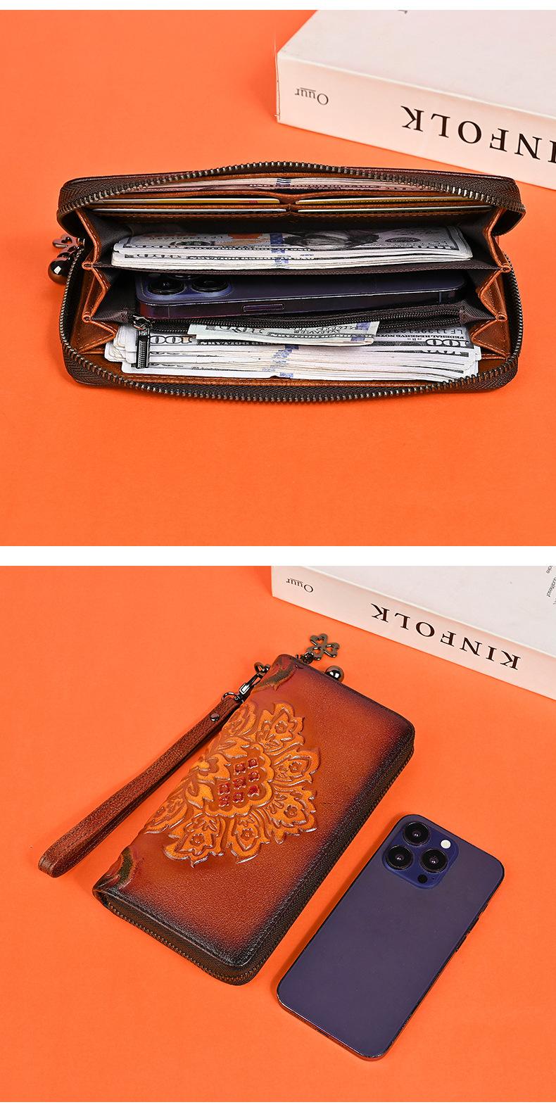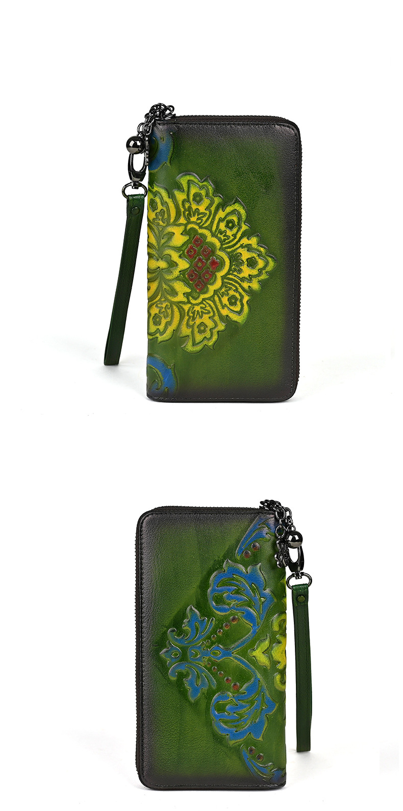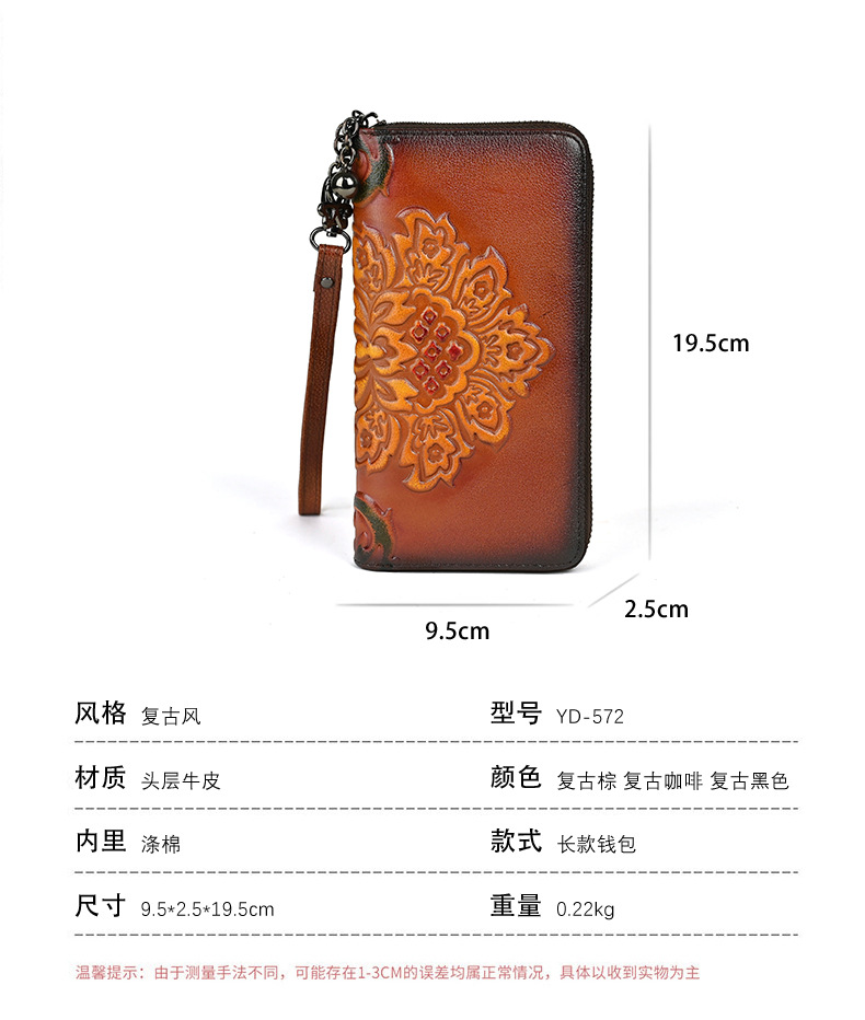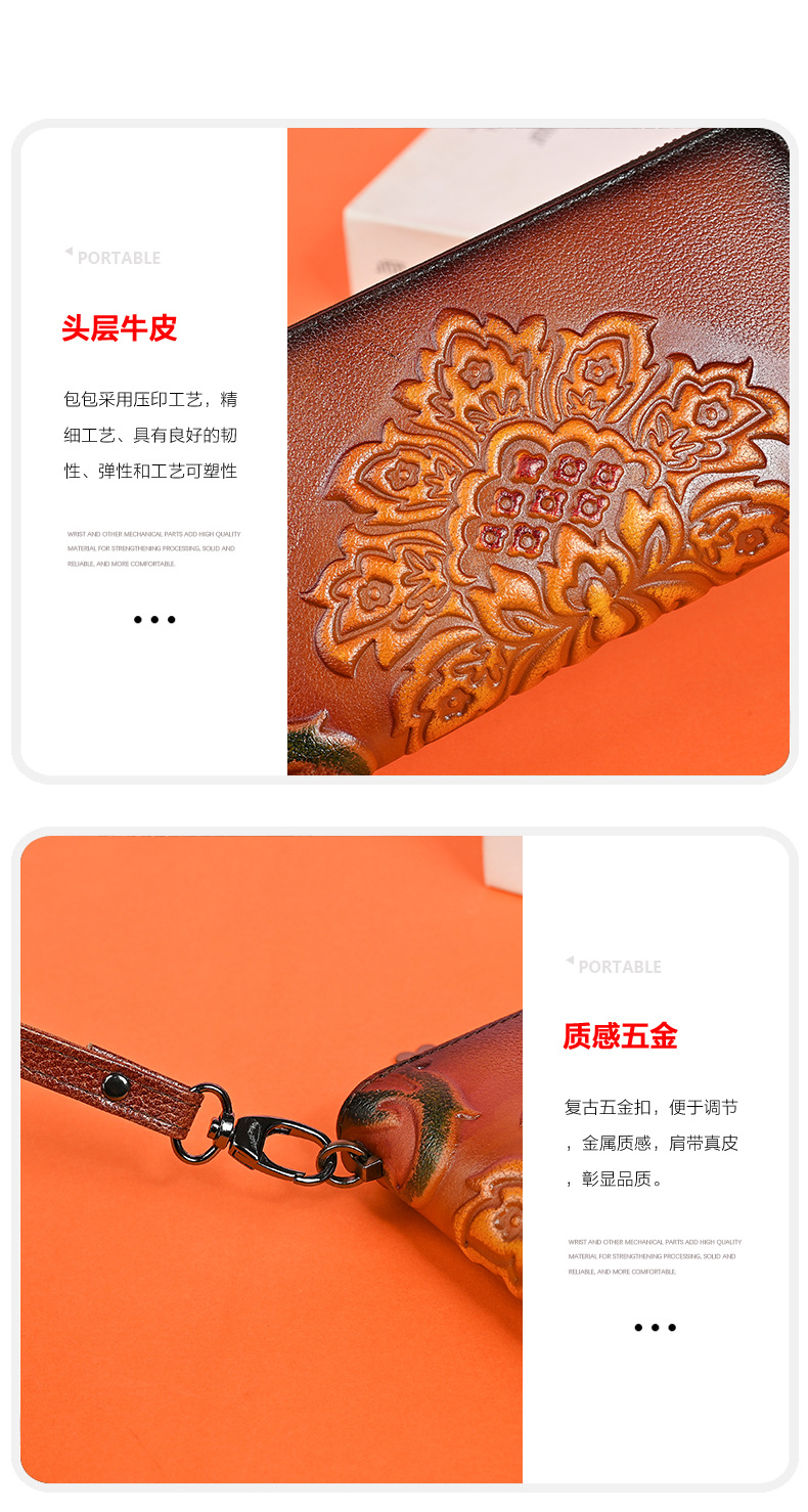 Chiếc ví dài dành cho nữ này được làm từ chất liệu da thật, mang đến cảm giác mềm mại và bền bỉ. Thiết kế dáng dài có in họa tiết vẽ tay độc đáo, kèm theo khóa kéo tiện lợi. Sản phẩm có nhiều ngăn rộng rãi, giúp bạn đựng được tiền, thẻ, và cả điện thoại một cách gọn gàng. Bạn có thể cầm tay hoặc mang theo bên mình một cách dễ dàng. Rất thích hợp để sử dụng hàng ngày. | Tên sản phẩm: Ví Bóp Cầm Tay Nữ Chất Liệu Da Bò Họa Tiết Hoa - Túi Ví Nữ | Mã sản phẩm: A3949 - Giá: 670.000đ | Mã nhà sản xuất: GUDNG-G02Hình ảnh sản phẩm