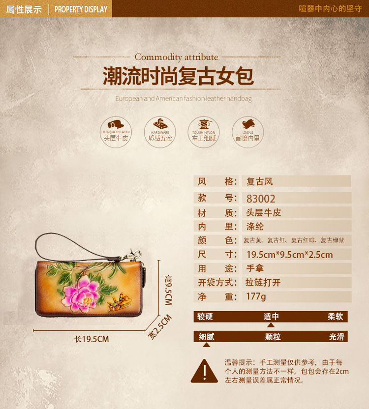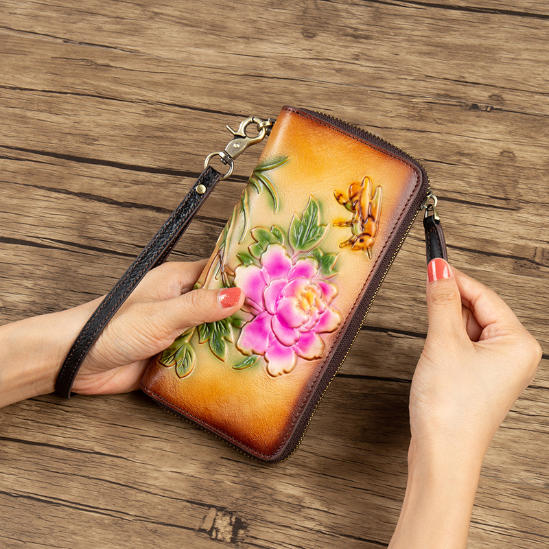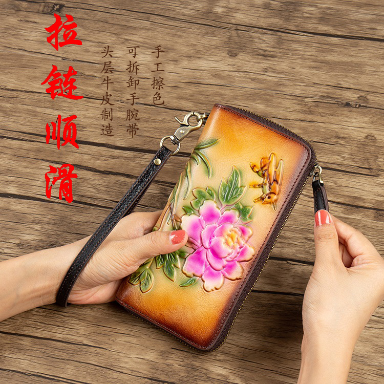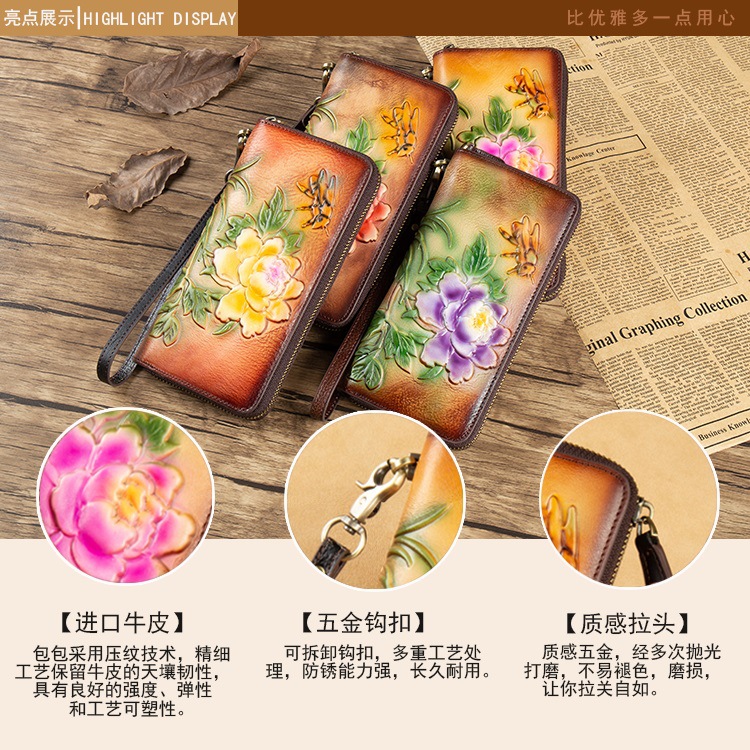 Chiếc túi xách tay này mang phong cách hoài cổ, được làm từ chất liệu da thật bền đẹp. Thiết kế kiểu dáng thon dài và có khóa kéo tiện lợi, tạo nên một khoang chứa đồ rộng rãi bên trong. Sản phẩm kết hợp vẻ đẹp cổ điển với nét hiện đại, phù hợp để cầm tay hoặc kết hợp cùng nhiều trang phục. Bạn có thể dùng nó như một chiếc ví đa năng để đựng tiền, thẻ, và các vật dụng cá nhân cần thiết hàng ngày một cách gọn gàng. | Tên sản phẩm: Ví Bóp Cầm Tay Nữ Chất Liệu Da Bò Phong Cách Âu Mỹ - Túi Ví Nữ | Mã sản phẩm: A3964 - Giá: 720.000đ | Mã nhà sản xuất: GUDNG-G02Hình ảnh sản phẩm