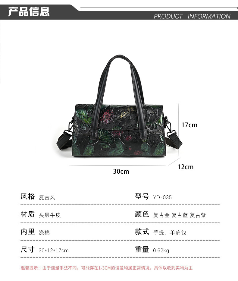 Túi xách dành cho phụ nữ trung niên, mang phong cách cổ điển lấy cảm hứng từ vẻ đẹp truyền thống. Sản phẩm được làm từ chất liệu da thật tự nhiên, bền đẹp theo thời gian. Thiết kế túi rộng rãi, nhiều ngăn tiện lợi giúp đựng được nhiều vật dụng cá nhân cần thiết. Bạn có thể dễ dàng mang túi bằng tay, khoác v hoặc đeo chéo người tùy theo sở thích và nhu cầu sử dụng hằng ngày. Kiểu dáng trang nhã, phù hợp cho nhiều dịp sử dụng khác nhau. | Tên sản phẩm: Túi Xách Nữ Chất Liệu Da Bò Trung Niên Phục Cổ Cổ Điển - Túi Ví Nữ | Mã sản phẩm: A4007 - Giá: 1.190.000đ | Mã nhà sản xuất: GUDNG-G04Hình ảnh sản phẩm