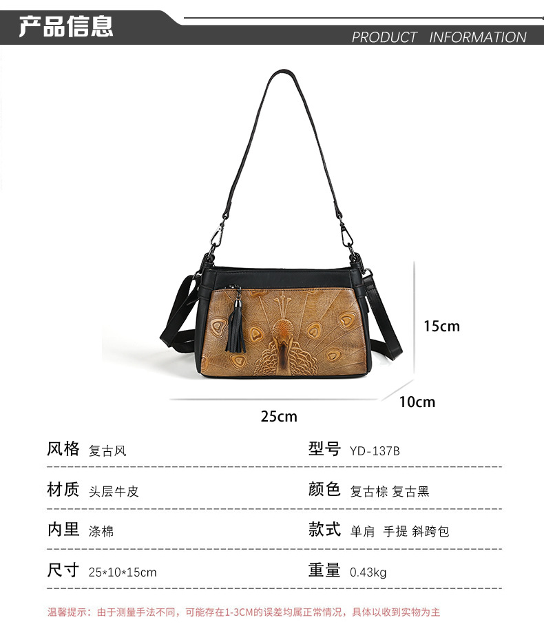 Túi xách dành cho phụ nữ trung niên, được làm từ chất liệu da thật tự nhiên. Kiểu dáng cổ điển phối cùng thiết kế gợi nhớ đến tà áo dài truyền thống, tạo nên vẻ đẹp dịu dàng và thanh lịch. Dây đeo v giúp mang thoải mái, phù hợp cho nhiều dịp sinh hoạt thường ngày. Bạn có thể dễ dàng phối cùng các trang phục đơn giản để tạo điểm nhấn. Sử dụng túi một cách bình thường và lau chùi nhẹ nhàng bằng vải mềm để giữ vẻ ngoài luôn tươi mới. | Tên sản phẩm: Túi Đeo Vai Nữ Chất Liệu Da Bò Trung Niên Phục Cổ Cổ Điển - Túi Ví Nữ | Mã sản phẩm: A4029 - Giá: 1.020.000đ | Mã nhà sản xuất: GUDNG-G03Hình ảnh sản phẩm