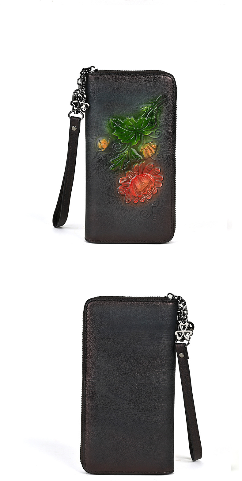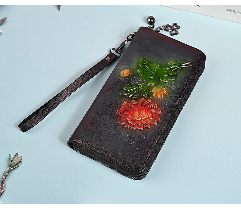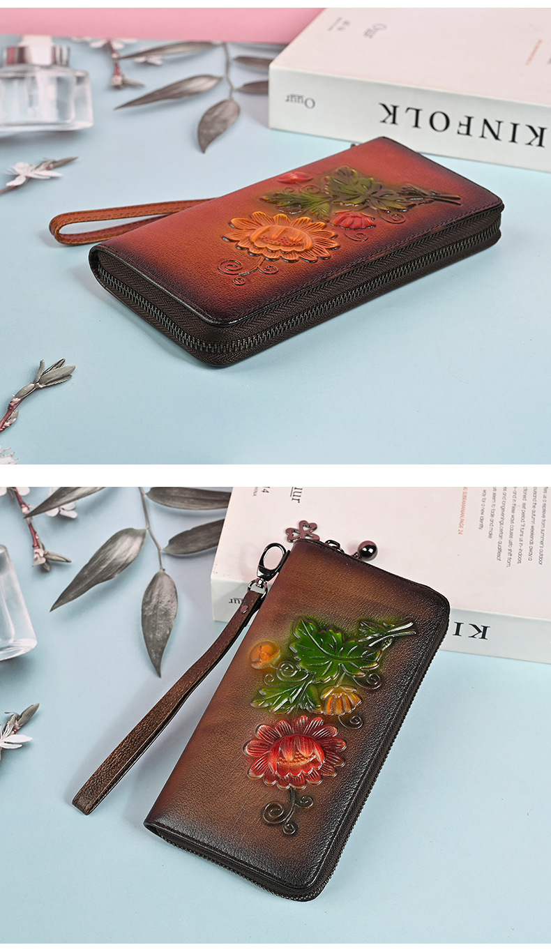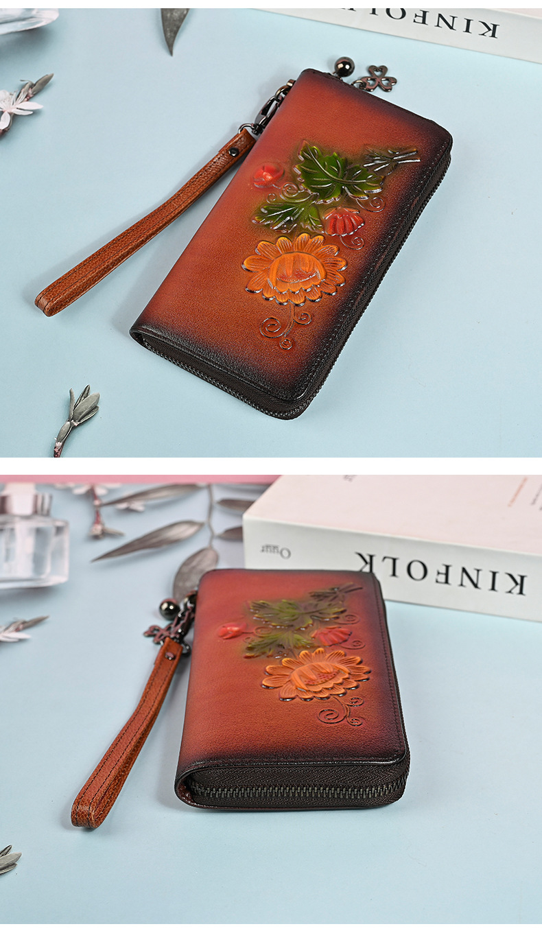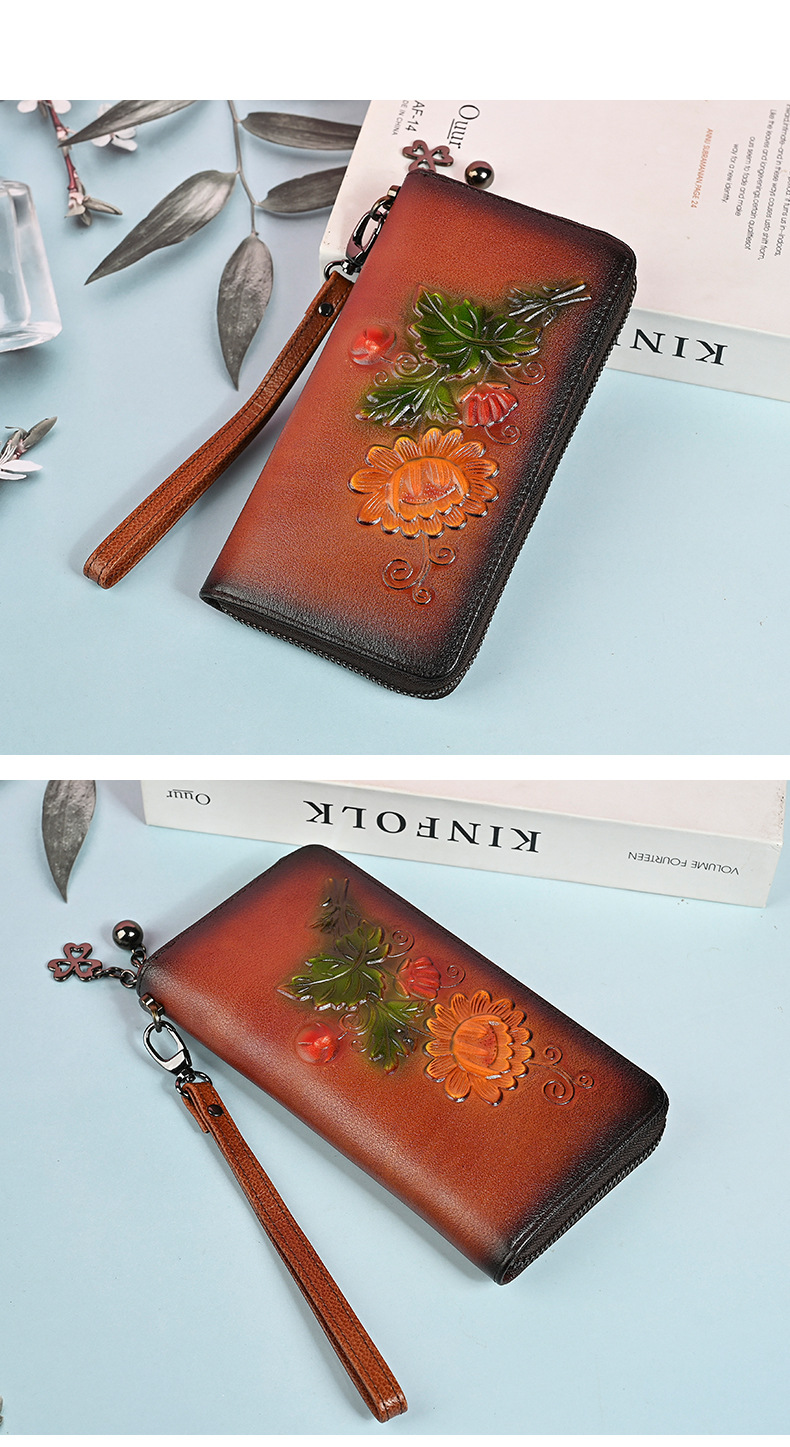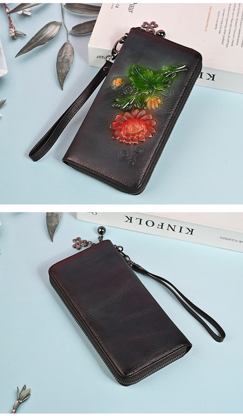 Chiếc ví dài này có kích thước rộng rãi, giúp bạn sắp xếp tiền mặt và thẻ dễ dàng. Thiết kế dáng dài thời trang với đường nét dập nổi tinh tế, kèm theo ngăn kéo khóa an toàn. Bạn có thể dùng như ví cầm tay hoặc để trong túi xách lớn. Sản phẩm còn có ngăn chuyên dụng vừa vặn cho điện thoại, rất tiện lợi khi di chuyển. Kiểu dáng phù hợp cho nhiều dịp sử dụng hàng ngày. | Tên sản phẩm: Ví Bóp Cầm Tay Nữ Họa Tiết Hoa - Túi Ví Nữ | Mã sản phẩm: A4042 - Giá: 670.000đ | Mã nhà sản xuất: GUDNG-G02Hình ảnh sản phẩm