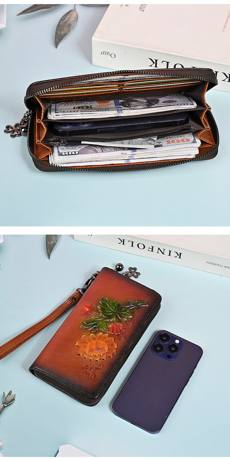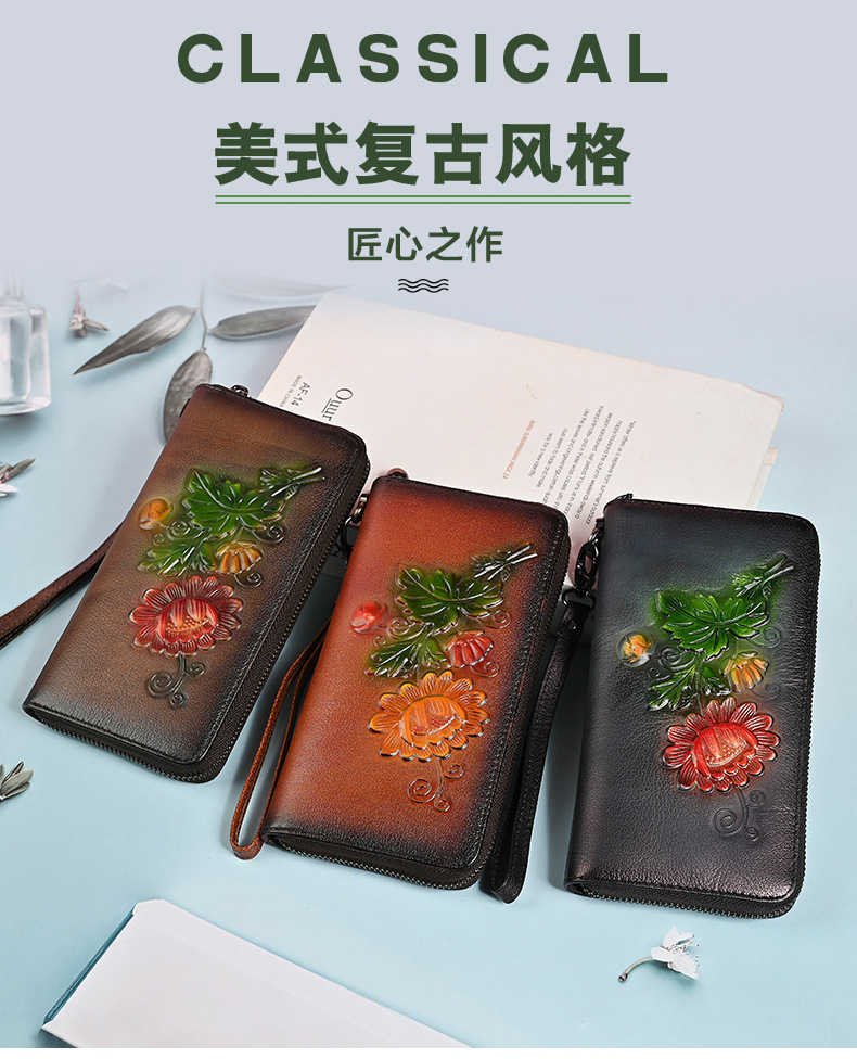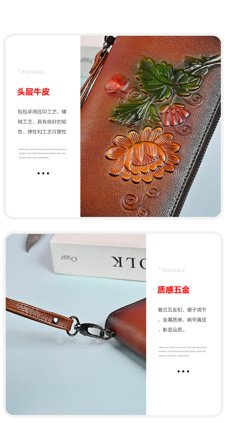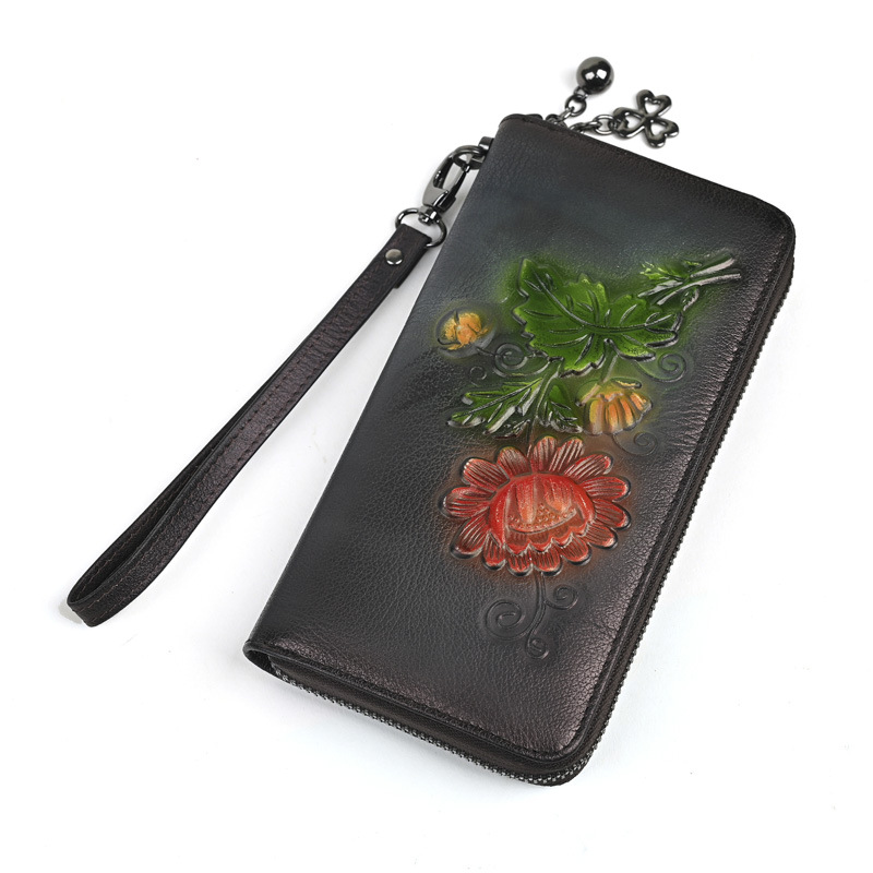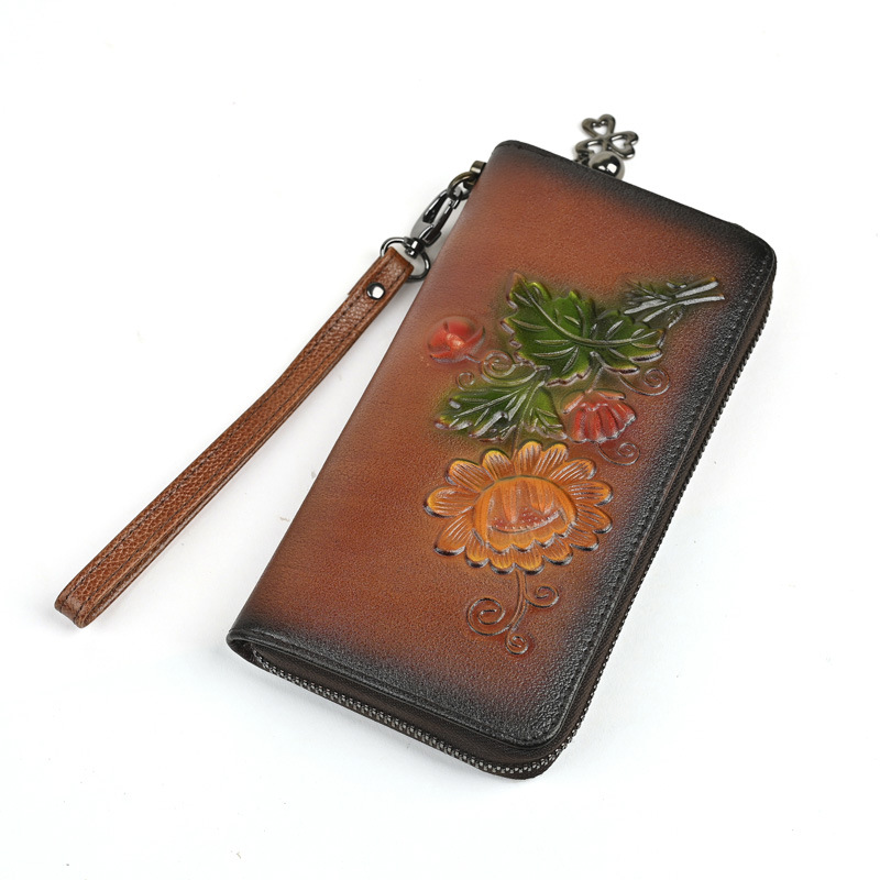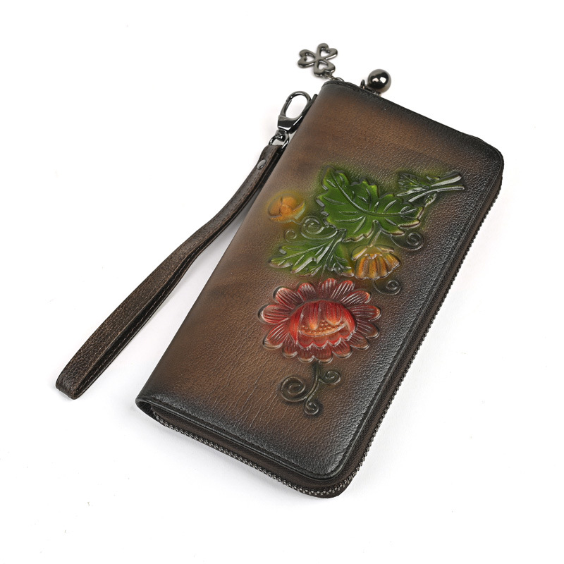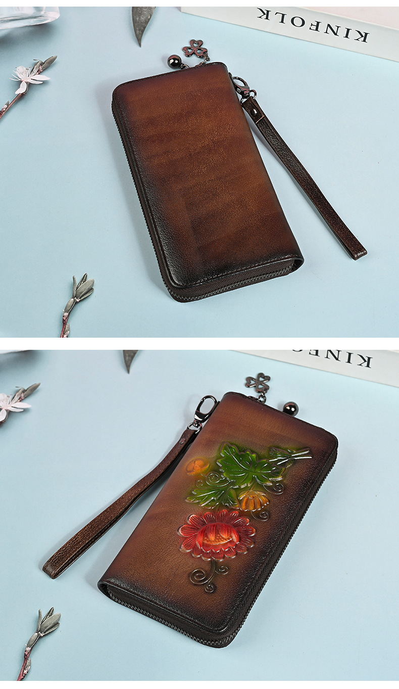Chiếc ví dài này có kích thước rộng rãi, giúp bạn sắp xếp tiền mặt và thẻ dễ dàng. Thiết kế dáng dài thời trang với đường nét dập nổi tinh tế, kèm theo ngăn kéo khóa an toàn. Bạn có thể dùng như ví cầm tay hoặc để trong túi xách lớn. Sản phẩm còn có ngăn chuyên dụng vừa vặn cho điện thoại, rất tiện lợi khi di chuyển. Kiểu dáng phù hợp cho nhiều dịp sử dụng hàng ngày. | Tên sản phẩm: Ví Bóp Cầm Tay Nữ Họa Tiết Hoa - Túi Ví Nữ | Mã sản phẩm: A4042 - Giá: 670.000đ | Mã nhà sản xuất: GUDNG-G02Hình ảnh sản phẩm