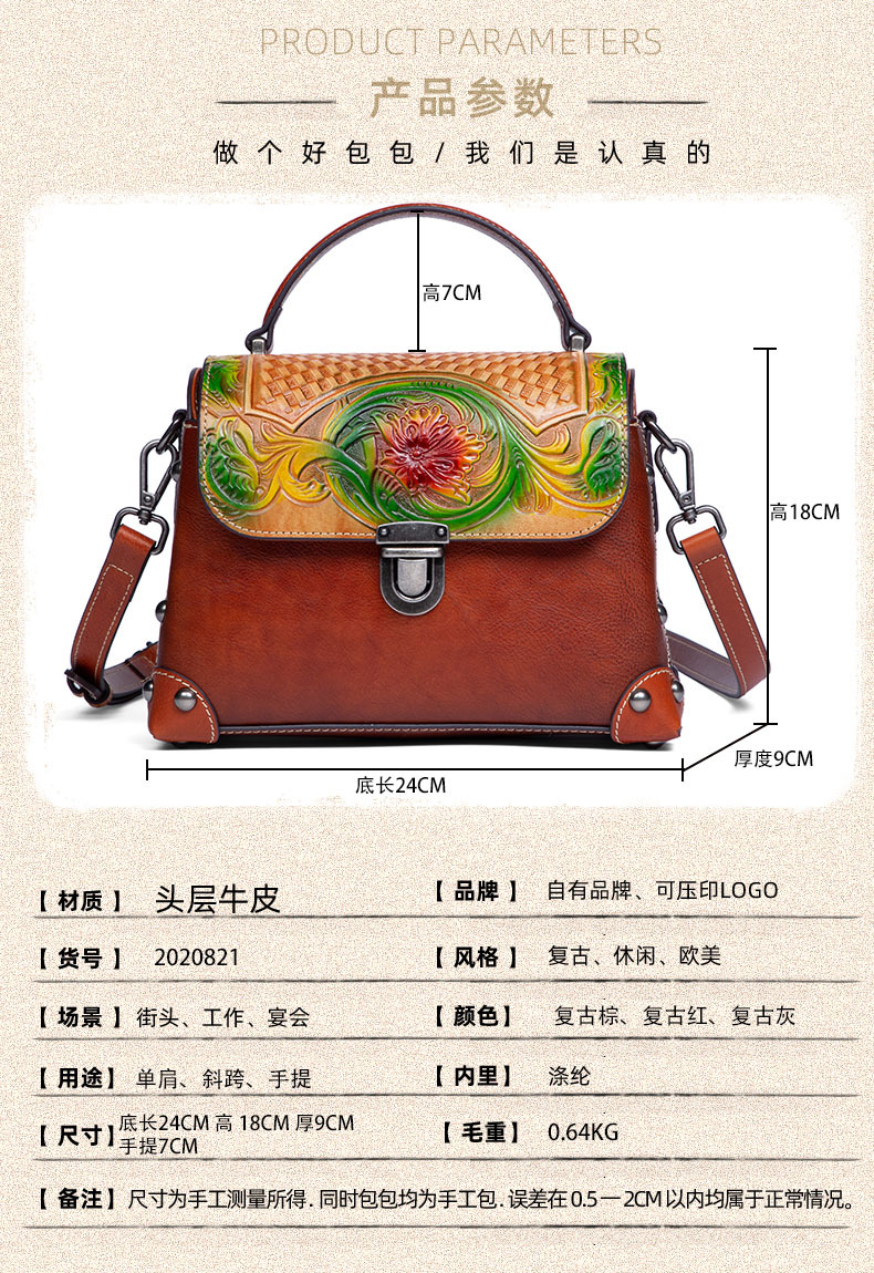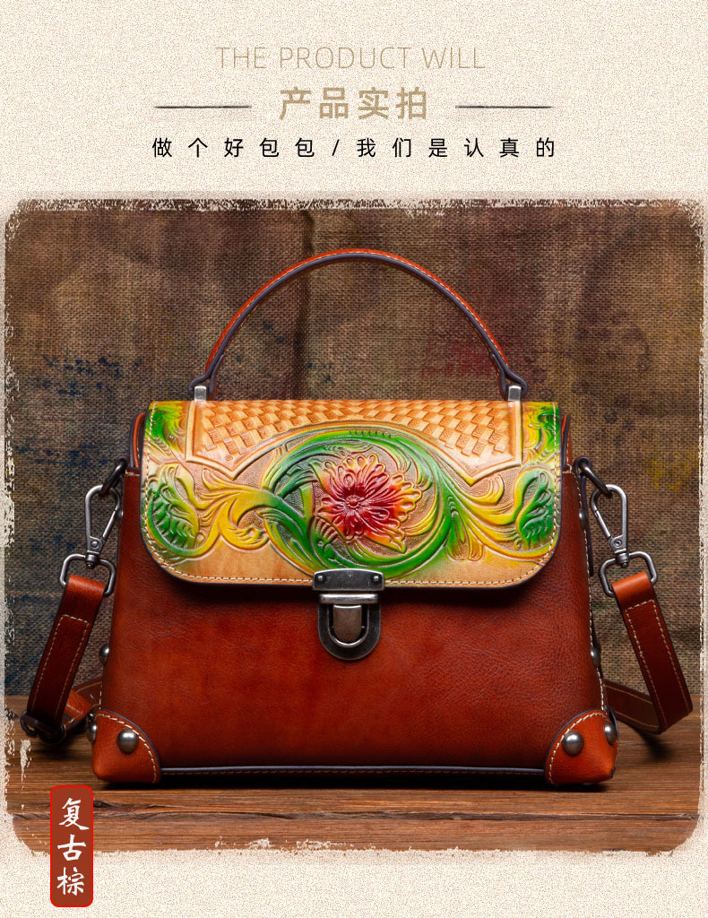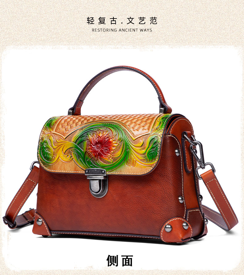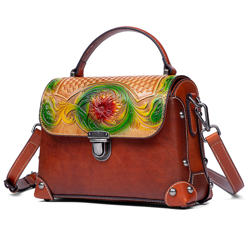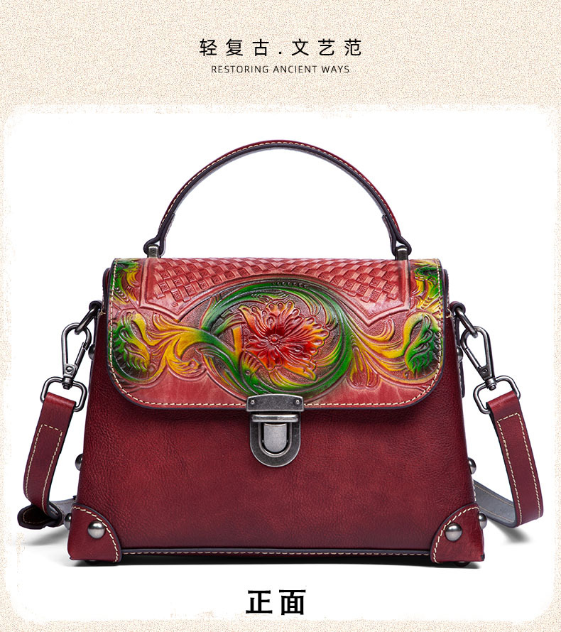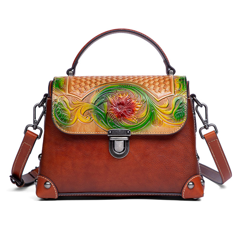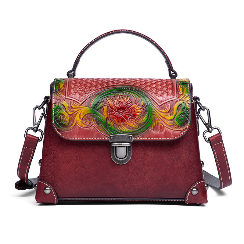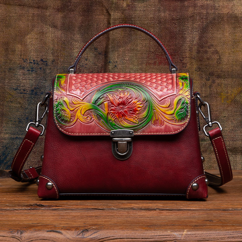 Túi xách tay dành cho nữ, mang phong cách hoài cổ với đường nét dân tộc độc đáo. Sản phẩm được làm từ chất liệu da bò tự nhiên, bền đẹp theo thời gian. Điểm nổi bật là kỹ thuật nhuộm màu và chạm khắc thủ công tinh xảo trên bề mặt da, tạo nên vẻ ngoài ấn tượng. Bạn có thể dễ dàng mang túi bằng tay hoặc khoác v một cách thoải mái. Thiết kế này phù hợp để sử dụng trong nhiều dịp khác nhau, từ đi làm đến những buổi gặp mặt thường ngày. | Tên sản phẩm: Túi Xách Nữ Chất Liệu Da Bò Phục Cổ Cổ Điển - Túi Ví Nữ | Mã sản phẩm: A4073 - Giá: 1.900.000đ | Mã nhà sản xuất: GUDNG-G05Hình ảnh sản phẩm