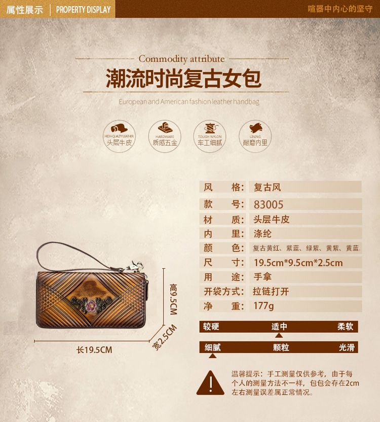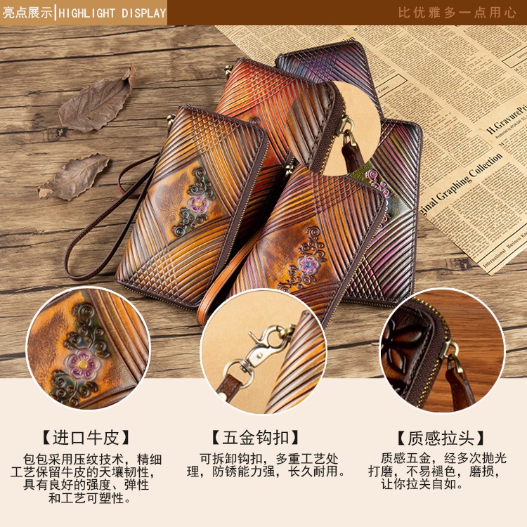 Chiếc bóp ví nữ này được làm từ chất liệu da thật lâu bền, có kiểu dáng cổ điển và thiết kế dọc. Sản phẩm có kích thước rộng rãi, chứa được nhiều vật dụng cá nhân bên trong. Bóp được trang bị khóa kéo chắc chắn, giúp bảo vệ các món đồ nhỏ gọn gàng. Bạn có thể dùng để đựp tiền mặt, thẻ tín dụng và một số giấy tờ cần thiết. Rất phù hợp để cầm tay hoặc cho vào túi xách khi ra ngoài. | Tên sản phẩm: Ví Bóp Cầm Tay Nữ Chất Liệu Da Bò Phục Cổ Cổ Điển - Túi Ví Nữ | Mã sản phẩm: A4087 - Giá: 720.000đ | Mã nhà sản xuất: GUDNG-G02Hình ảnh sản phẩm