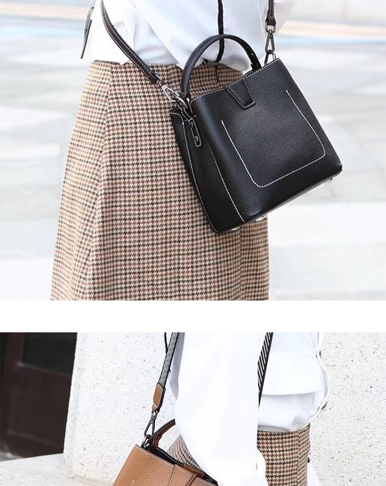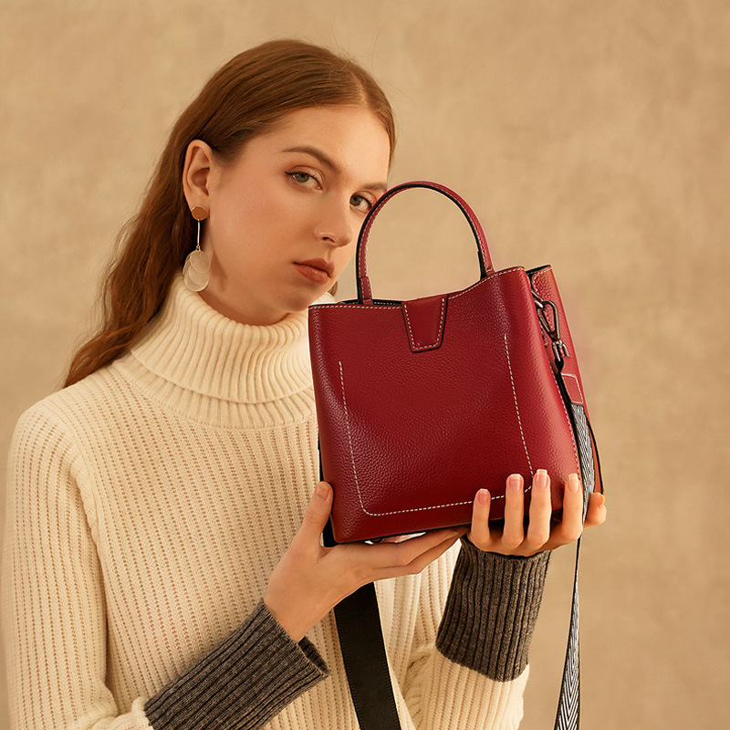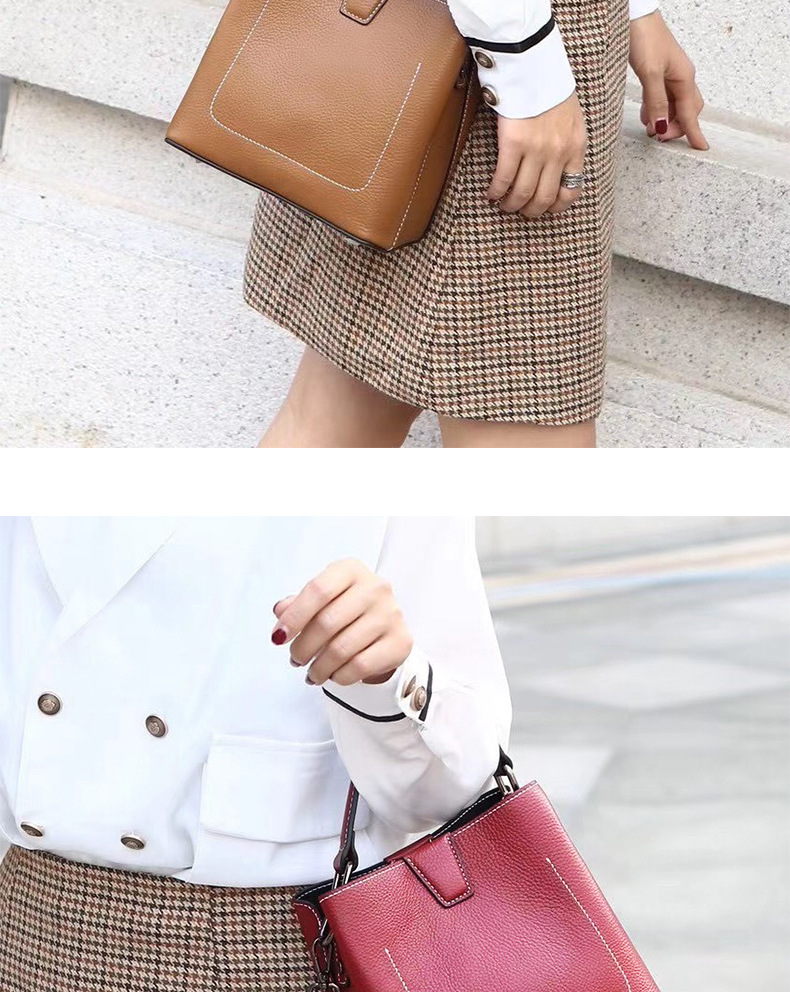 Túi xách tay dáng thùng cổ điển, được làm từ chất liệu da bò mềm mại và bền bỉ. Thiết kế này kết hợp phong cách đơn giản với nét đẹp hoài cổ, tạo điểm nhấn thanh lịch. Bạn có thể dễ dàng mang trên tay, khoác v hoặc đeo chéo người một cách thoải mái cho nhiều dịp khác nhau. Ngăn chứa rộng rãi bên trong giúp đựng vừa các vật dụng cá nhân cần thiết hàng ngày một cách gọn gàng. | Tên sản phẩm: Túi Xách Nữ Chất Liệu Da Bò Phong Cách Âu Mỹ - Túi Ví Nữ | Mã sản phẩm: A4103 - Giá: 1.120.000đ | Mã nhà sản xuất: GUDAT-G04Hình ảnh sản phẩm