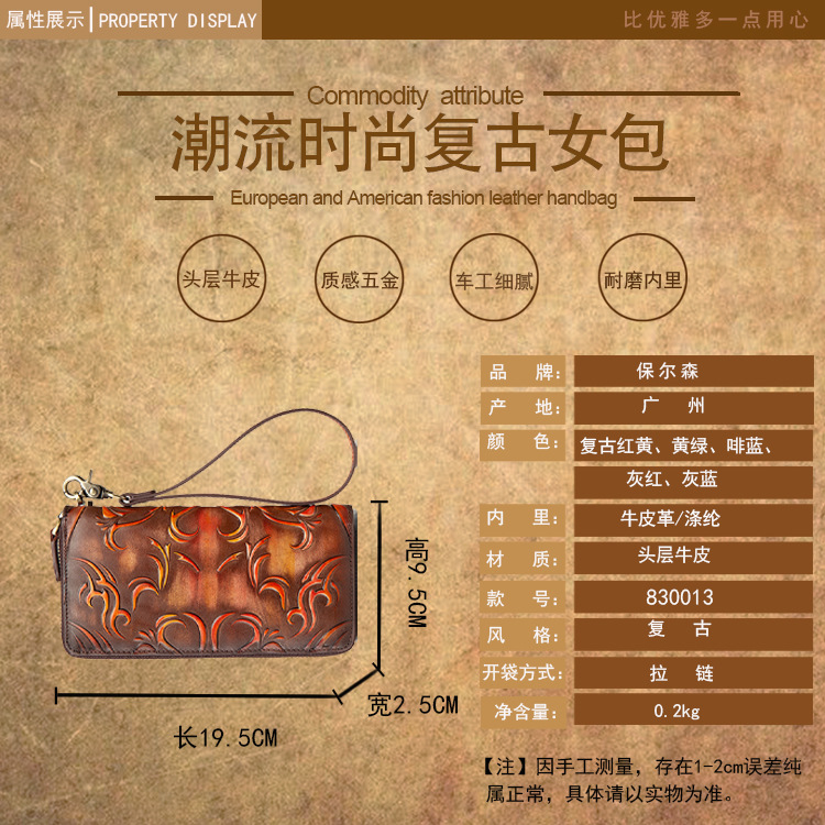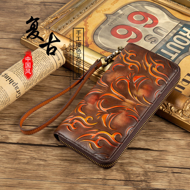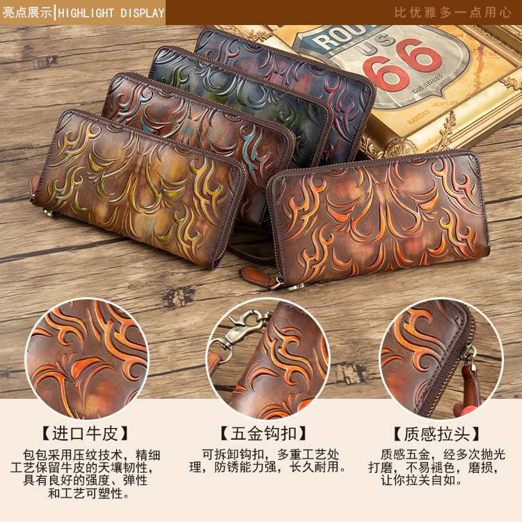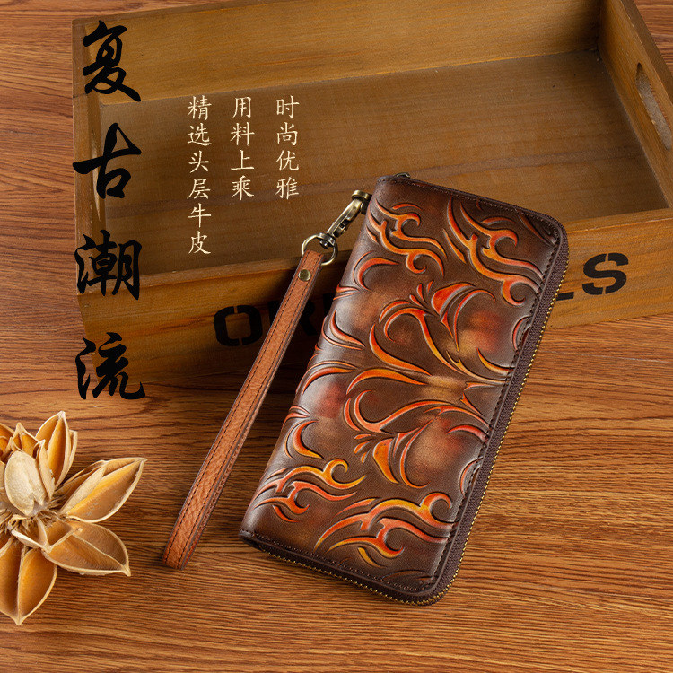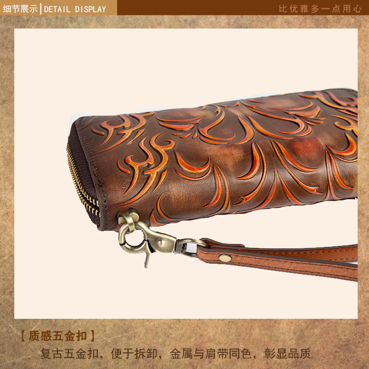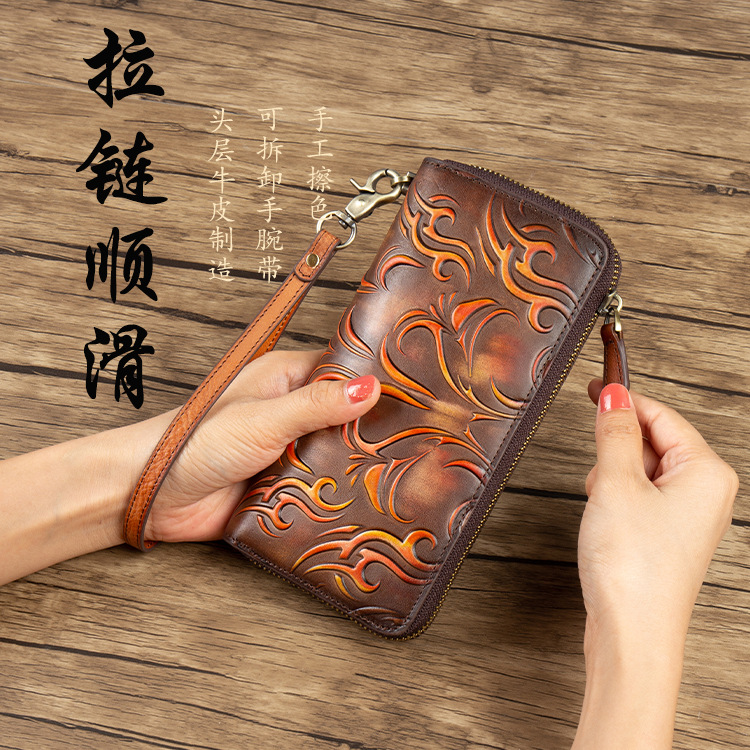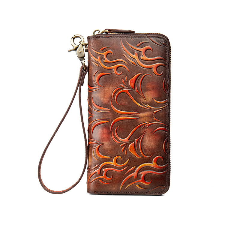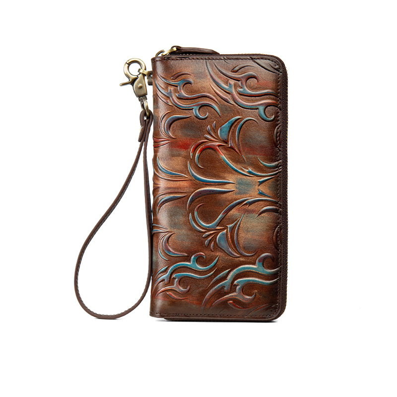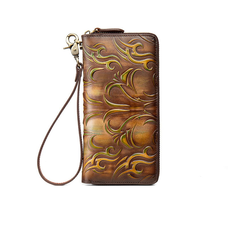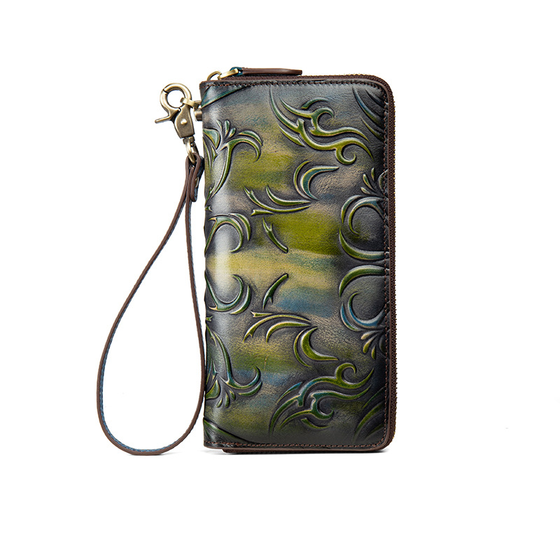 Chiếc ví này mang nét đẹp cổ điển với các họa tiết dập nổi tinh tế. Chất liệu da thật tự nhiên tạo cảm giác mềm mại và bền chắc. Thiết kế dáng dài vừa vặn, có thể cầm tay hoặc đeo kèm dây, tiện lợi cho việc đựng điện thoại, tiền và các vật dụng cá nhân. Bạn chỉ cần xếp tiền vào ngăn chuyên dụng và để các thẻ thanh toán vào những ngăn riêng biệt. | Tên sản phẩm: Ví Bóp Cầm Tay Nữ Chất Liệu Da Bò Họa Tiết Hoa - Túi Ví Nữ | Mã sản phẩm: A4166 - Giá: 720.000đ | Mã nhà sản xuất: GUDNG-G02Hình ảnh sản phẩm