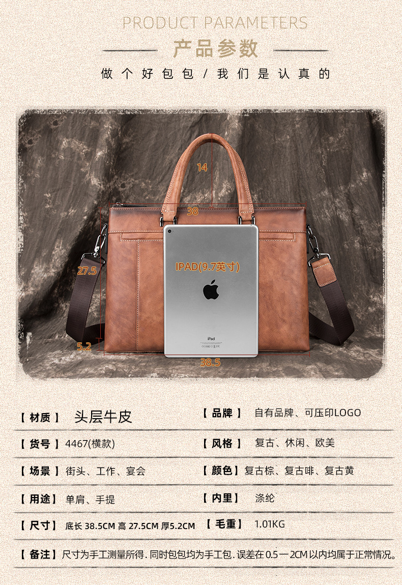 Chiếc túi này mang phong cách hoài cổ, được làm từ chất liệu da bò mềm mại và bền chắc. Thiết kế dáng túi công sở lịch sự, có qu đeo chéo và qu xách tay linh hoạt, phù hợp cho nhiều hoàn cảnh sử dụng. Bạn có thể mang đi làm, đi gặp đối tác hay dùng trong các chuyến du lịch ngắn ngày. Sản phẩm có nhiều ngăn tiện lợi để đựp máy tính, tài liệu và các vật dụng cá nhân khác một cách gọn gàng. | Tên sản phẩm: Túi Xách Nam Chất Liệu Da Bò Phục Cổ Cổ Điển - Túi Xách Ví Nam | Mã sản phẩm: A4185 - Giá: 1.900.000đ | Mã nhà sản xuất: GUDNG-G05Hình ảnh sản phẩm