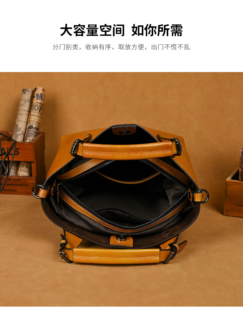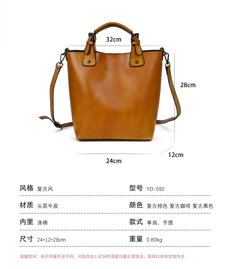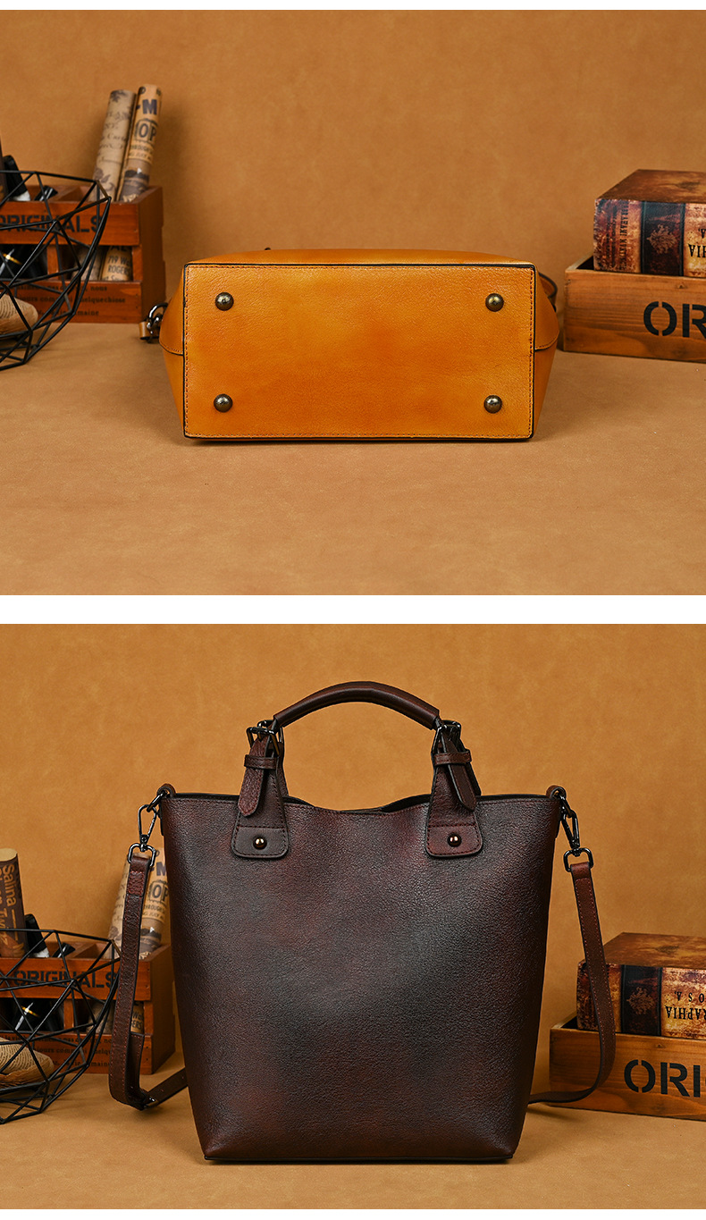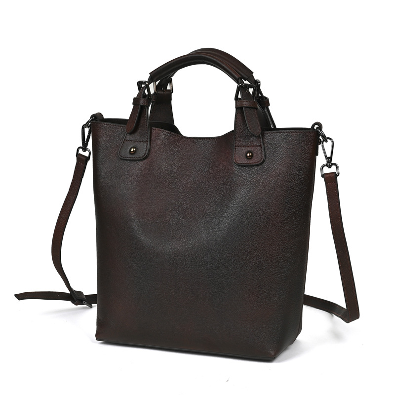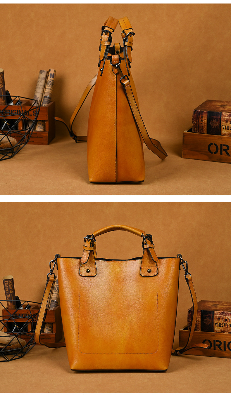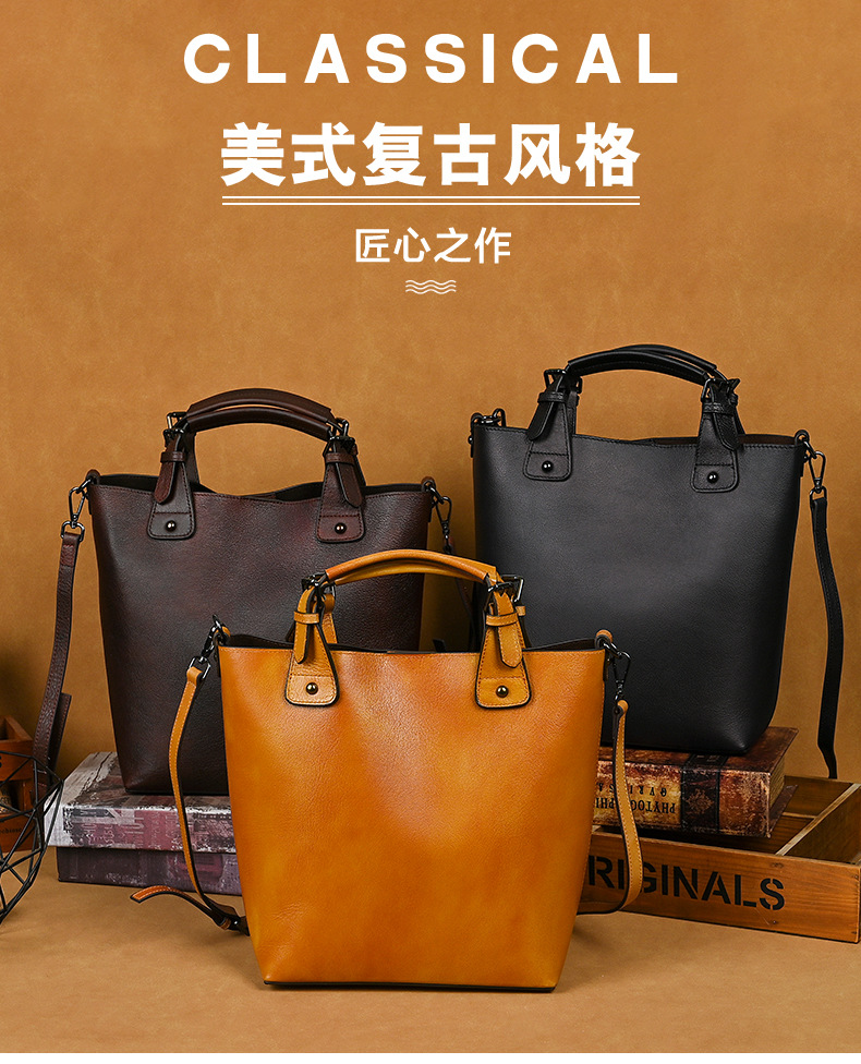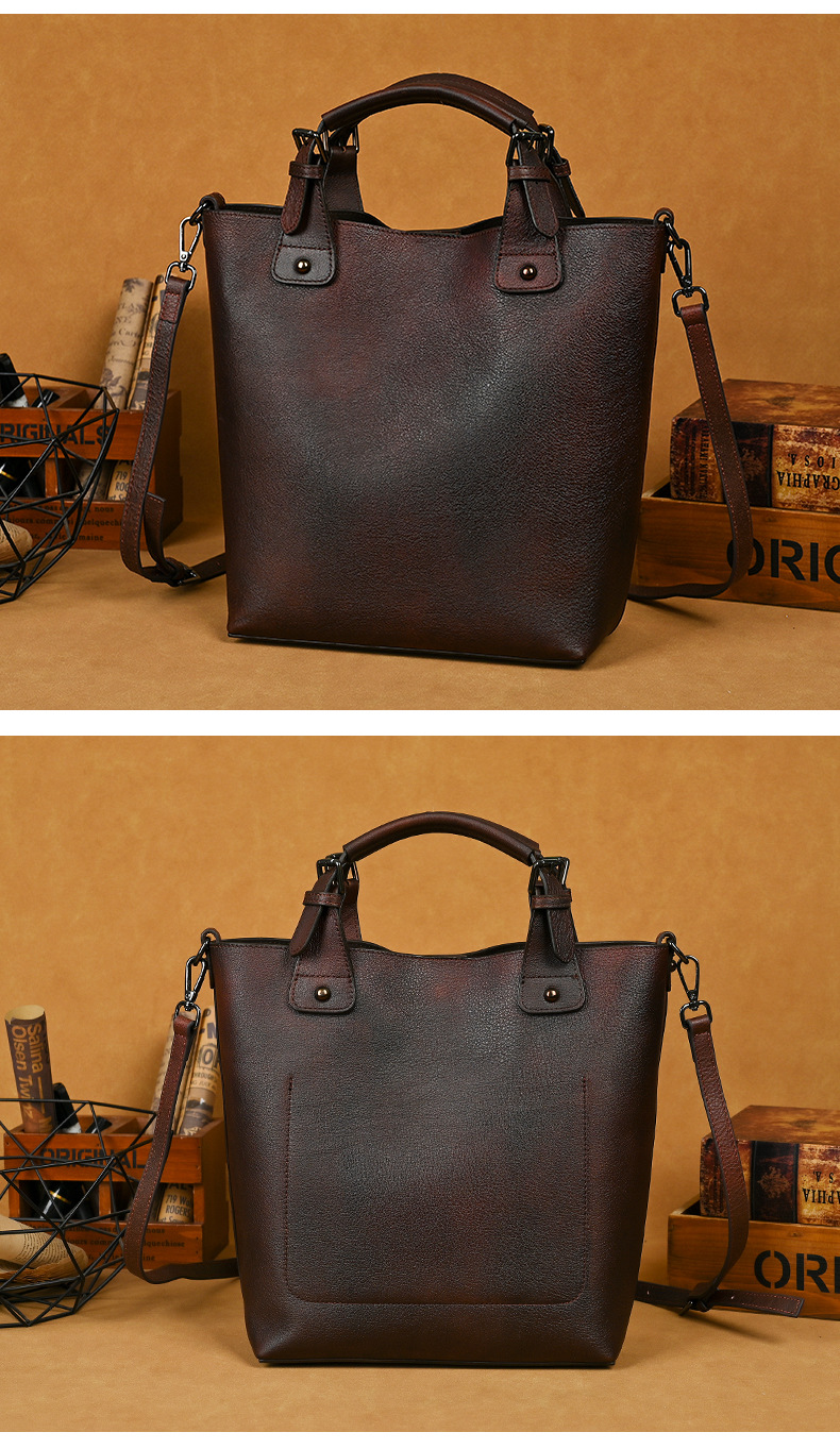 Túi xách kiểu dáng thùng nước, được làm từ chất liệu da thật với kỹ thuật đánh màu thủ công tạo vẻ cổ điển. Thiết kế này có sức chứa lớn, rất phù hợp cho việc mang đi làm hàng ngày. Dây đeo có thể điều chỉnh linh hoạt, giúp bạn đeo trên v một cách thoải mái. Sản phẩm kết hợp tiện ích và phong cách, dễ dàng phối cùng nhiều trang phục khác nhau trong đời sống. | Tên sản phẩm: Túi Xách Nữ Chất Liệu Da Bò Phục Cổ Cổ Điển - Túi Ví Nữ | Mã sản phẩm: A4217 - Giá: 2.290.000đ | Mã nhà sản xuất: GUDNG-G05Hình ảnh sản phẩm