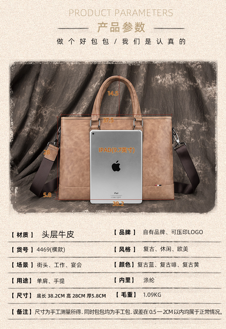 Chiếc cặp nam này làm từ chất liệu da thật, mang đến vẻ ngoại hình lịch sự phù hợp cho công việc. Kiểu dáng cổ điển kết hợp cùng khả năng sử dụng linh hoạt, có thể đeo v hoặc mang tay tùy thích. Bên trong rộng rãi, giúp sắp xếp giấy tờ, máy tính và các vật dụng cá nhân một cách gọn gàng. Sản phẩm phù hợp để sử dụng hằng ngày khi đi làm hoặc trong những dịp cần đến. | Tên sản phẩm: Túi Xách Nam Chất Liệu Da Bò Phục Cổ Cổ Điển - Túi Xách Ví Nam | Mã sản phẩm: A4221 - Giá: 1.900.000đ | Mã nhà sản xuất: GUDNG-G05Hình ảnh sản phẩm