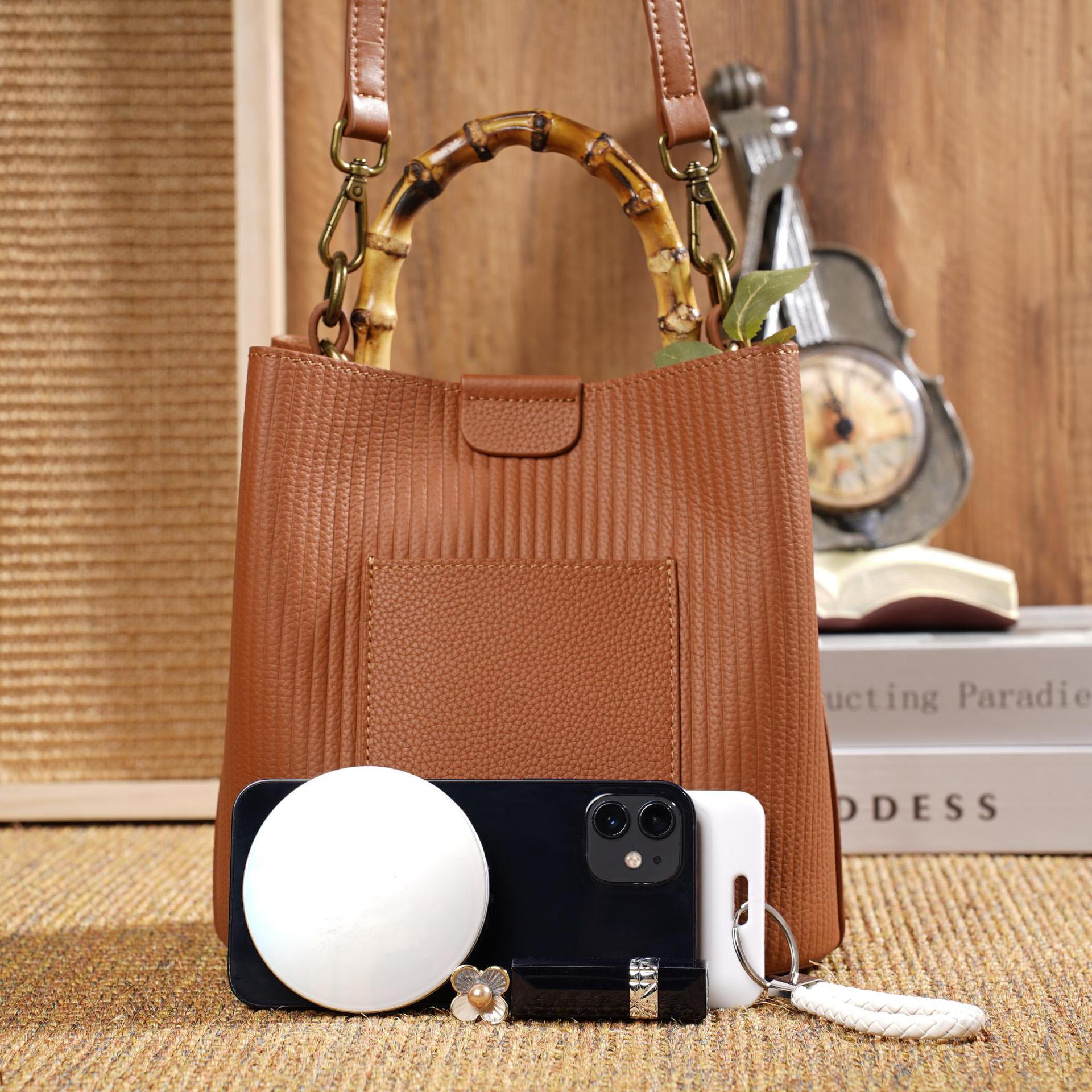 Chiếc túi xách tay dành cho nữ có kiểu dáng thùng tre độc đáo, dễ dàng phối hợp với nhiều trang phục thường ngày. Sản phẩm được làm từ chất liệu da thật, bền đẹp theo thời gian. Qu đeo v và tay cầm thiết kế linh hoạt, giúp bạn mang theo một cách thoải mái. Đây là mẫu túi phù hợp cho các dịp đi chơi, đi làm hay dạo phố. Bạn có thể dùng để đựng ví, điện thoại và các vật dụng cá nhân cần thiết khác. | Tên sản phẩm: Túi Xách Nữ Chất Liệu Da Bò Hàng Mùa Hè - Túi Ví Nữ | Mã sản phẩm: A4286 - Giá: 1.280.000đ | Mã nhà sản xuất: GUDAT-G04Hình ảnh sản phẩm