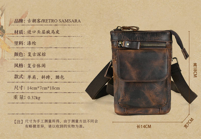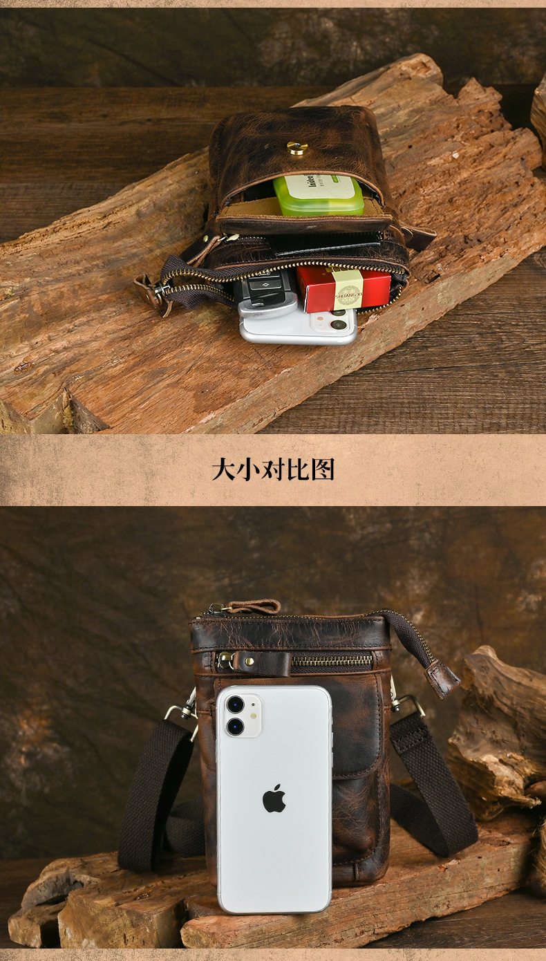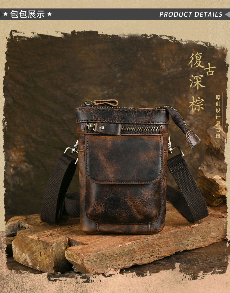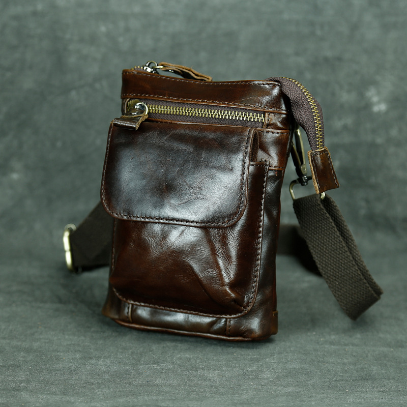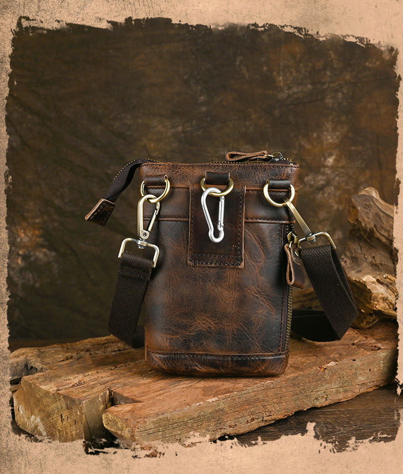 Túi đeo chéo này mang phong cách cổ điển, được làm từ chất da bò nguyên miếng có vân tự nhiên và độ bền cao. Thiết kế nhỏ gọn chứa vừa điện thoại bảy inch, có móc để gắn vào thắt lưng hoặc mang chéo tùy thích. Nhiều ngăn tiện lợi giúp bạn sắp xếp đồ dùng cá nhân gọn gàng khi ra ngoài hoặc tham gia hoạt động ngoài trời. Chỉ cần đeo túi qua v hoặc móc cố định vào dây lưng là có thể sử dụng ngay. | Tên sản phẩm: Túi Xách Nam Phục Cổ Cổ Điển - Túi Xách Ví Nam | Mã sản phẩm: A4373 - Giá: 610.000đ | Mã nhà sản xuất: GUDEA-G02Hình ảnh sản phẩm