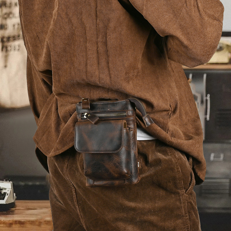 Chiếc túi đeo hông này được làm từ chất da bò mềm mại, có vân tự nhiên và càng đẹp hơn khi sử dụng. Phong cách thiết kế mang hơi hướng xưa cũ, phù hợp cho các hoạt động ngoài trời. Túi chính đựng vừa điện thoại cỡ lớn, có thêm ngăn phụ tiện lợi và móc để xỏ thắt lưng. Bạn có thể đeo túi hờ hông hoặc dùng dây đeo chéo qua người một cách thoải mái. | Tên sản phẩm: Túi Xách Nam Phục Cổ Cổ Điển - Túi Xách Ví Nam | Mã sản phẩm: A4394 - Giá: 610.000đ | Mã nhà sản xuất: GUDEA-G02Hình ảnh sản phẩm