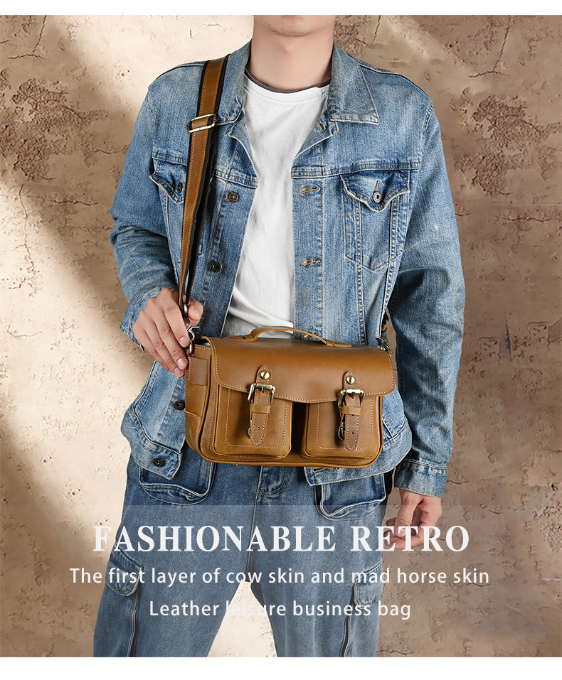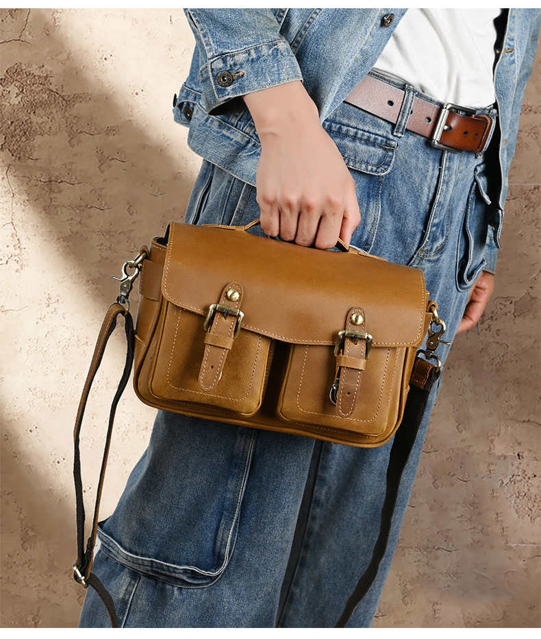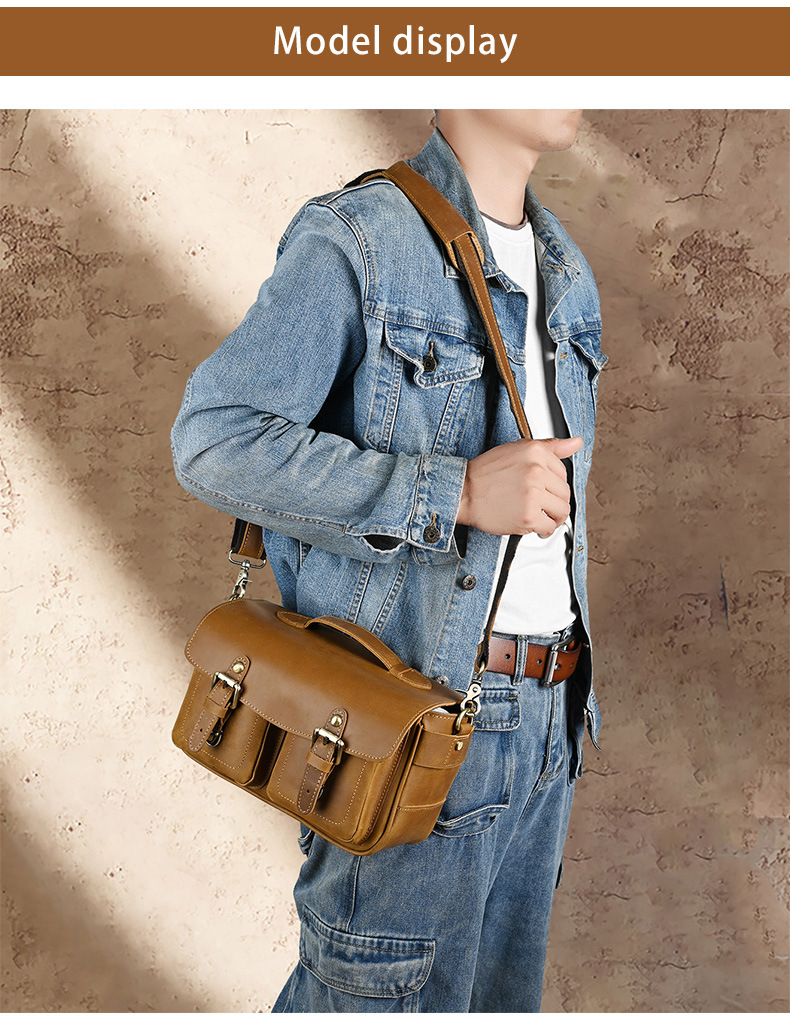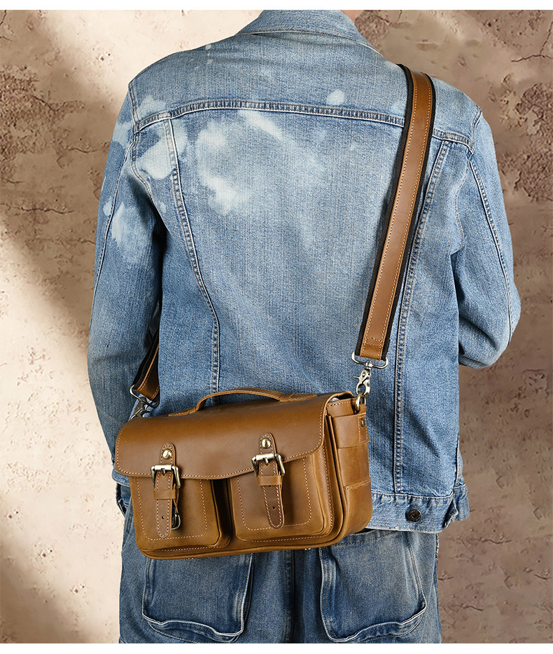 Chiếc túi đeo chéo này được làm từ chất da bò thật, có bề mặt vân tự nhiên tạo vẻ đẹp mộc mạc. Kiểu dáng cổ điển phù hợp cho các chuyến đi chơi thường ngày. Túi có nhiều ngăn rộng rãi, thuận tiện để bảo vệ máy ảnh và các món đồ cá nhân khác. Bạn có thể đeo vắt qua v một cách thoải mái. Sản phẩm được làm thủ công tỉ mỉ, phù hợp với những yêu thích phong cách đơn giản mà vẫn khỏe khoắn. | Tên sản phẩm: Túi Xách Nam Chất Liệu Da Bò Phục Cổ Cổ Điển - Túi Xách Ví Nam | Mã sản phẩm: A4415 - Giá: 1.680.000đ | Mã nhà sản xuất: GUDEA-G05Hình ảnh sản phẩm