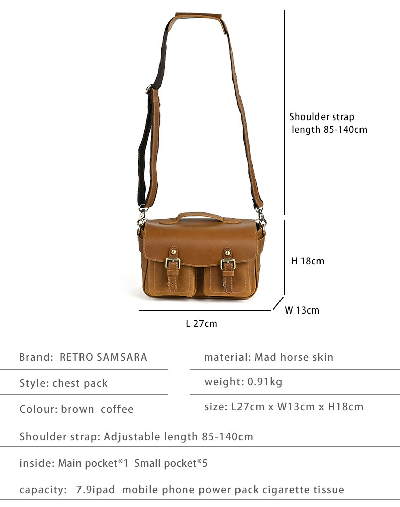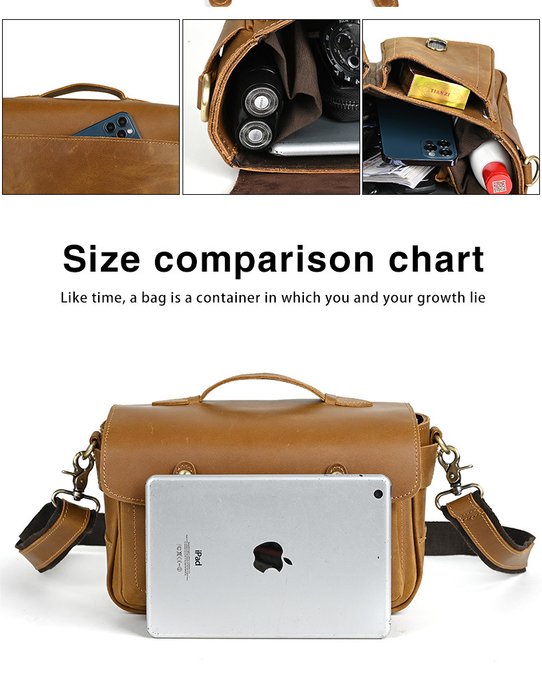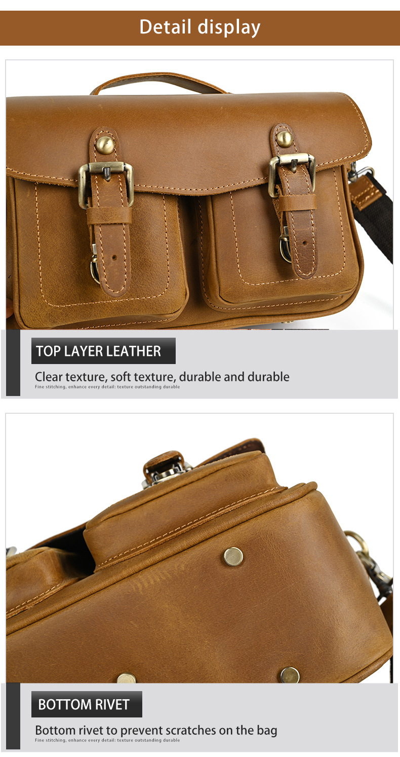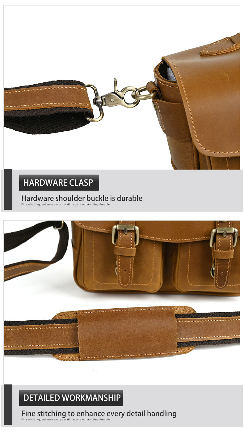 Chiếc túi đeo chéo này được làm từ chất da bò thật, có bề mặt vân tự nhiên tạo vẻ đẹp mộc mạc. Kiểu dáng cổ điển phù hợp cho các chuyến đi chơi thường ngày. Túi có nhiều ngăn rộng rãi, thuận tiện để bảo vệ máy ảnh và các món đồ cá nhân khác. Bạn có thể đeo vắt qua v một cách thoải mái. Sản phẩm được làm thủ công tỉ mỉ, phù hợp với những yêu thích phong cách đơn giản mà vẫn khỏe khoắn. | Tên sản phẩm: Túi Xách Nam Chất Liệu Da Bò Phục Cổ Cổ Điển - Túi Xách Ví Nam | Mã sản phẩm: A4415 - Giá: 1.680.000đ | Mã nhà sản xuất: GUDEA-G05Hình ảnh sản phẩm