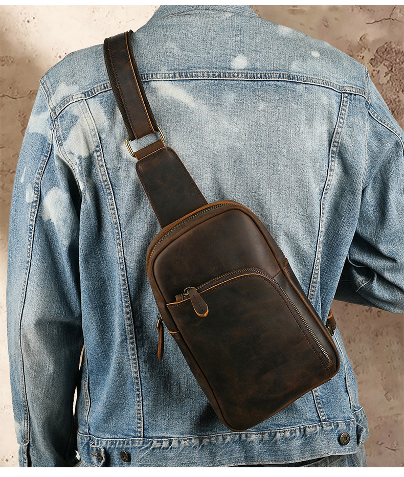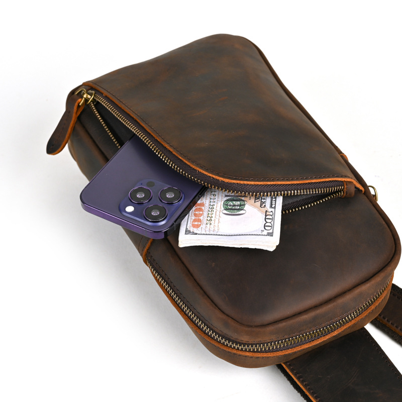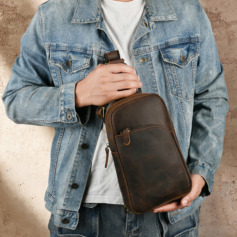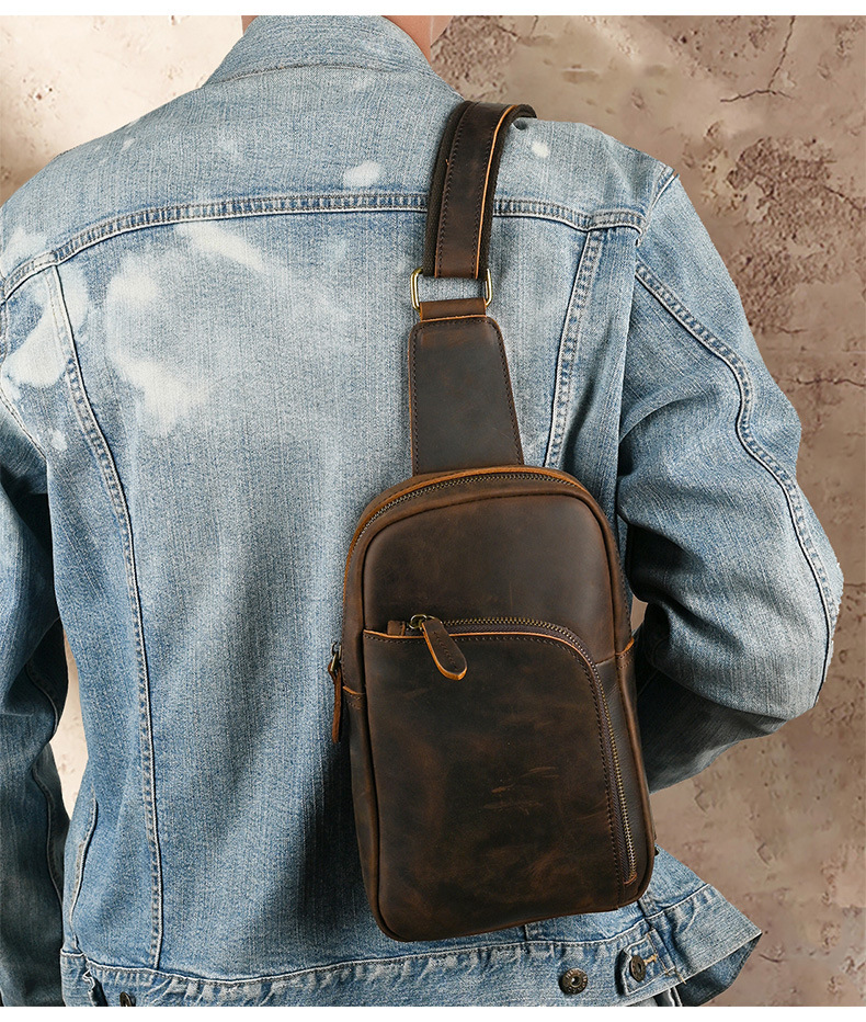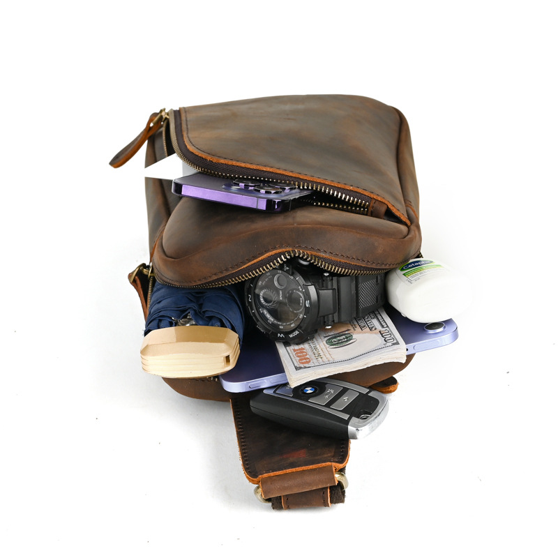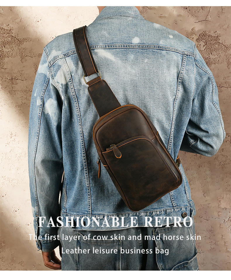 Chiếc túi ngực dành cho nam giới này mang phong cách hoài cổ với chất liệu da bò thật tự nhiên. Bề mặt da có vân mềm mại, tạo vẻ trông đã qua sử dụng một cách nghệ thuật. Thiết kế ba ngăn tiện lợi, đựp vừa máy tính bảng cỡ nhỏ, điện thoại và các vật dụng cá nhân khác. Dây đeo có thể điều chỉnh linh hoạt, mang theo bên mình một cách thoải mái. Phù hợp cho những lúc đi chơi, dạo phố hoặc trong các sinh hoạt hằng ngày. | Tên sản phẩm: Túi Xách Nam Chất Liệu Da Bò Phục Cổ Cổ Điển - Túi Xách Ví Nam | Mã sản phẩm: A4430 - Giá: 1.250.000đ | Mã nhà sản xuất: GUDEA-G04Hình ảnh sản phẩm