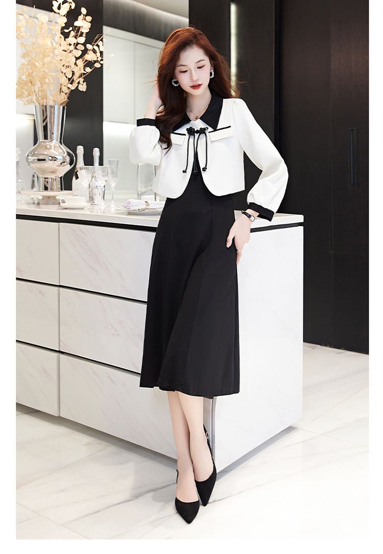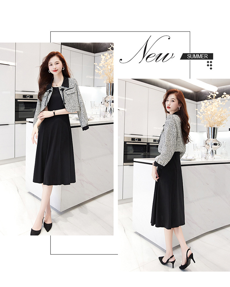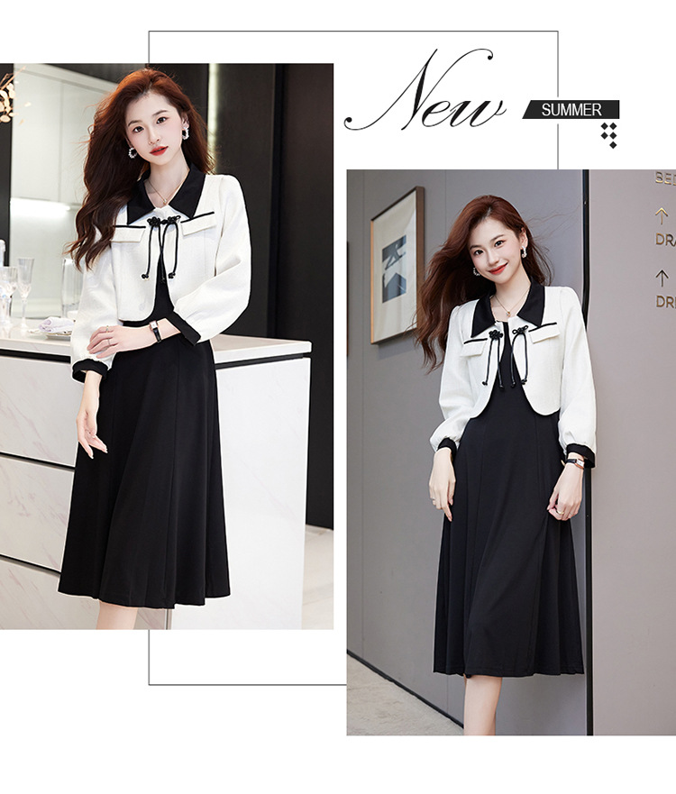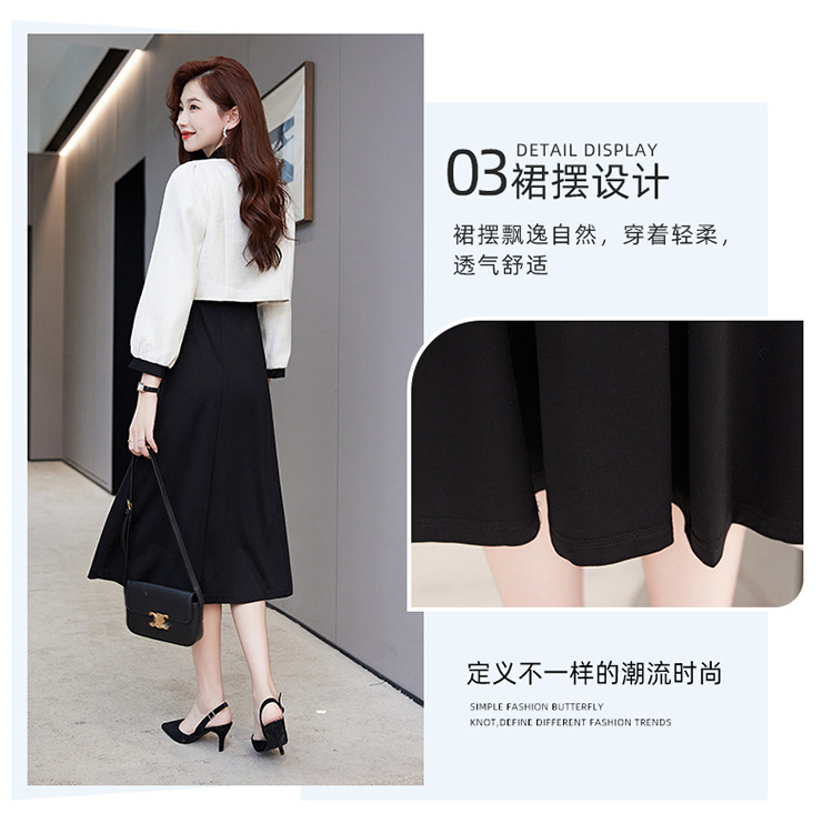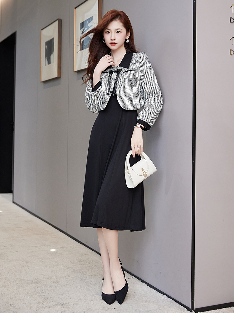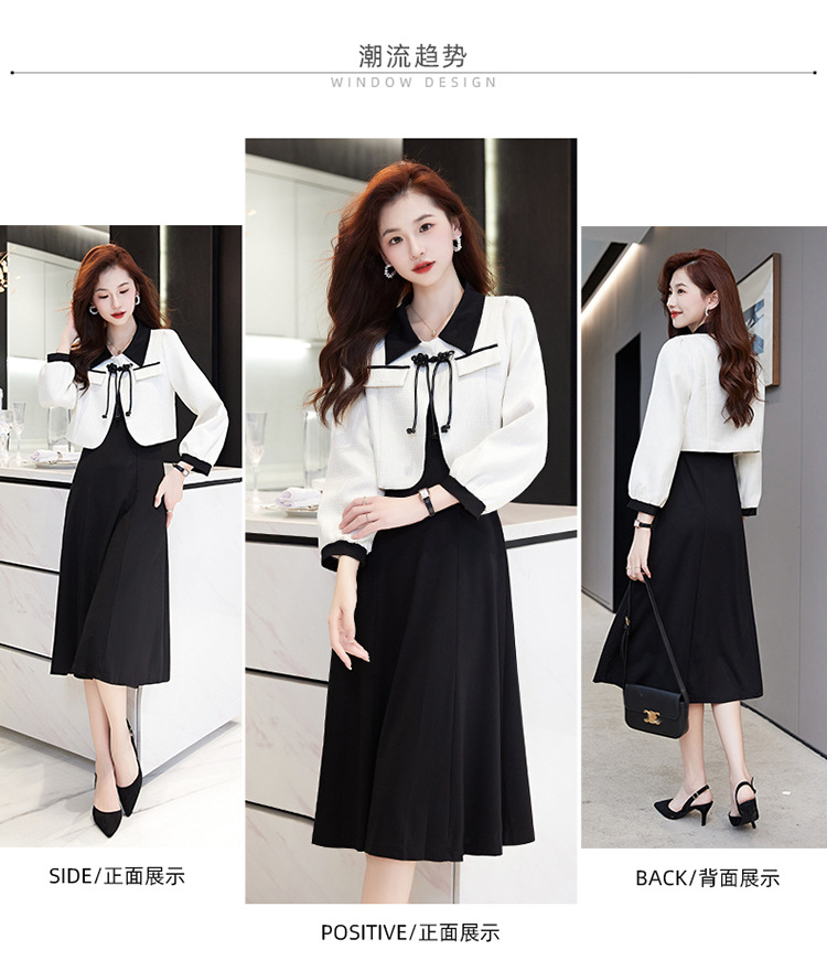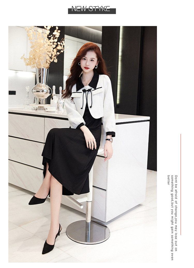 Bộ trang phục hai mảnh này gồm áo khoác ngắn và đầm liền, có kiểu dáng trẻ trung và năng động. Điểm nhấn nổi bật là sự kết hợp màu sắc tương phản và đường nét ghép mảnh tinh tế trên áo. Áo khoác mỏng nhẹ mặc ngoài, phối cùng đầm ôm cơ thể một cách thanh lịch. Có thể mặc bộ này đi làm, đi chơi hay dự tiệc nhẹ đều phù hợp. Chất vải co giãn nhẹ, tạo cảm giác dễ chịu khi mặc cả ngày. | Tên sản phẩm: Áo Khoác Nữ Cả Bộ 2 Món Hàng Mùa Xuân Thu Đông - Thời Trang Nữ | Mã sản phẩm: a4436 - Giá: 1.680.000đ | Mã nhà sản xuất: HADG-G05Hình ảnh sản phẩm