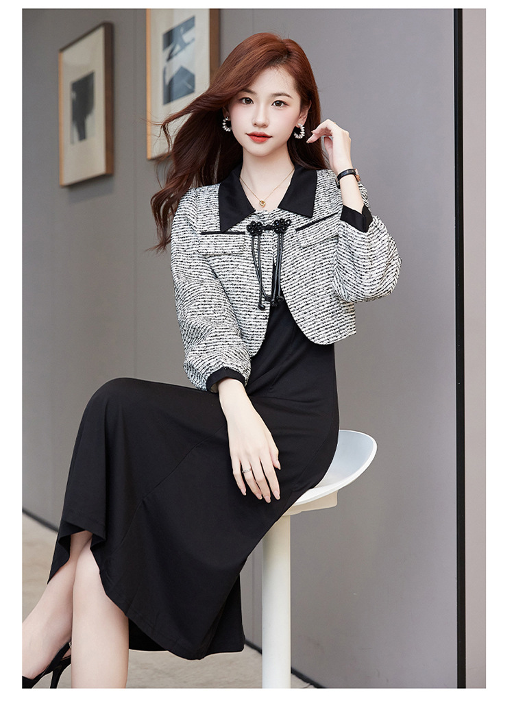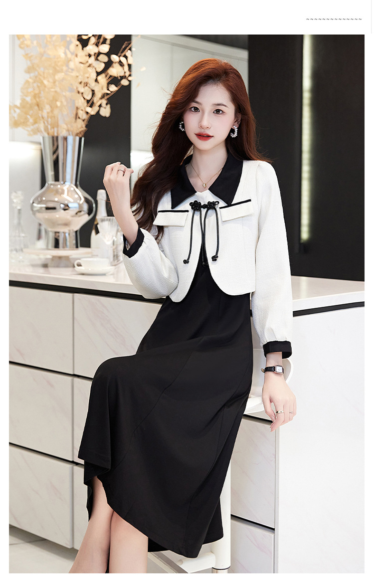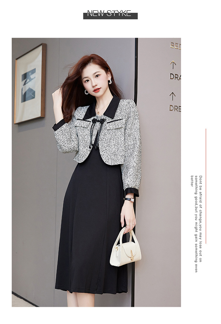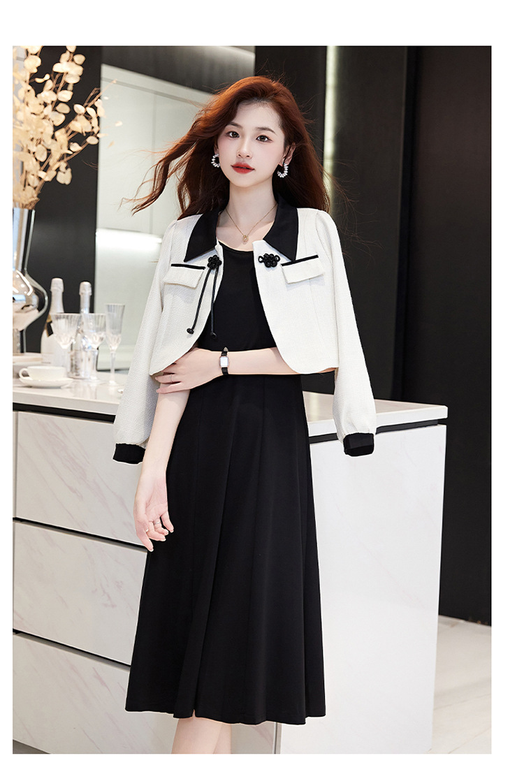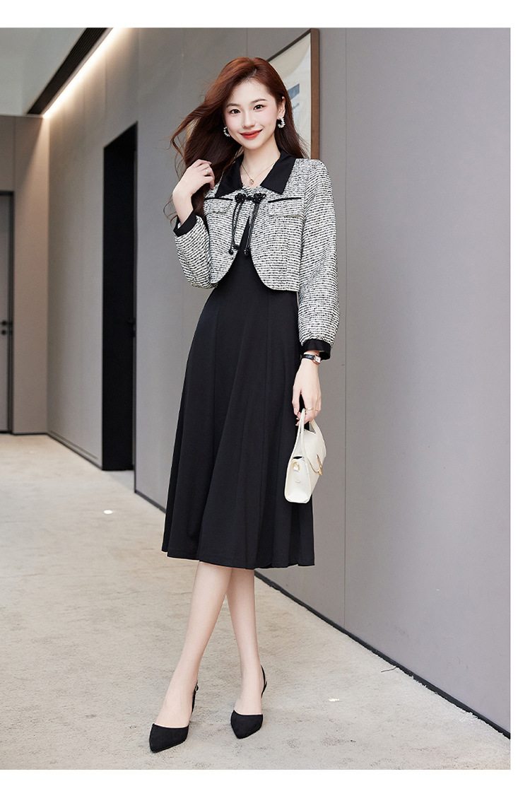 Bộ trang phục hai mảnh này gồm áo khoác ngắn và đầm liền, có kiểu dáng trẻ trung và năng động. Điểm nhấn nổi bật là sự kết hợp màu sắc tương phản và đường nét ghép mảnh tinh tế trên áo. Áo khoác mỏng nhẹ mặc ngoài, phối cùng đầm ôm cơ thể một cách thanh lịch. Có thể mặc bộ này đi làm, đi chơi hay dự tiệc nhẹ đều phù hợp. Chất vải co giãn nhẹ, tạo cảm giác dễ chịu khi mặc cả ngày. | Tên sản phẩm: Áo Khoác Nữ Cả Bộ 2 Món Hàng Mùa Xuân Thu Đông - Thời Trang Nữ | Mã sản phẩm: a4436 - Giá: 1.680.000đ | Mã nhà sản xuất: HADG-G05Hình ảnh sản phẩm