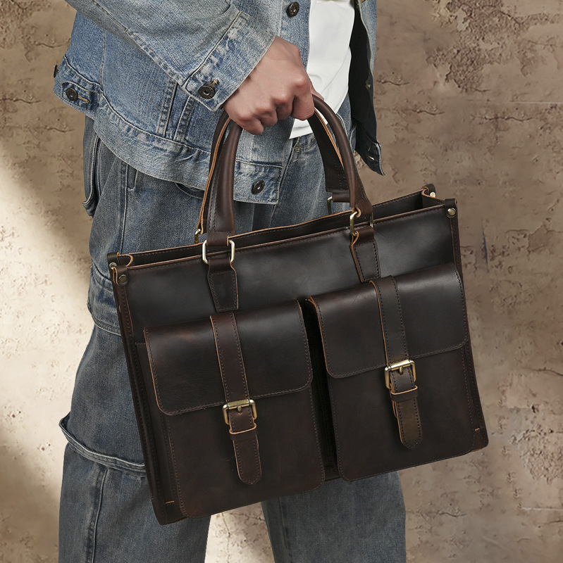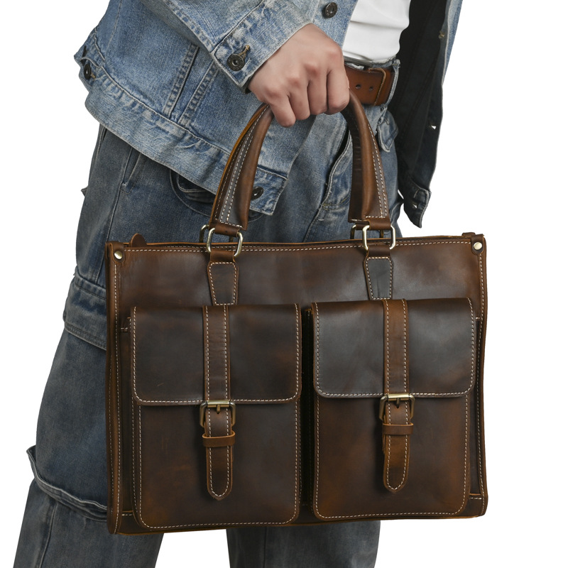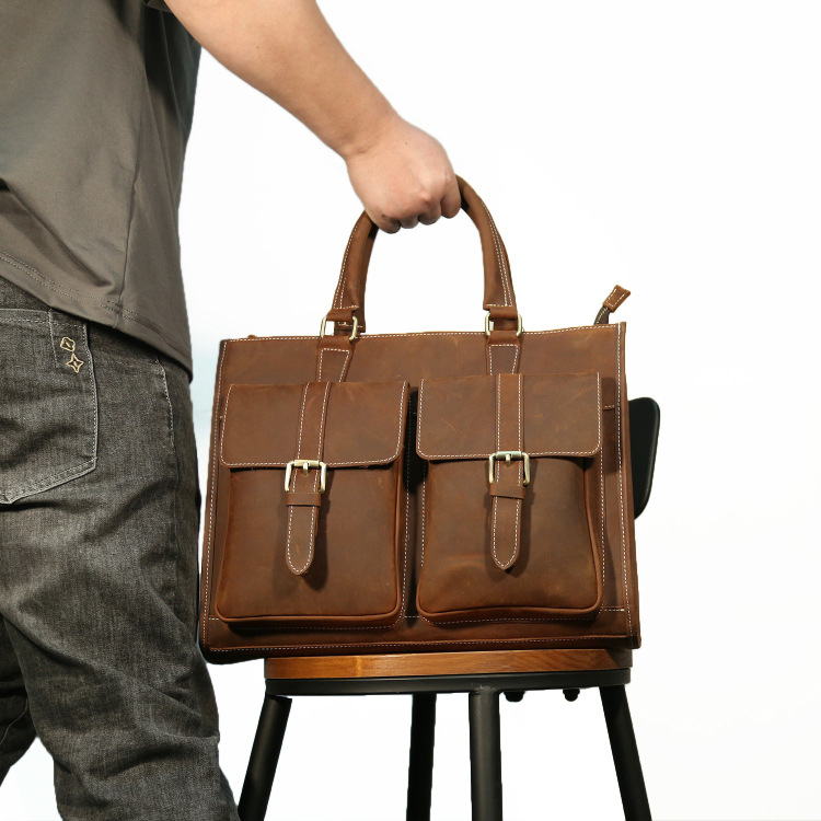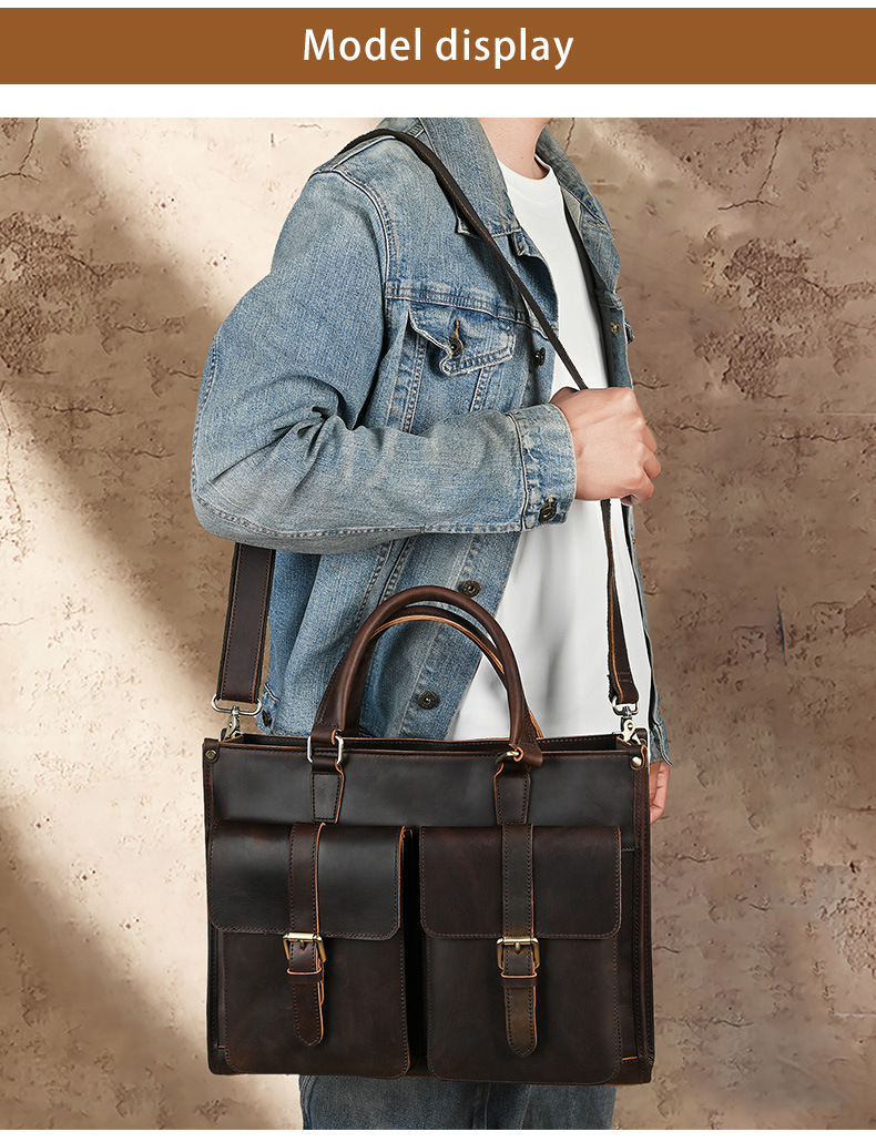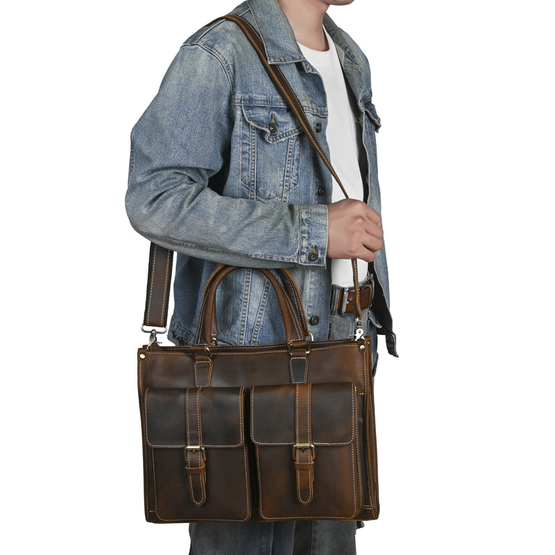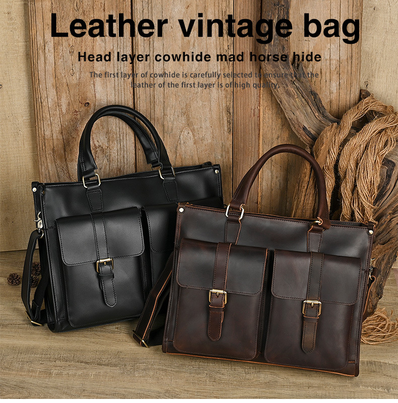 Chiếc túi xách tay nam này được làm thủ công từ chất liệu da bò mềm mại, có vẻ ngoài cổ điển với những đường vân tự nhiên đầy ấn tượng. Kiểu dáng hình hộp ngang mang phong cách lịch lãm, phù hợp cho công việc hoặc dạo phố. Bạn có thể xách tay bằng qu cầm hoặc mang vắt v một cách thoải mái. Túi có không gian rộng rãi bên trong để đựp các vật dụng cá nhân cần thiết một cách gọn gàng. | Tên sản phẩm: Túi Xách Nam Chất Liệu Da Bò Phục Cổ Cổ Điển - Túi Xách Ví Nam | Mã sản phẩm: A4444 - Giá: 2.360.000đ | Mã nhà sản xuất: GUDEA-G05Hình ảnh sản phẩm