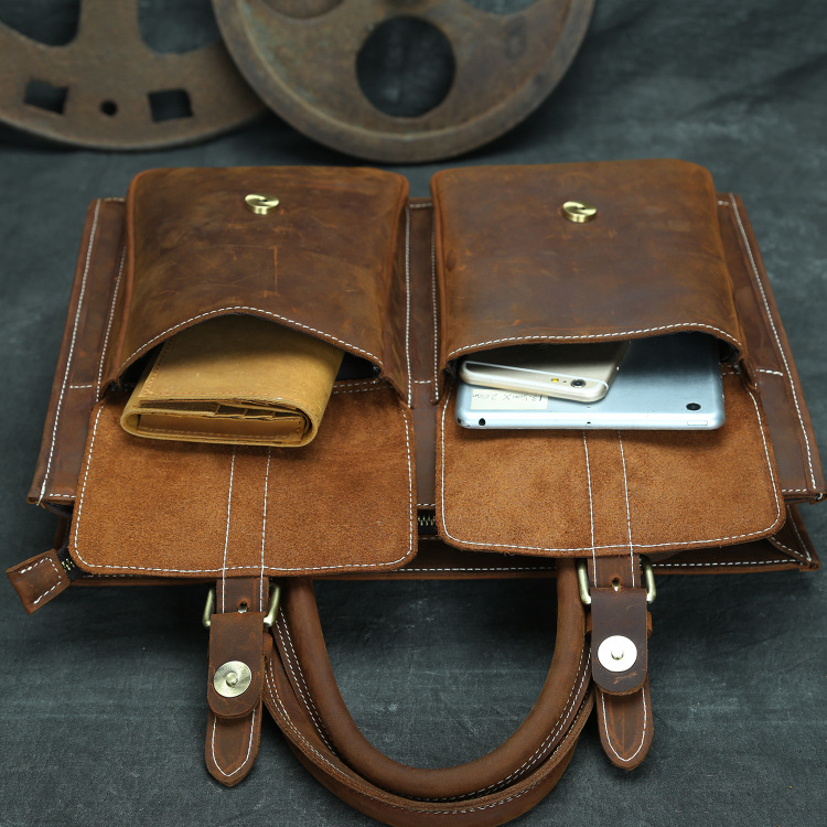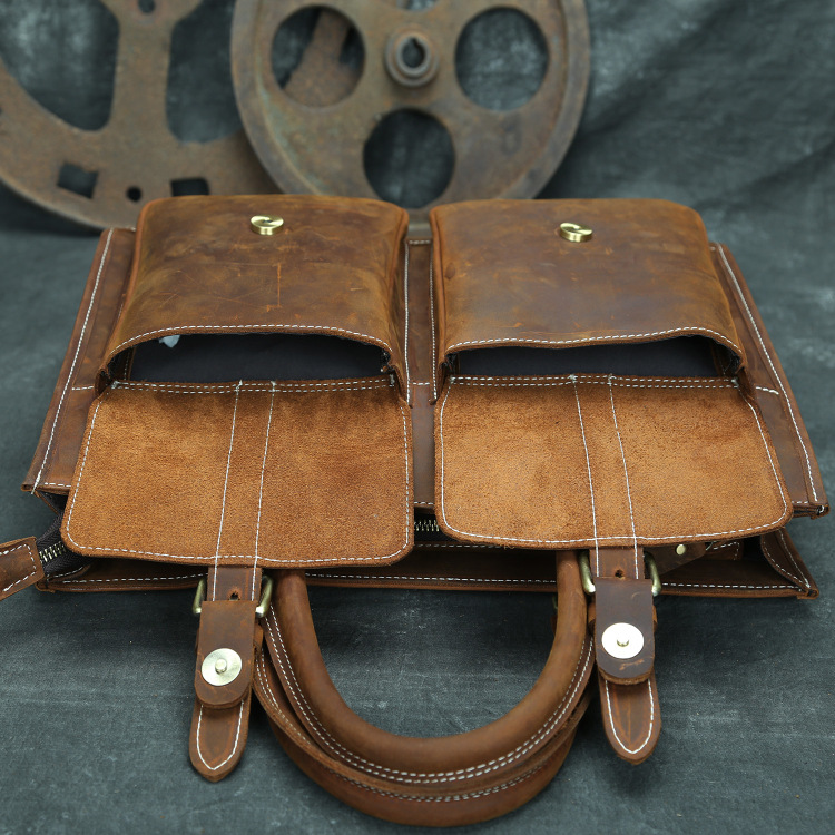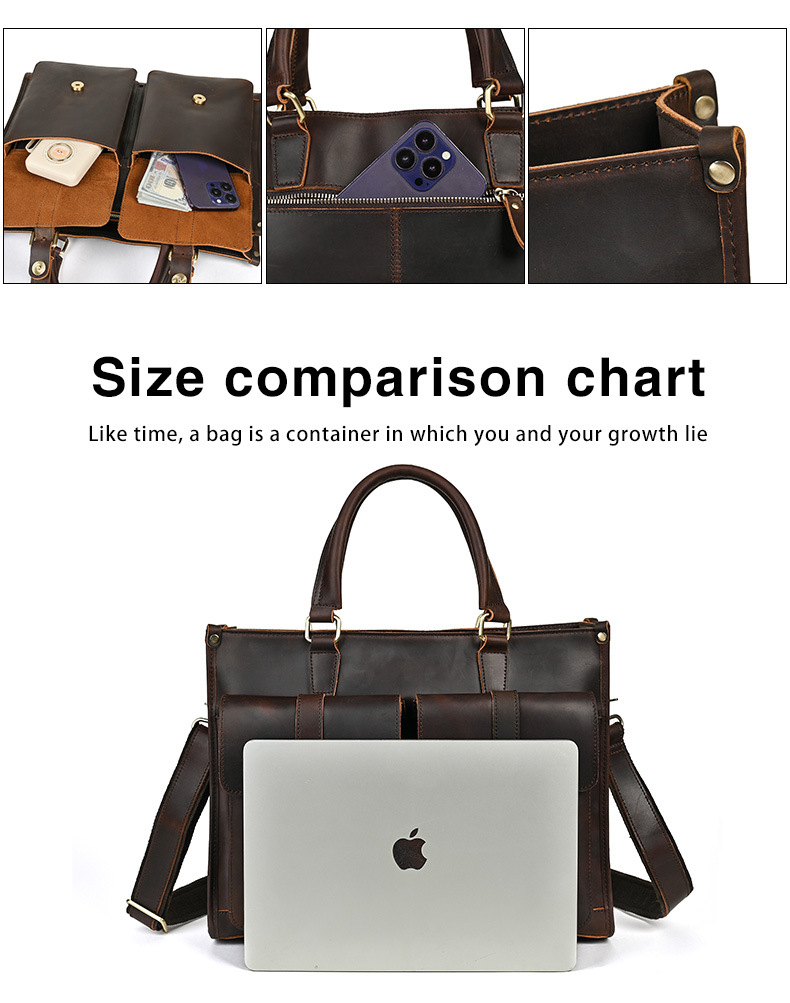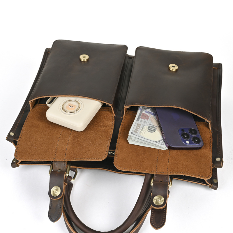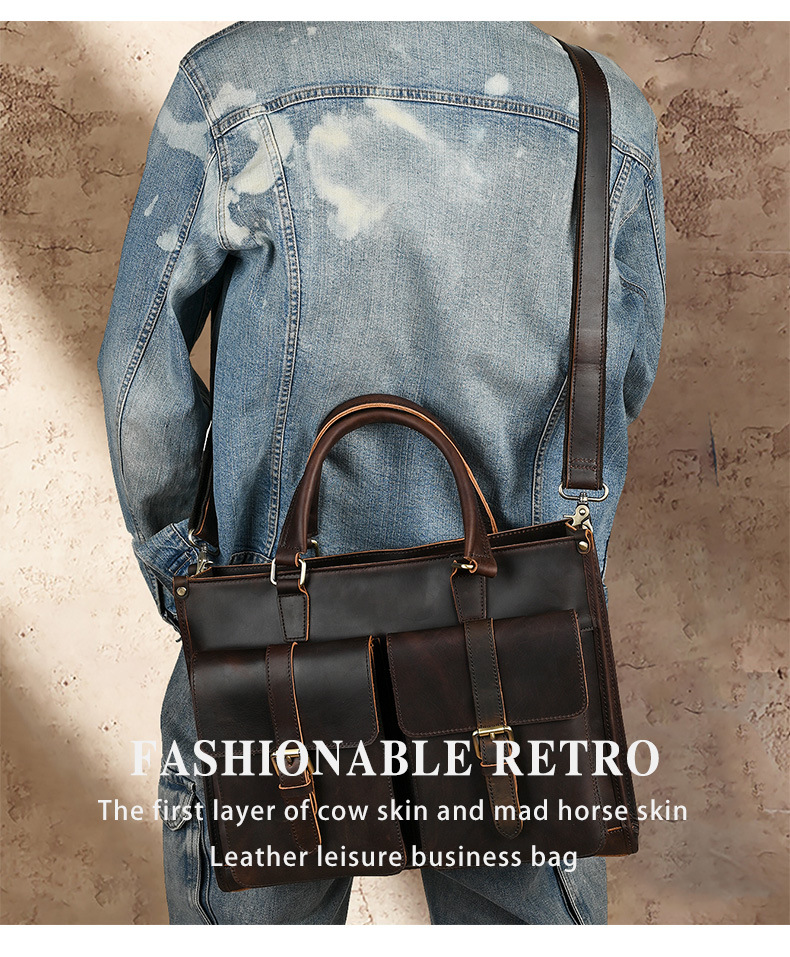 Chiếc túi xách tay nam này được làm thủ công từ chất liệu da bò mềm mại, có vẻ ngoài cổ điển với những đường vân tự nhiên đầy ấn tượng. Kiểu dáng hình hộp ngang mang phong cách lịch lãm, phù hợp cho công việc hoặc dạo phố. Bạn có thể xách tay bằng qu cầm hoặc mang vắt v một cách thoải mái. Túi có không gian rộng rãi bên trong để đựp các vật dụng cá nhân cần thiết một cách gọn gàng. | Tên sản phẩm: Túi Xách Nam Chất Liệu Da Bò Phục Cổ Cổ Điển - Túi Xách Ví Nam | Mã sản phẩm: A4444 - Giá: 2.360.000đ | Mã nhà sản xuất: GUDEA-G05Hình ảnh sản phẩm