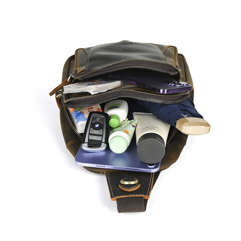 Túi đeo chéo dành cho nam với phong cách cổ điển. Sản phẩm được làm từ chất da bò mềm bền, có bề mặt vân tự nhiên tạo vẻ đậm cá tính. Thiết kế nhiều ngăn rộng rãi giúp đựng vừa điện thoại, ví, chìa khóa và các vật dụng cá nhân khác một cách gọn gàng. Dây đeo có thể điều chỉnh linh hoạt cho cảm giác đeo thoải mái. Rất phù hợp để sử dụng hằng ngày, khi đi chơi hoặc du lịch. | Tên sản phẩm: Túi Xách Nam Chất Liệu Da Bò Phục Cổ Cổ Điển - Túi Xách Ví Nam | Mã sản phẩm: A4498 - Giá: 1.780.000đ | Mã nhà sản xuất: GUDEA-G05Hình ảnh sản phẩm