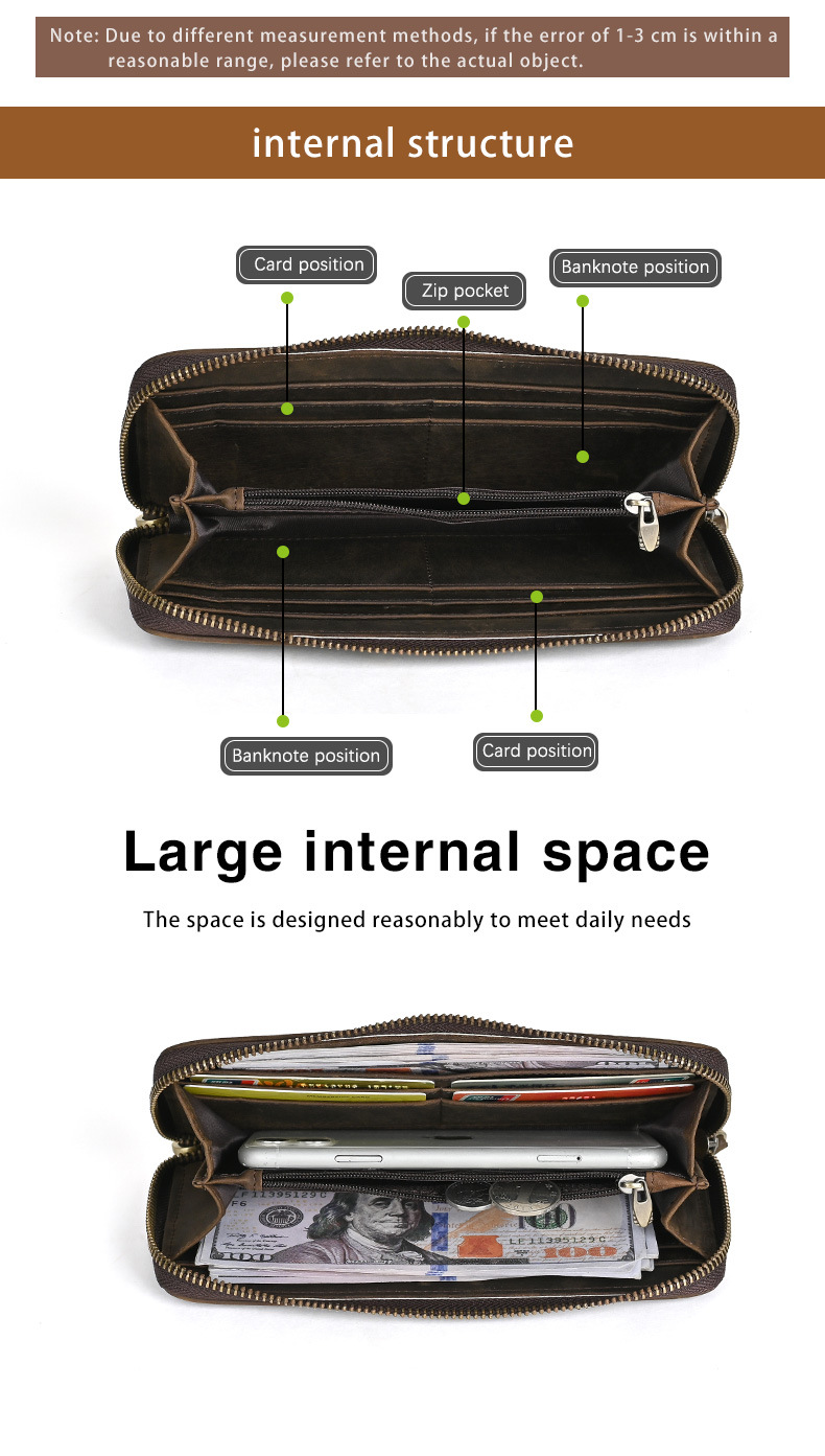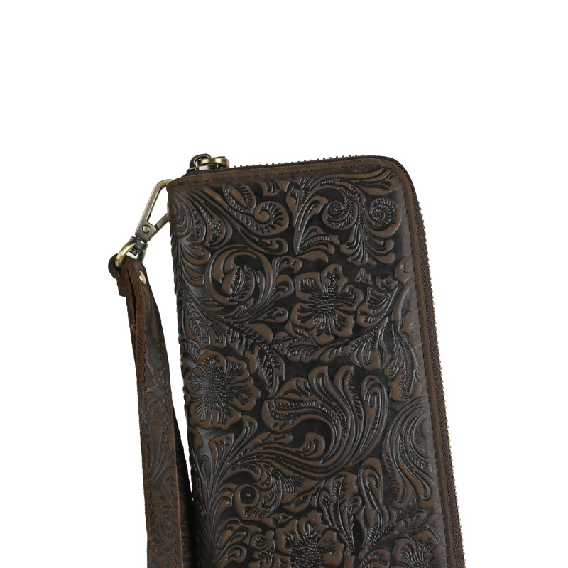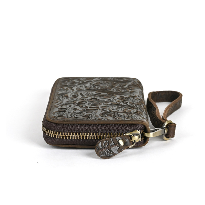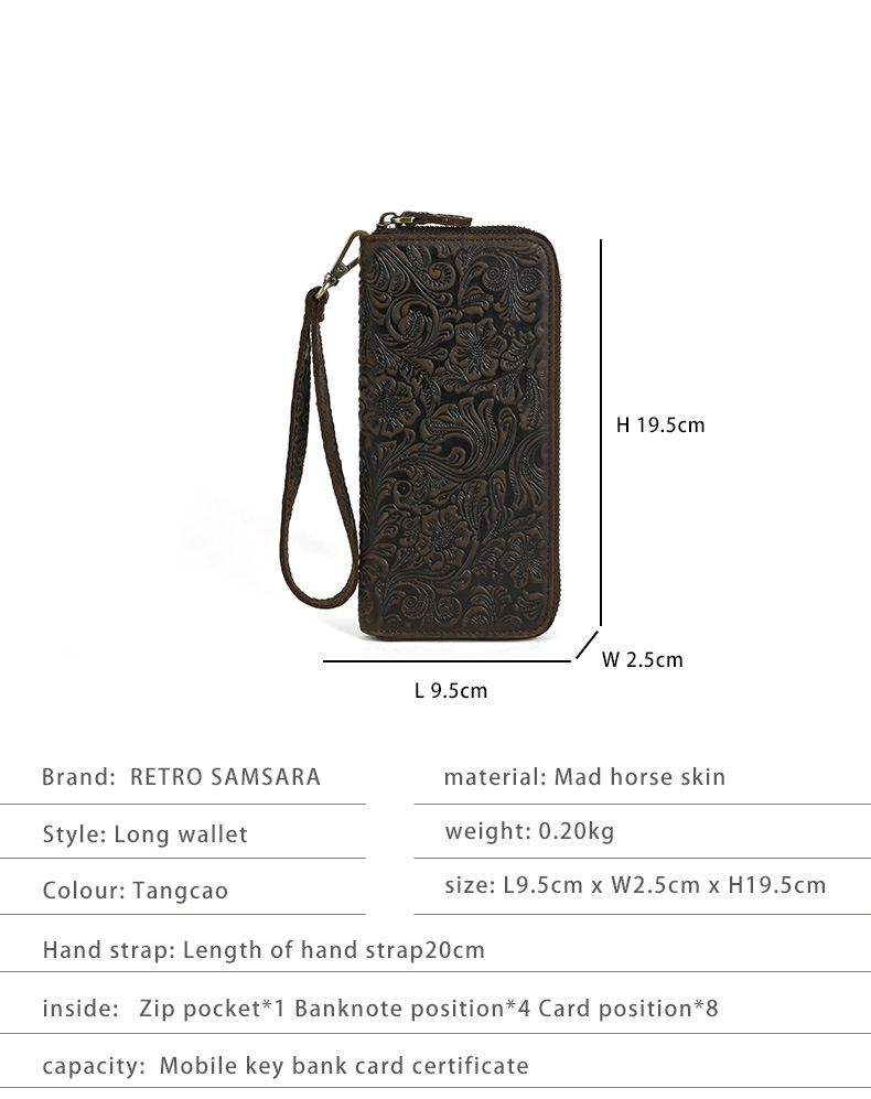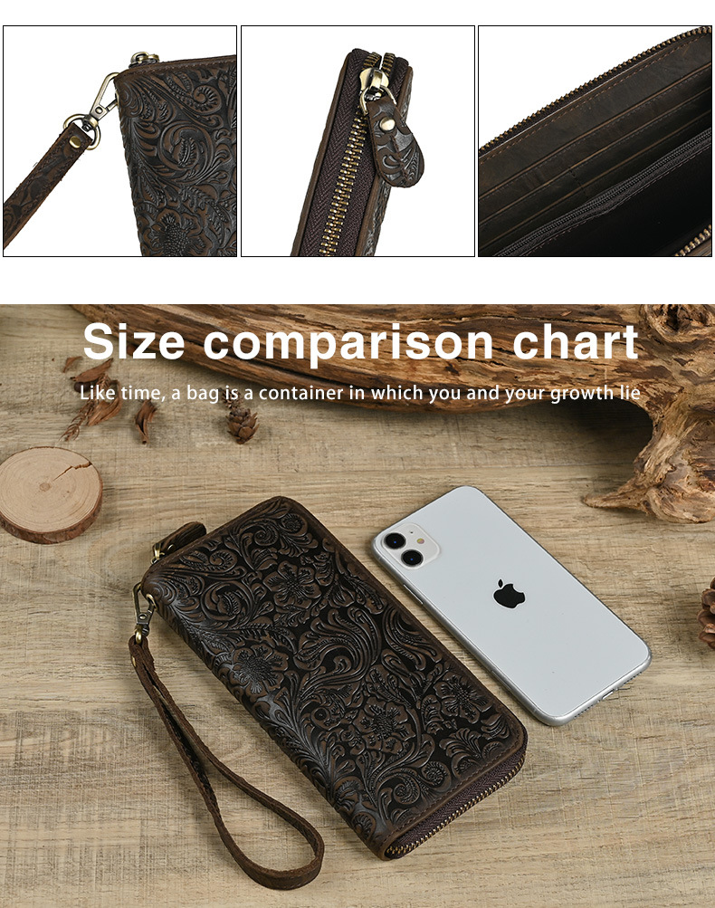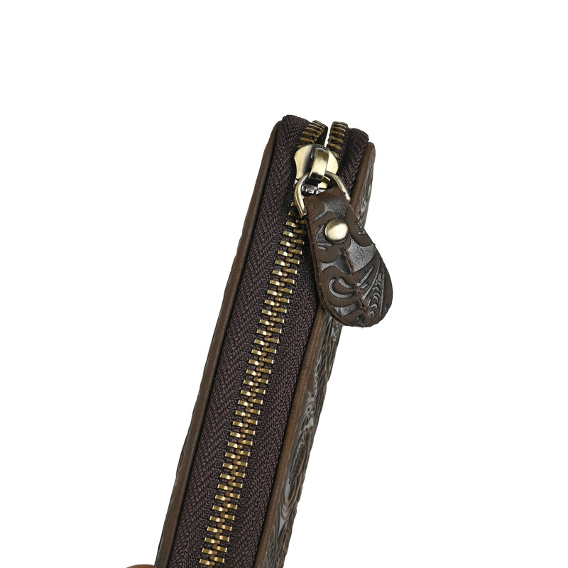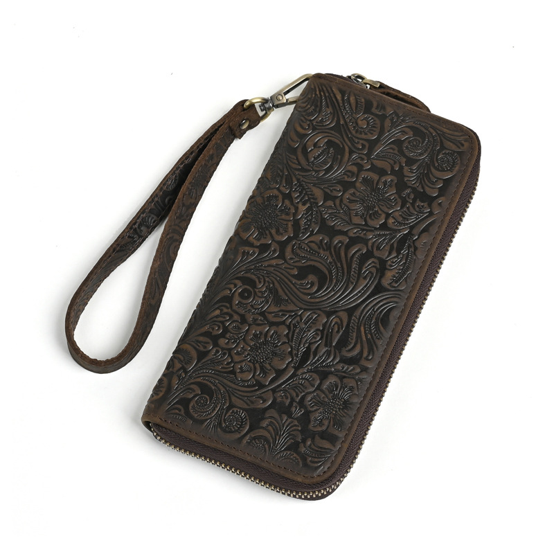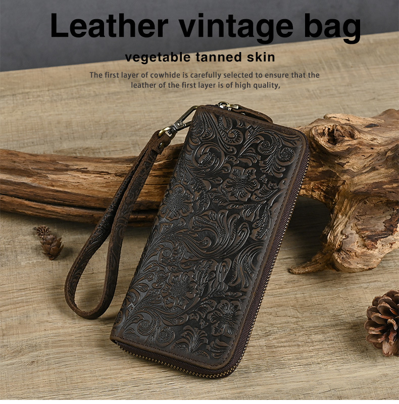 Chiếc bóp dài này mang phong cách hoài cổ với bề mặt da được xử lý tạo vân mềm mại. Sản phẩm có nhiều ngăn đựng thẻ, kèm theo một ngăn lớn khóa kéo tiện dụng. Kiểu dáng nam tính, phù hợp để cầm tay hoặc cho vào túi. Bạn có thể dùng để đựp tiền mặt, các loại thẻ và giấy tờ quan trọng một cách gọn gàng và ngăn nắp. | Tên sản phẩm: Ví Bóp Cầm Tay Nam Họa Tiết Hoa Phục Cổ Cổ Điển - Túi Xách Ví Nam | Mã sản phẩm: A4509 - Giá: 630.000đ | Mã nhà sản xuất: GUDEA-G02Hình ảnh sản phẩm