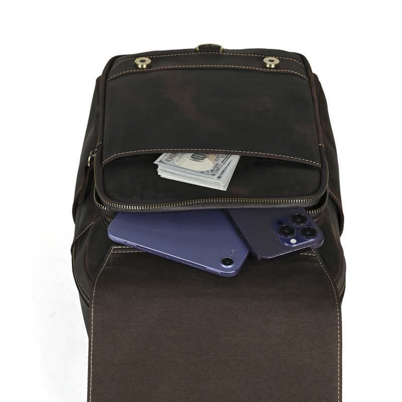 Ba lô làm từ chất da bò tự nhiên, mang phong cách hoài cổ phù hợp cho việc đi làm hoặc di chuyển hằng ngày. Thiết kế có ngăn riêng đựng máy tính, cùng nhiều ngăn nhỏ tiện lợi cho các vật dụng cá nhân. Chất da mềm nhưng bền chắc, tạo vẻ đẹp cổ điển theo thời gian. Sản phẩm dễ dàng sử dụng, đeo thoải mái trên hai v. Thích hợp dùng khi đi làm, đi học hoặc du lịch. | Tên sản phẩm: Túi Đeo Vai Nam Chất Liệu Da Bò Phong Cách Âu Mỹ - Túi Xách Ví Nam | Mã sản phẩm: A4541 - Giá: 2.650.000đ | Mã nhà sản xuất: GUDEA-G06Hình ảnh sản phẩm