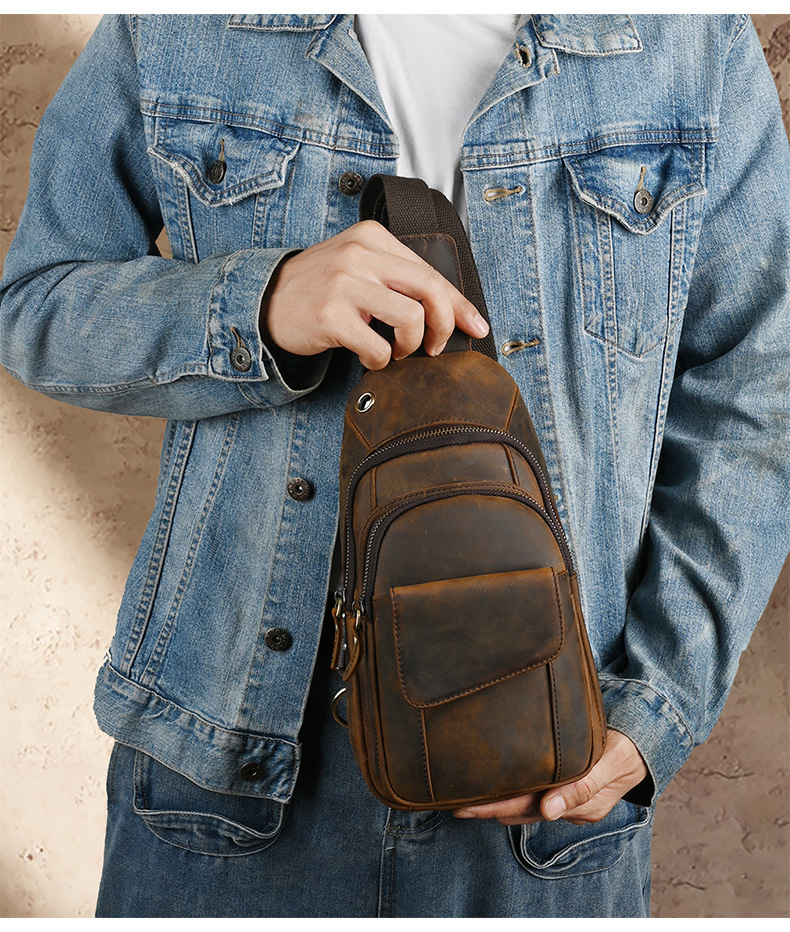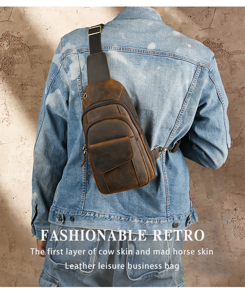 Chiếc túi đeo chéo ngực này mang phong cách hoài cổ, được làm từ chất liệu da bò mềm mại có vân tự nhiên. Túi có kết cấu nhiều ngăn giúp sắp xếp đồ dùng gọn gàng. Dây đeo điều chỉnh linh hoạt để đeo vừa vặn trước ngực hoặc bên hông. Sản phẩm phù hợp cho các hoạt động hằng ngày, dạo phố hay du lịch. Bạn chỉ cần đeo túi, điều chỉnh dây cho thoải mái và sắp xếp đồ vào các ngăn được thiết kế tiện lợi. | Tên sản phẩm: Túi Xách Nam Chất Liệu Da Bò Phục Cổ Cổ Điển - Túi Xách Ví Nam | Mã sản phẩm: A4574 - Giá: 1.280.000đ | Mã nhà sản xuất: GUDEA-G04Hình ảnh sản phẩm