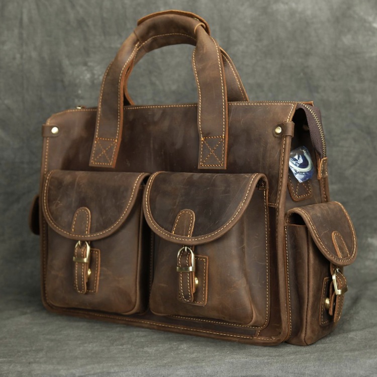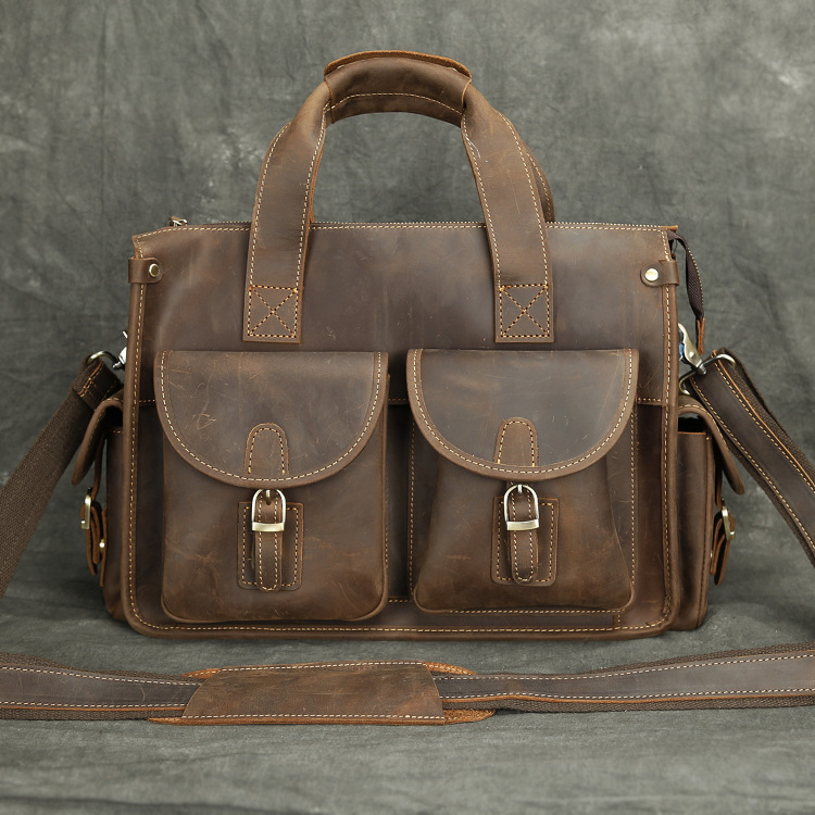Chiếc túi dành cho nam giới, làm từ chất liệu da bò thật tự nhiên với vẻ ngoài cổ điển và dấu vết thời gian đặc trưng. Thiết kế dáng túi đeo chéo và cầm tay linh hoạt, phù hợp cho công việc và sinh hoạt thường ngày. Ngăn rộng rãi bên trong đựp vừa laptop 14 inch cùng các vật dụng cá nhân khác. Sử dụng hàng ngày, giữ gìn bằng cách lau nhẹ với vải khô để giữ nguyên vẻ đẹp của chất liệu. | Tên sản phẩm: Túi Xách Nam Chất Liệu Da Bò Túi Đựng Máy Tính Phục Cổ Cổ Điển - Túi Xách Ví Nam | Mã sản phẩm: A4616 - Giá: 2.500.000đ | Mã nhà sản xuất: GUDEA-G05Hình ảnh sản phẩm