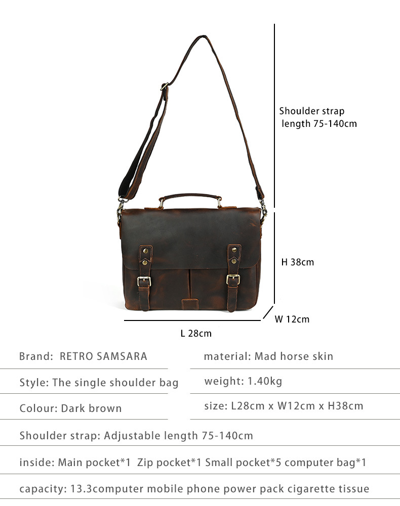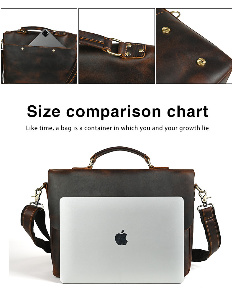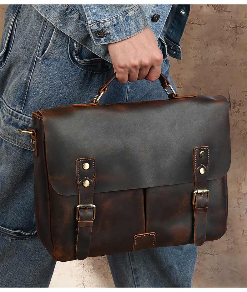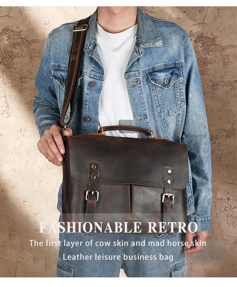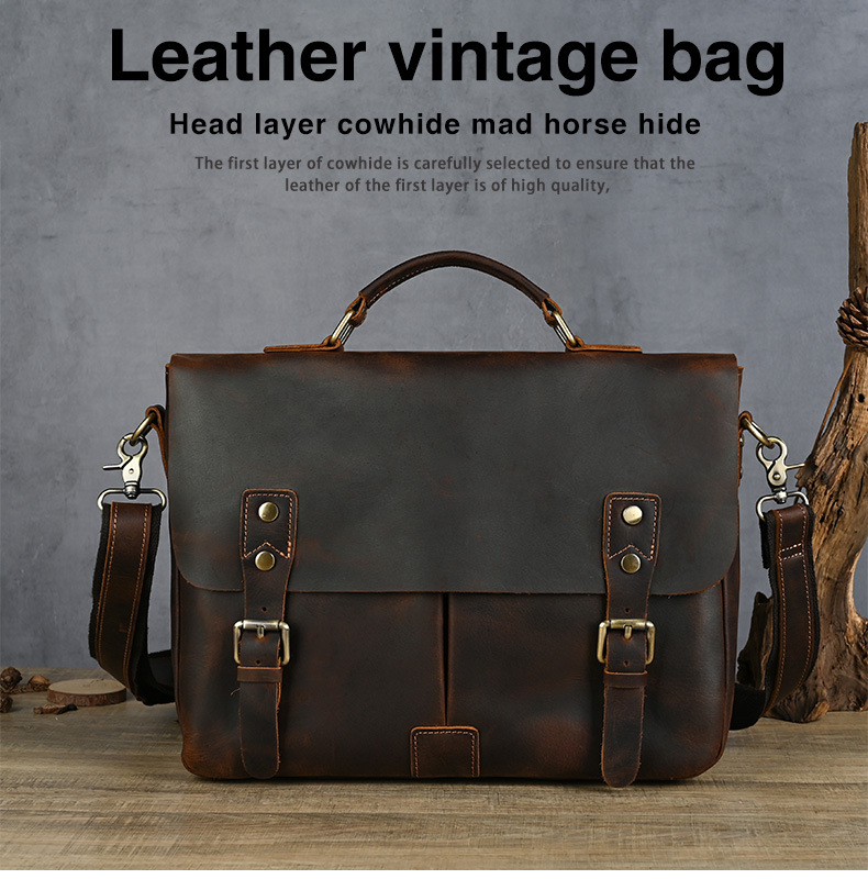 Chiếc cặp mang phong cách cổ điển dành cho nam giới. Chất liệu da bò tự nhiên bền chắc, tạo vẻ đẹp mạnh mẽ với những đường vân độc đáo. Thiết kế đa năng vừa đeo v thoải mái, vừa có thể xách tay lịch sự. Ngăn rộng rãi đựp vừa máy tính xách tay và tài liệu làm việc. Sử dụng hàng ngày với quần áo thông thường hoặc khi làm việc đều phù hợp. | Tên sản phẩm: Túi Xách Nam Chất Liệu Da Bò Túi Đựng Máy Tính Phục Cổ Cổ Điển - Túi Xách Ví Nam | Mã sản phẩm: A4617 - Giá: 2.310.000đ | Mã nhà sản xuất: GUDEA-G05Hình ảnh sản phẩm
