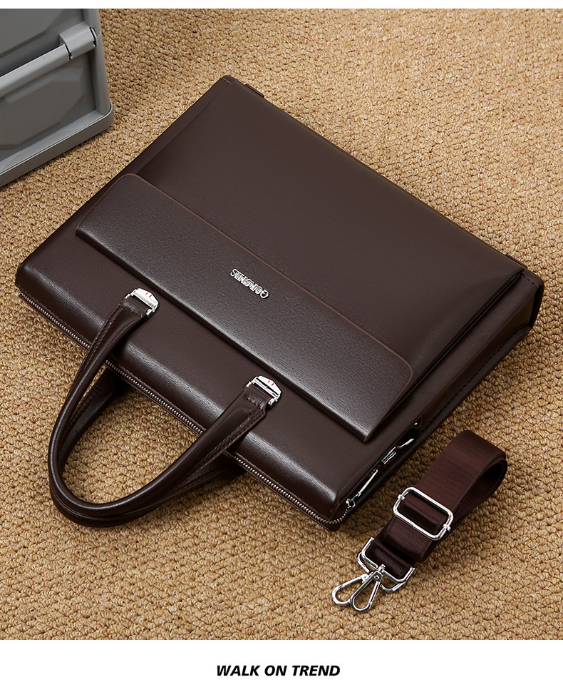 Chiếc cặp công sở dành cho nam giới này có thiết kế đơn giản và tiện dụng. Sản phẩm sở hữu khóa số cá nhân, giúp bảo vệ đồ đạc bên trong an toàn. Bạn có thể đeo như túi đeo chéo, khoác v hoặc xách tay một cách linh hoạt. Cặp có sức chứa lớn, đựng vừa máy tính xách tay và nhiều tài liệu, vật dụng cá nhân khác. Sử dụng hàng ngày cho công việc văn phòng hoặc đi học đều rất phù hợp. | Tên sản phẩm: Túi Xách Nam Túi Đựng Máy Tính - Túi Xách Ví Nam | Mã sản phẩm: A4658 - Giá: 1.060.000đ | Mã nhà sản xuất: BADG-G03Hình ảnh sản phẩm